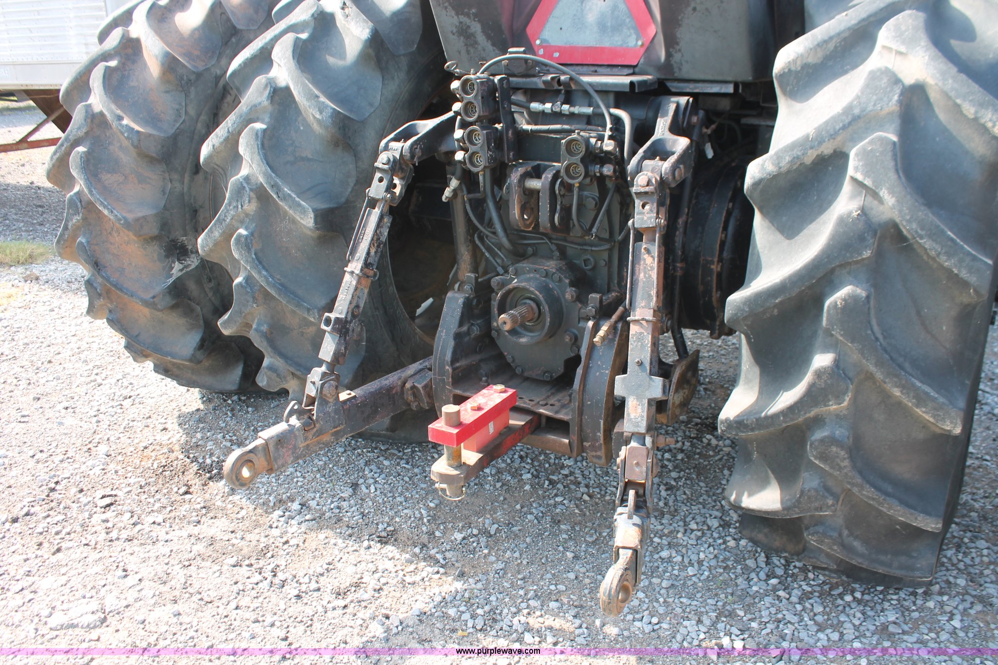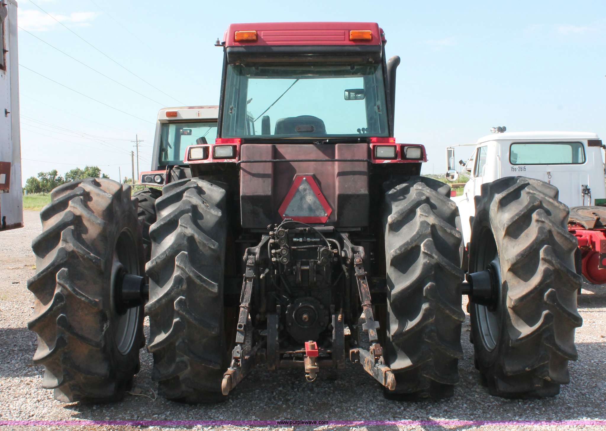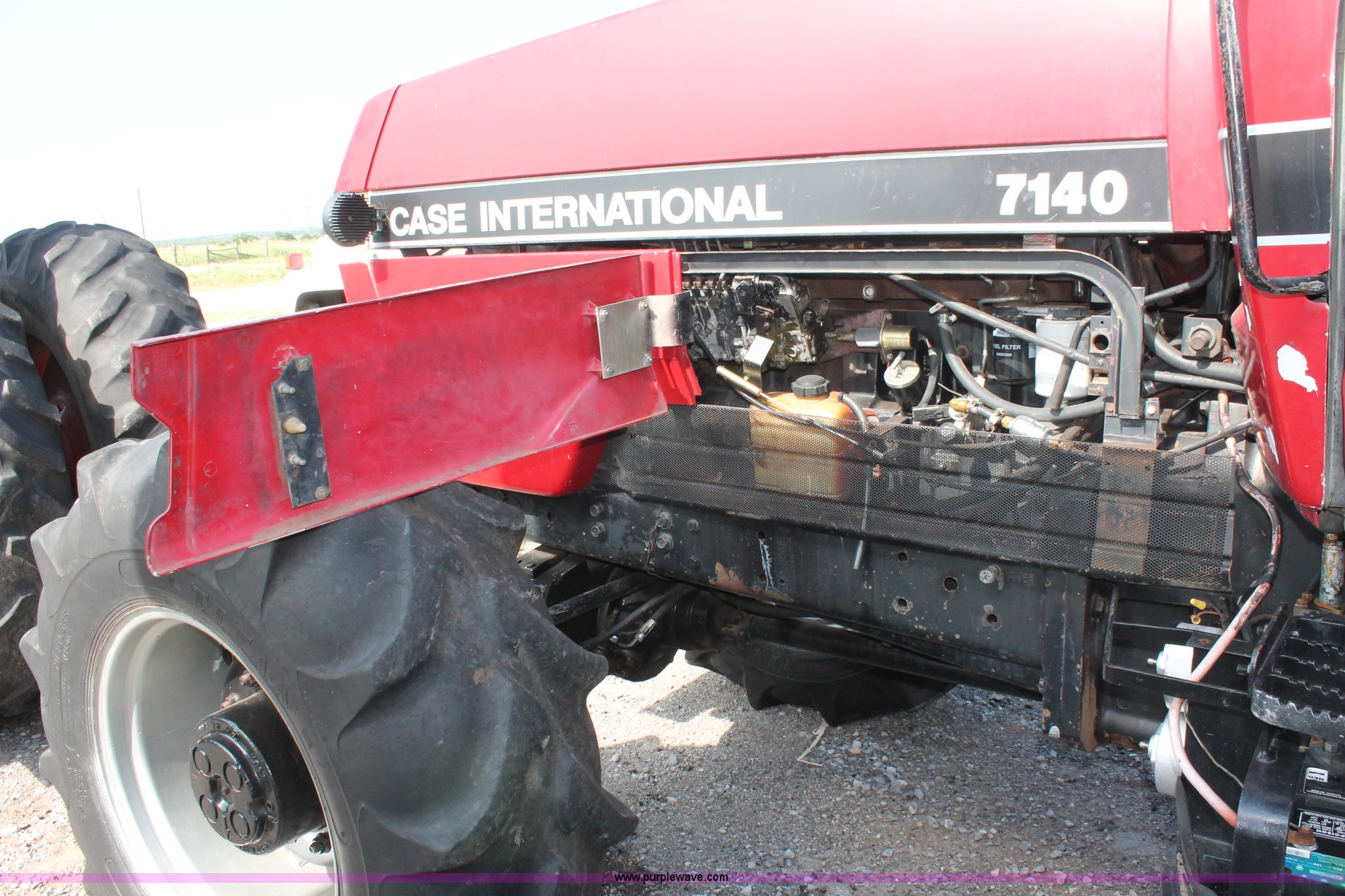 Purple Wave is selling a used Tractor in Oklahoma. This item is a 1989 Case IH 7140 MFWD tractor with the following: 6,255 hours on meter, Case CDC 8.3L six cylinder turbo diesel engine, 195 HP, Powershift transmission, 18F-2R gears, AC and heat, Tilt steering wheel, AM/FM/CD, Suspension seat, Ether start, Three point, Seven pin outlet, 1000 PTO, Draw bar, (3) rear hydraulic remote sets, 118" wheelbase, Titan 18.4-26 front tires, Firestone 20.8R38 dual rear tires, Serial JAA0010019