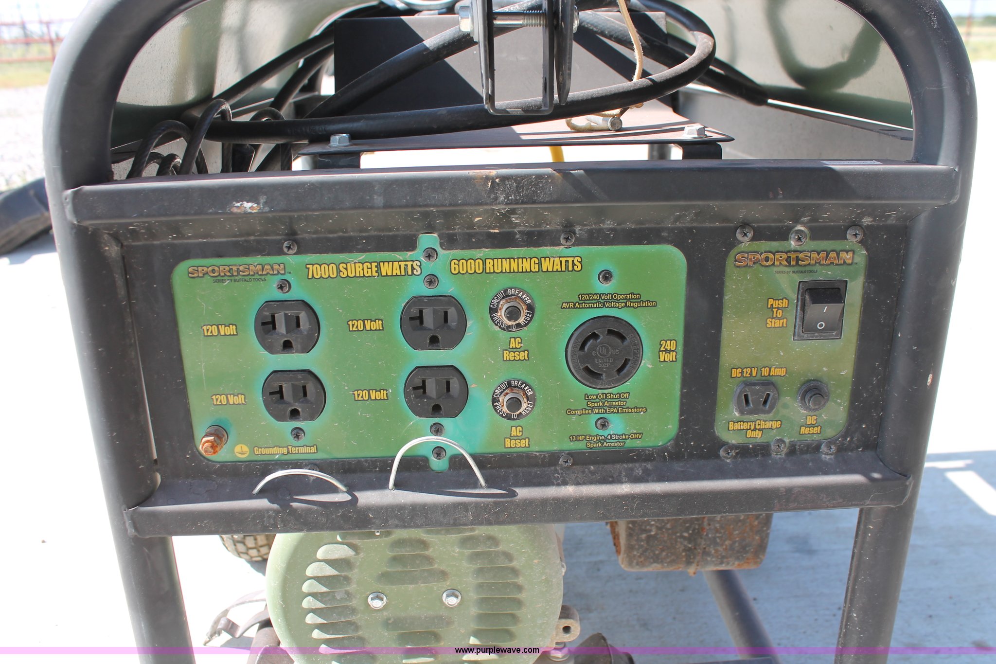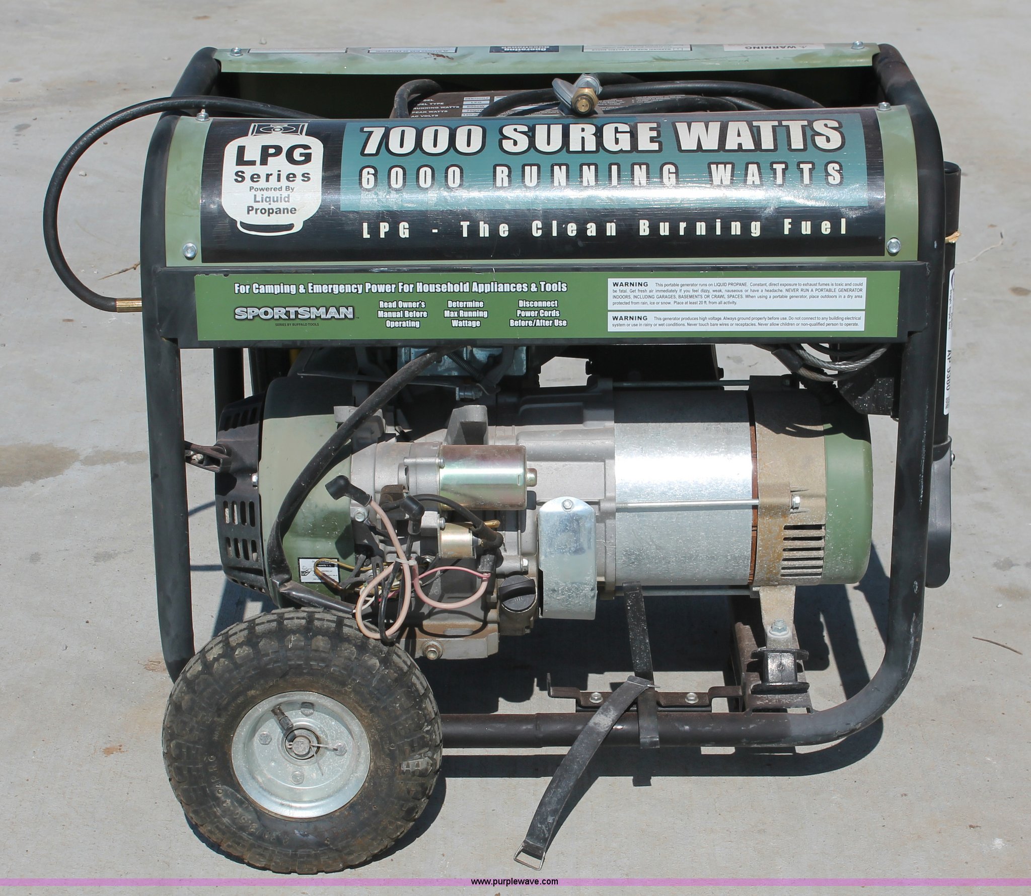 Purple Wave is selling a used Generator Set in Oklahoma. This item is a Sportsman LPG generator with the following: Propane engine, 13 HP, 7,000 watt, 120/240V AC, Single phase, 6,000 watt running capacity, Serial 24252FW