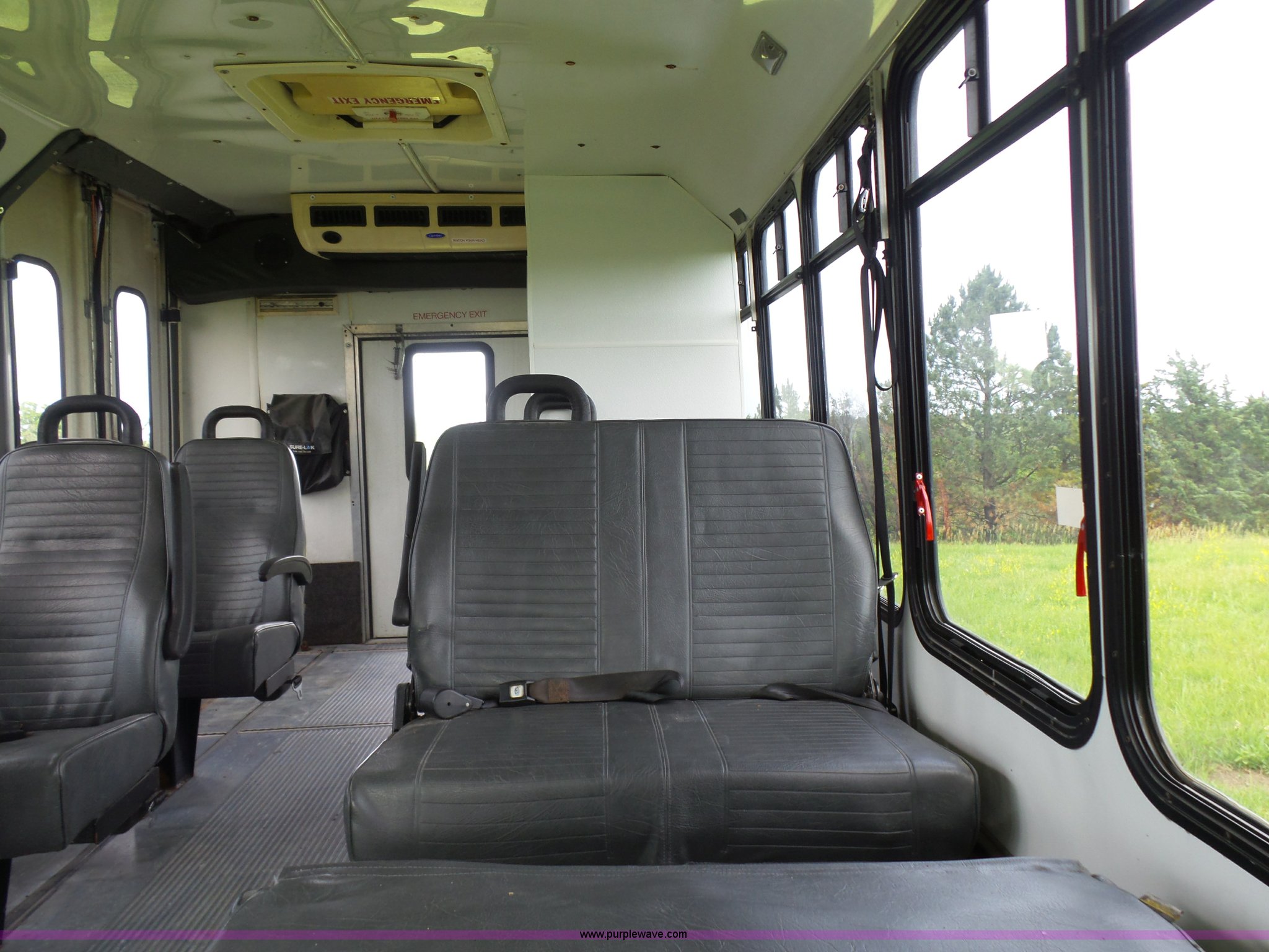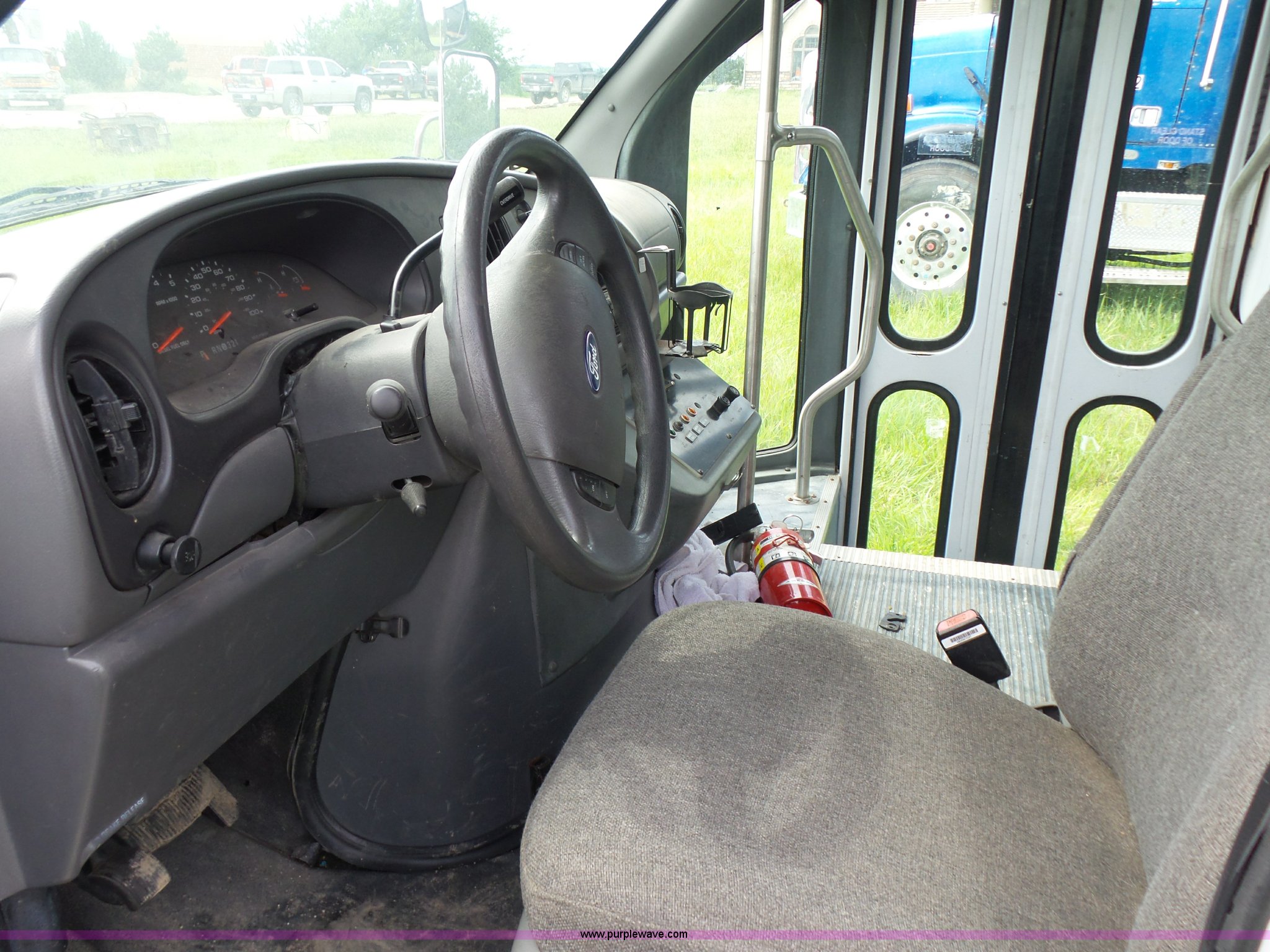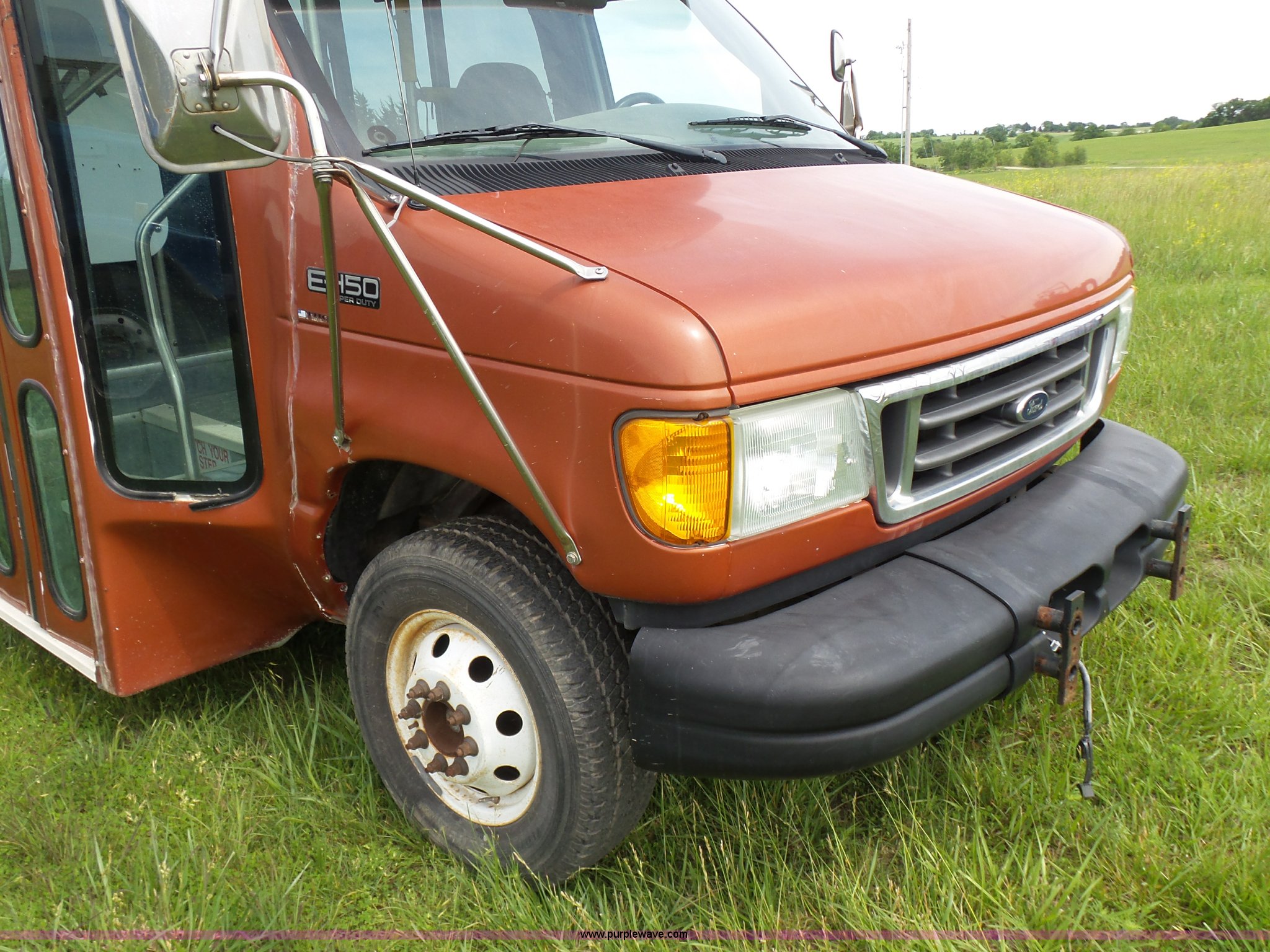 Purple Wave is selling a used Bus in Kansas. This item is a 2004 Ford E450 bus with the following: 243,839 miles on odometer, 6.0L V8 OHV 32V diesel engine, Automatic transmission, AC and heat, Tilt, Cruise, AM/FM/cassette, Manual windows and locks, Power driver's seat, Cloth driver's seat, Vinyl passenger seats, Wheelchair lift, 16 passenger capacity, 225/75R16 tires, Unknown operating condition of lift and door function