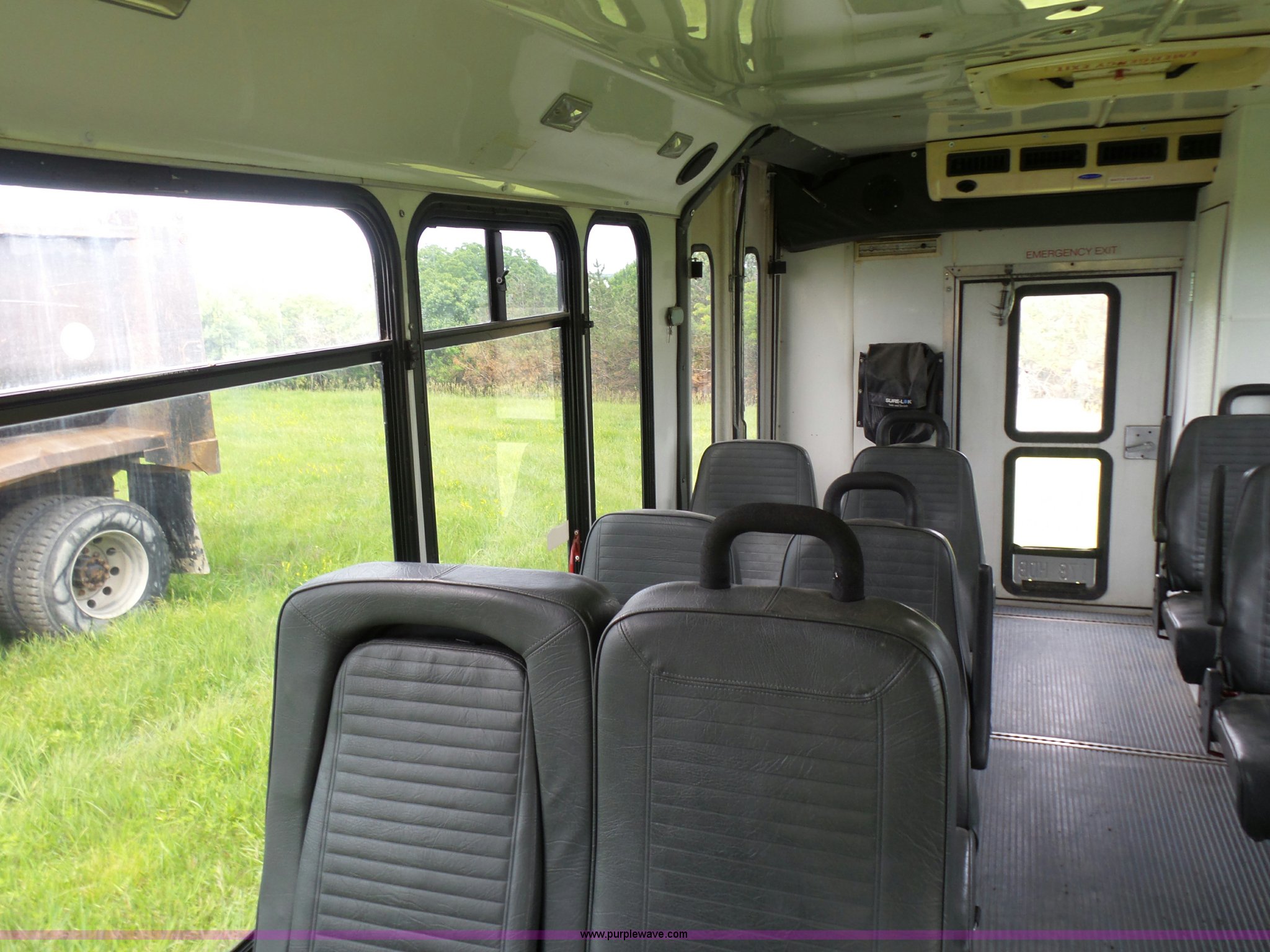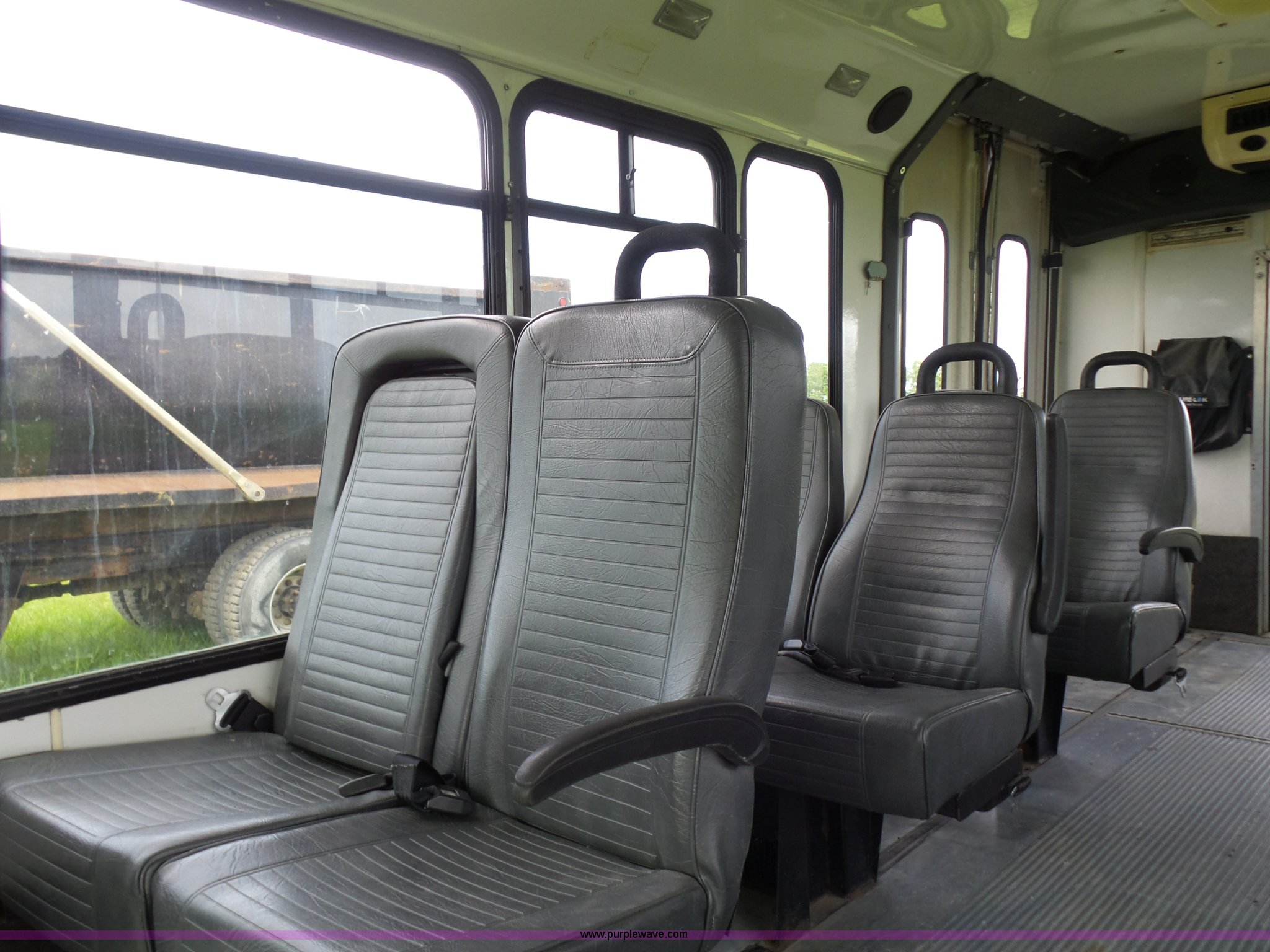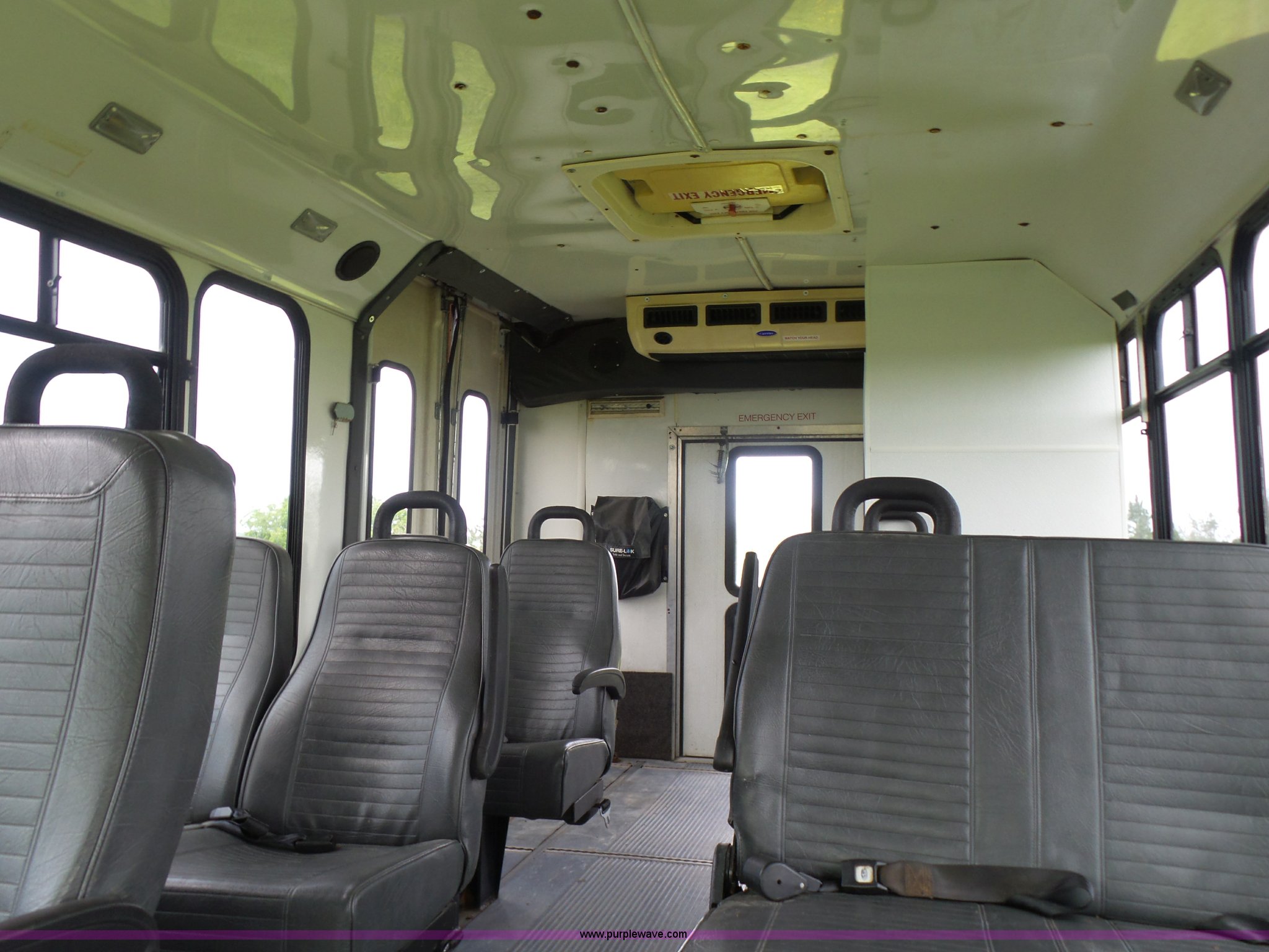 Purple Wave is selling a used Bus in Kansas. This item is a 2004 Ford E450 bus with the following: 243,839 miles on odometer, 6.0L V8 OHV 32V diesel engine, Automatic transmission, AC and heat, Tilt, Cruise, AM/FM/cassette, Manual windows and locks, Power driver's seat, Cloth driver's seat, Vinyl passenger seats, Wheelchair lift, 16 passenger capacity, 225/75R16 tires, Unknown operating condition of lift and door function