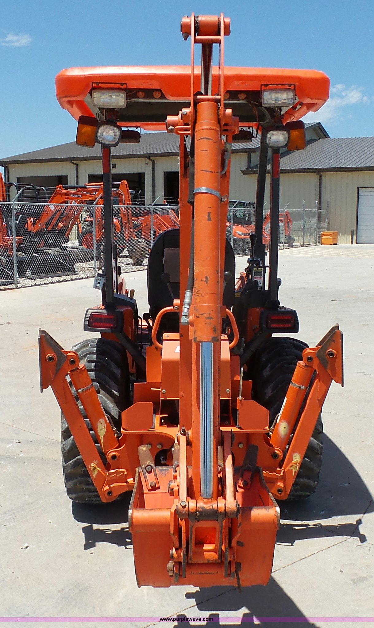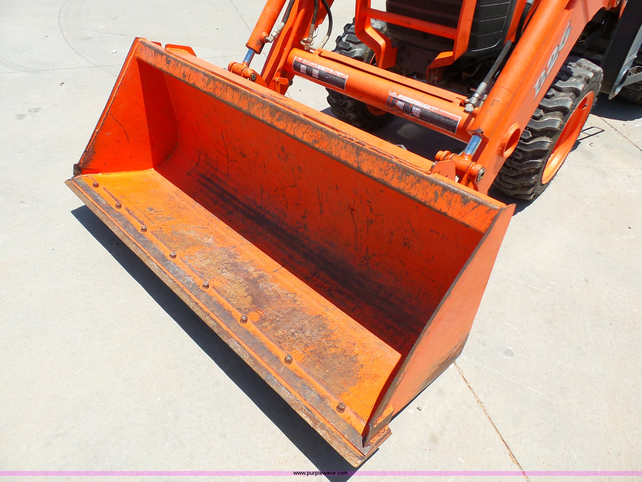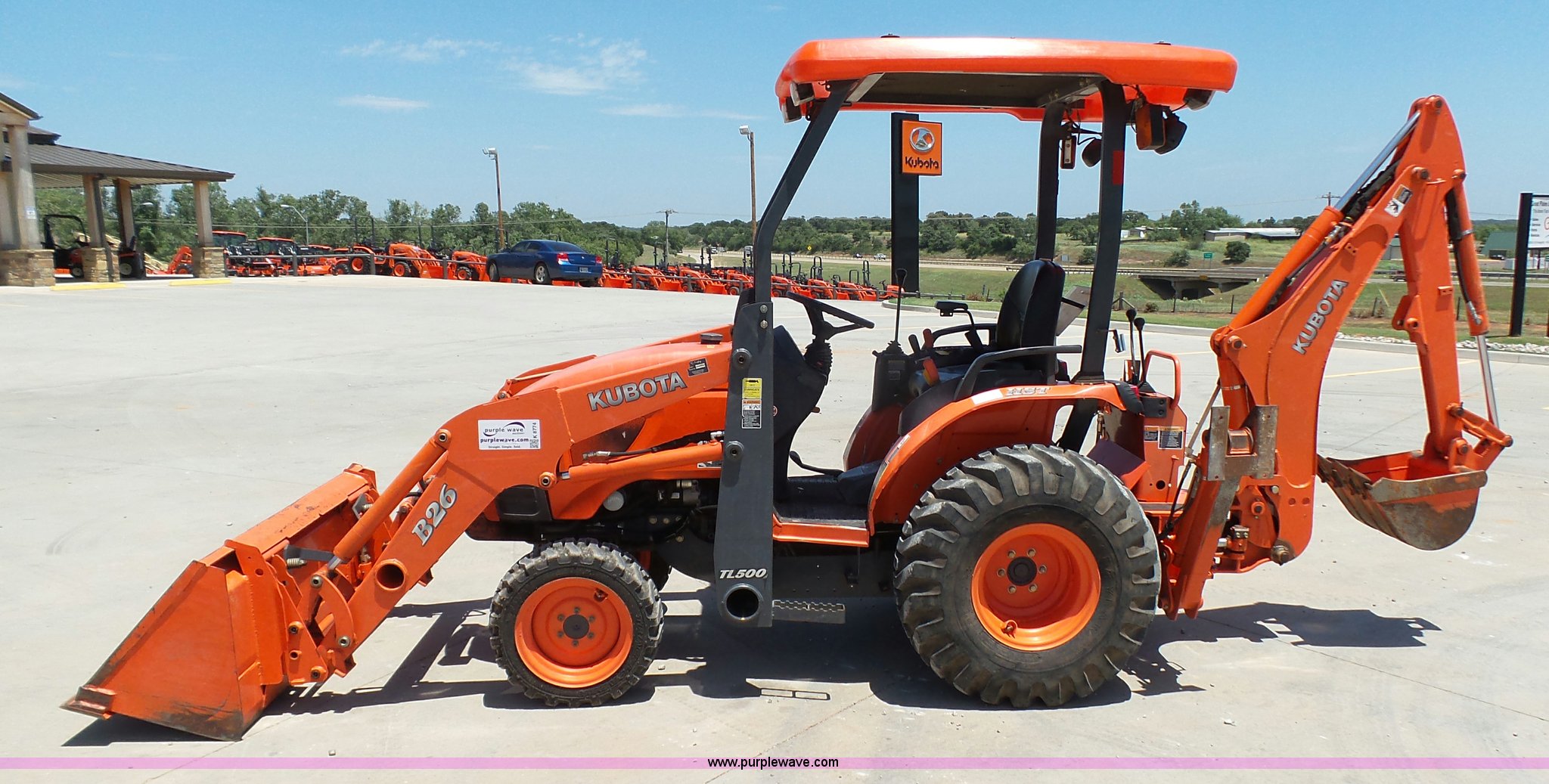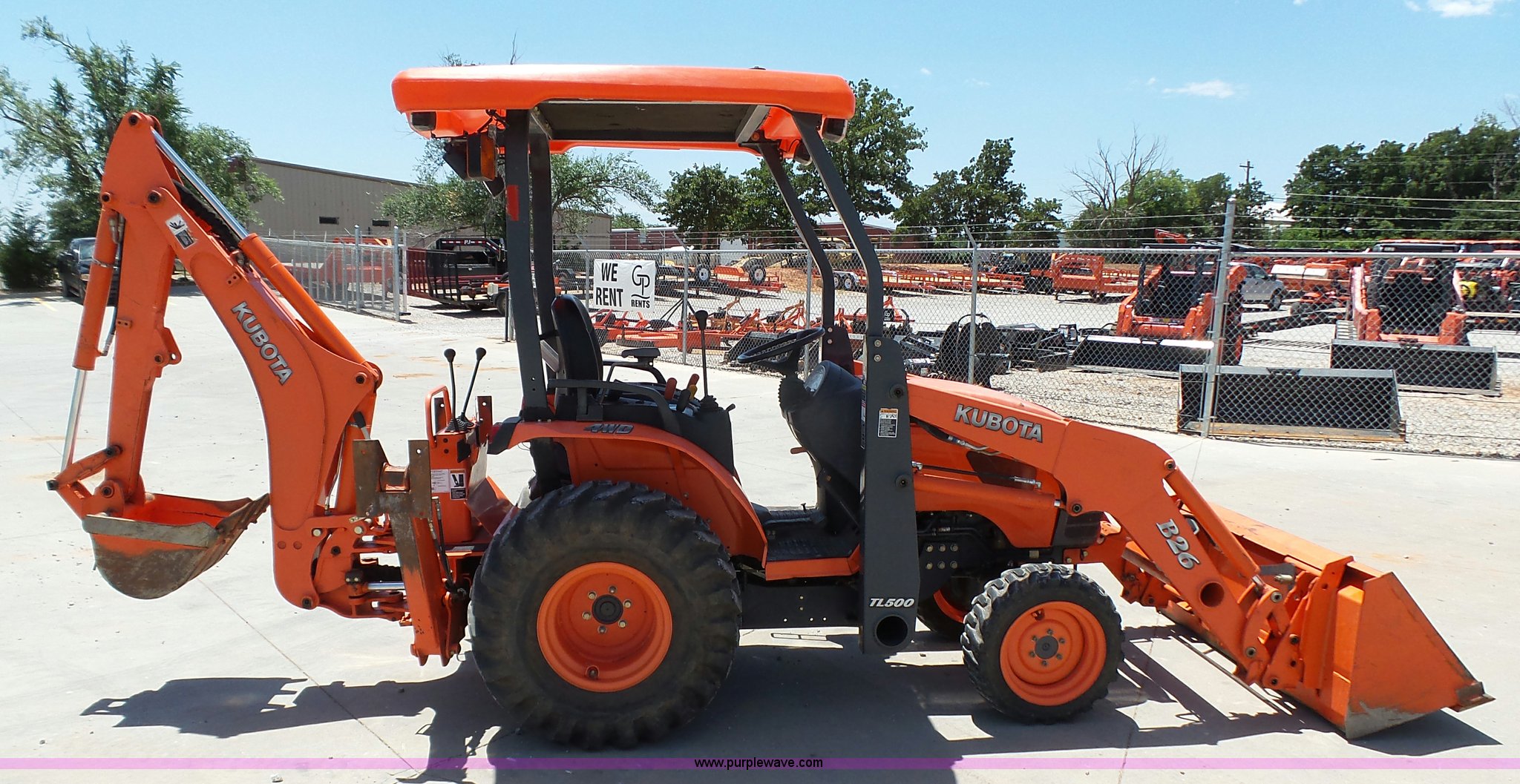 Purple Wave is selling a used Tractor Loader Backhoe in Oklahoma. This item is a 2010 Kubota B26 TLB backhoe with the following: 921 hours on meter, Kubota three cylinder diesel engine, Hydrostatic transmission, 3F-3R gears, Four wheel drive, Wobble stick backhoe controls, Front and rear work lights, Kubota TL500 loader, 59"W loader bucket, Kubota BT8L0 backhoe, 17"W backhoe bucket, Weld-on cutting edge, (4) teeth, Manual quick coupler, 23 x 8.50-14 front tires, 12.4-16 rear tires, Serial 52308