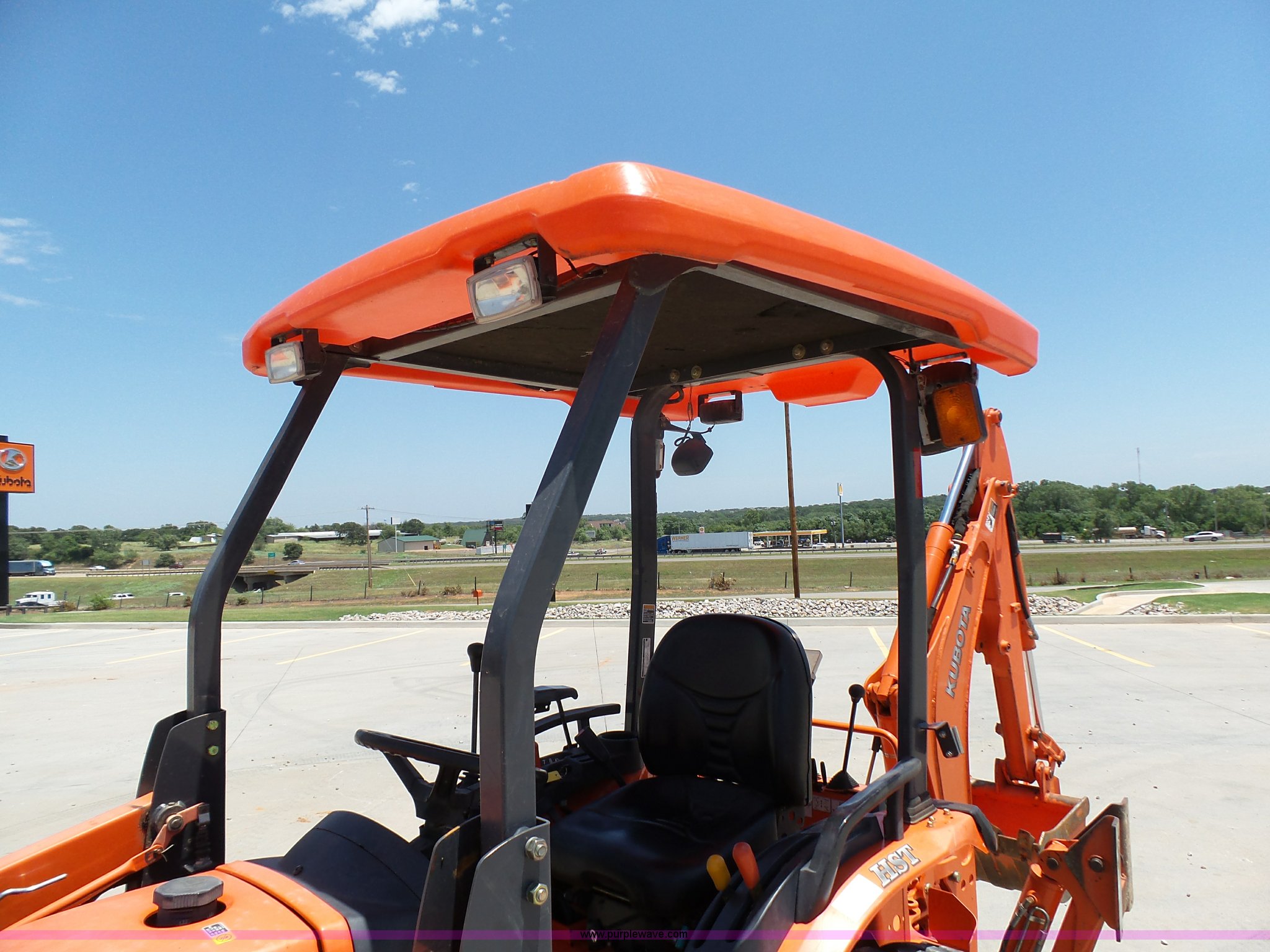 2010 Kubota B26 TLB backhoe. 921 hours on meter, Kubota three cylinder diesel engine, Hydrostatic transmission 3F-3R gears, Four wheel drive, Wobble stick backhoe controls, Front and rear work lights, Kubota TL500 loader 59"W loader bucket, Kubota BT8L0 backhoe 17"W backhoe bucket Weld-on cutting edge, (4) teeth, Manual quick coupler, 23 x 8.50-14 front tires, 12.4-16 rear tires, Serial 52308. Great Plains Kubota. 6505 N I-35 Frontage Rd. Edmond, OK 73013