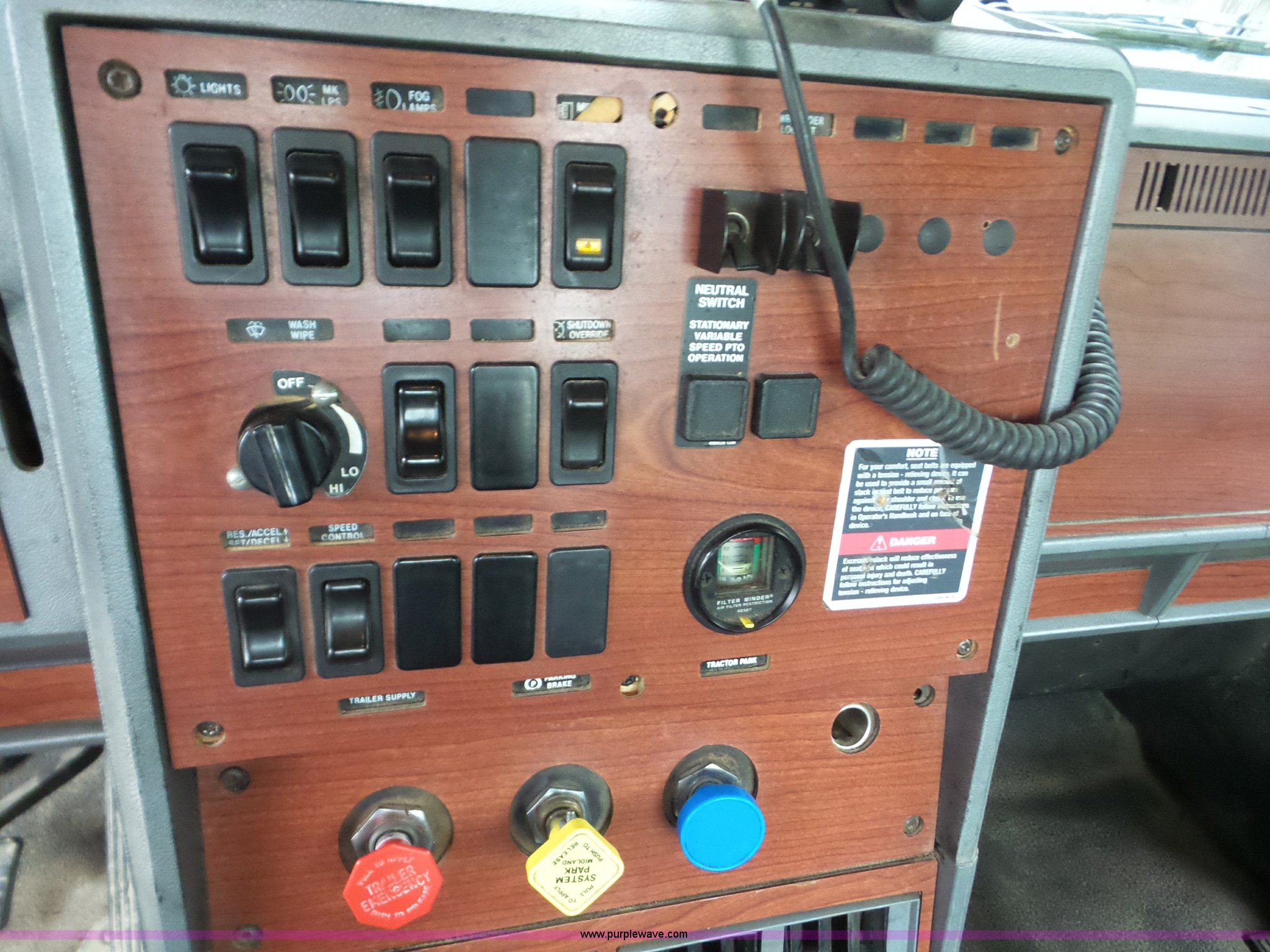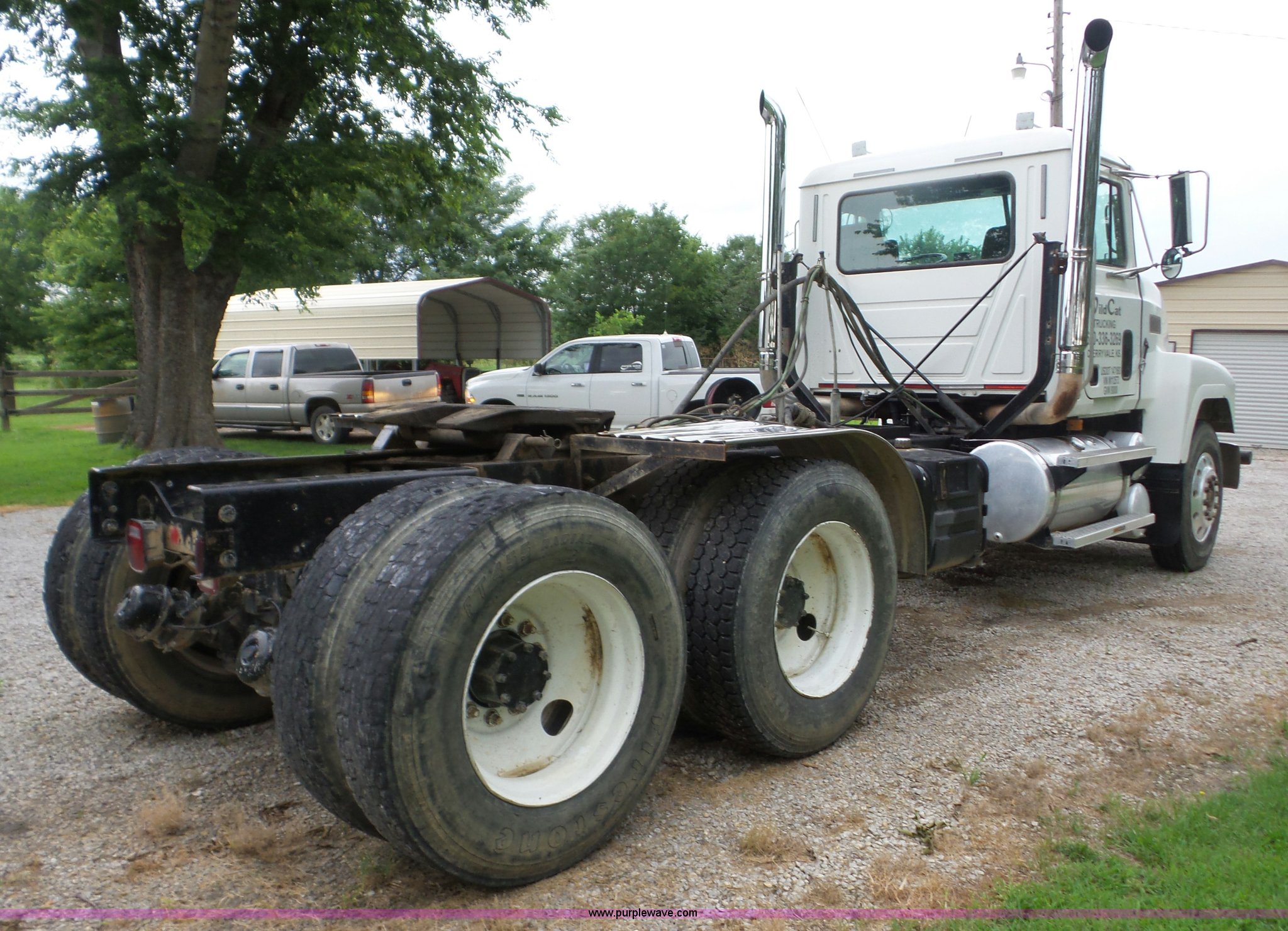 Purple Wave is selling a used Truck Tractor in Kansas. This item is a 1999 Mack CH613 semi truck with the following: 440,209 miles on odometer, 18,373 hours on meter, Mack E7 12.0L L6 turbo diesel engine, 460 HP, Mack T2180 18 speed manual transmission, Tandem axle, Inter-axle differential lock, AC and heat, Tilt, Telescoping steering wheel, Cruise, AM/FM/cassette, Air suspension seat, Air ride cab, Fixed fifth wheel plate, Dual rear exhaust stacks, Dual fuel tanks, Stainless steel half fenders, Camelback suspension, Air brakes, Windshield cracked