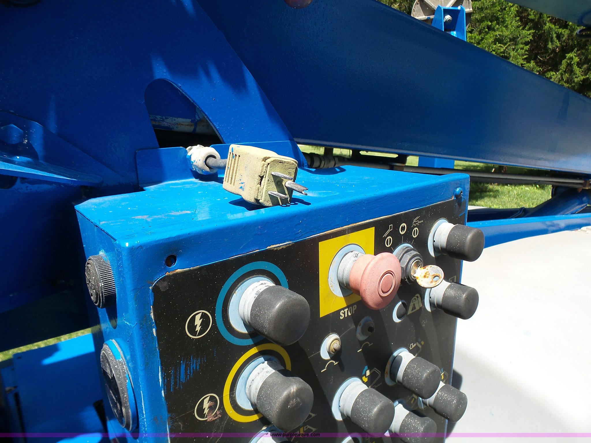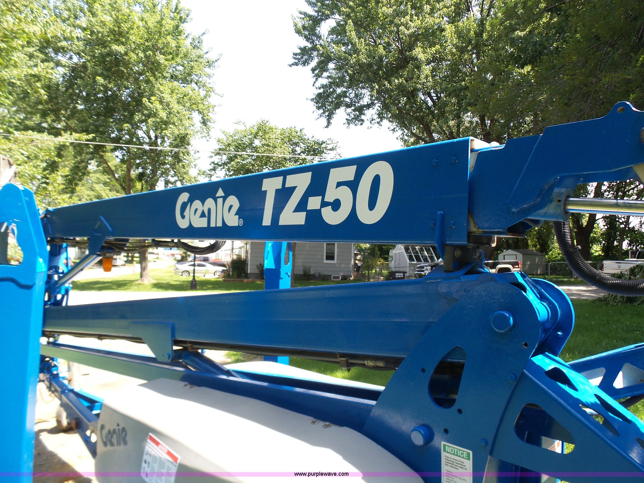 Purple Wave is selling a used Boom Lift in Missouri. This item is a 2005 Genie TZ-50 towable boom lift with the following: 317 hours on meter, 24V electric operation, Honda GX160 gas engine, 6.5 HP, 500 lbs max lift capacity, 50' max reach length, 50' max lift height, 3 mph travel speed, Hydraulic outriggers, Hydraulic leveling, Platform or ground controls, 48"L x 32"W platform, AC power outlet, Powered platform extensions, Safety alarm, Hydraulic drive motors, Wheeled tongue jack, 2" ball hitch, Surge brakes, Single axle, Steel wheels, 225/75R15 tires, Recently replaced brakes, batteries and cables