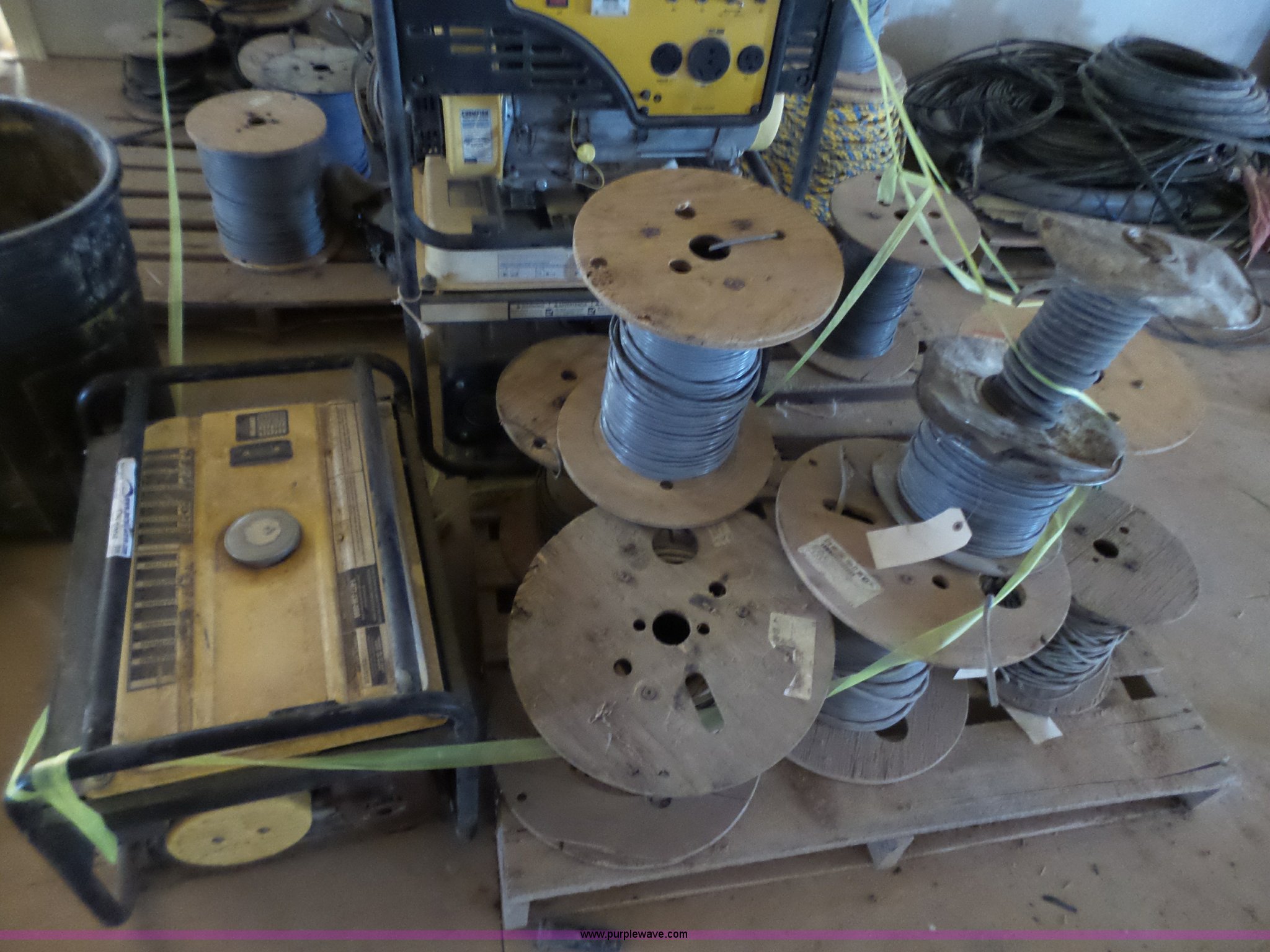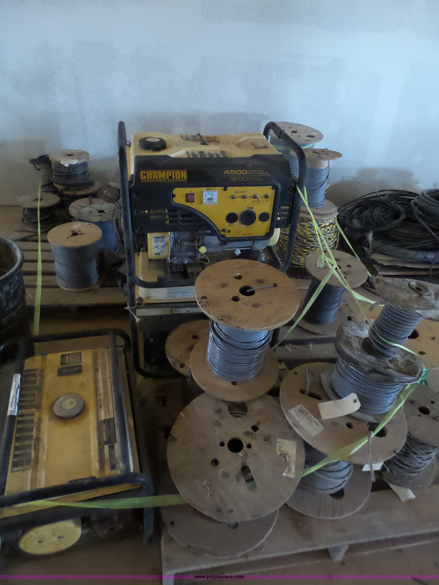 Purple Wave is selling a used Tools in Texas. This item is a Tools with the following: (3) Champion 4500 generator, Unknown operating conditions, Various partial spools of wire, Spool of rope not included