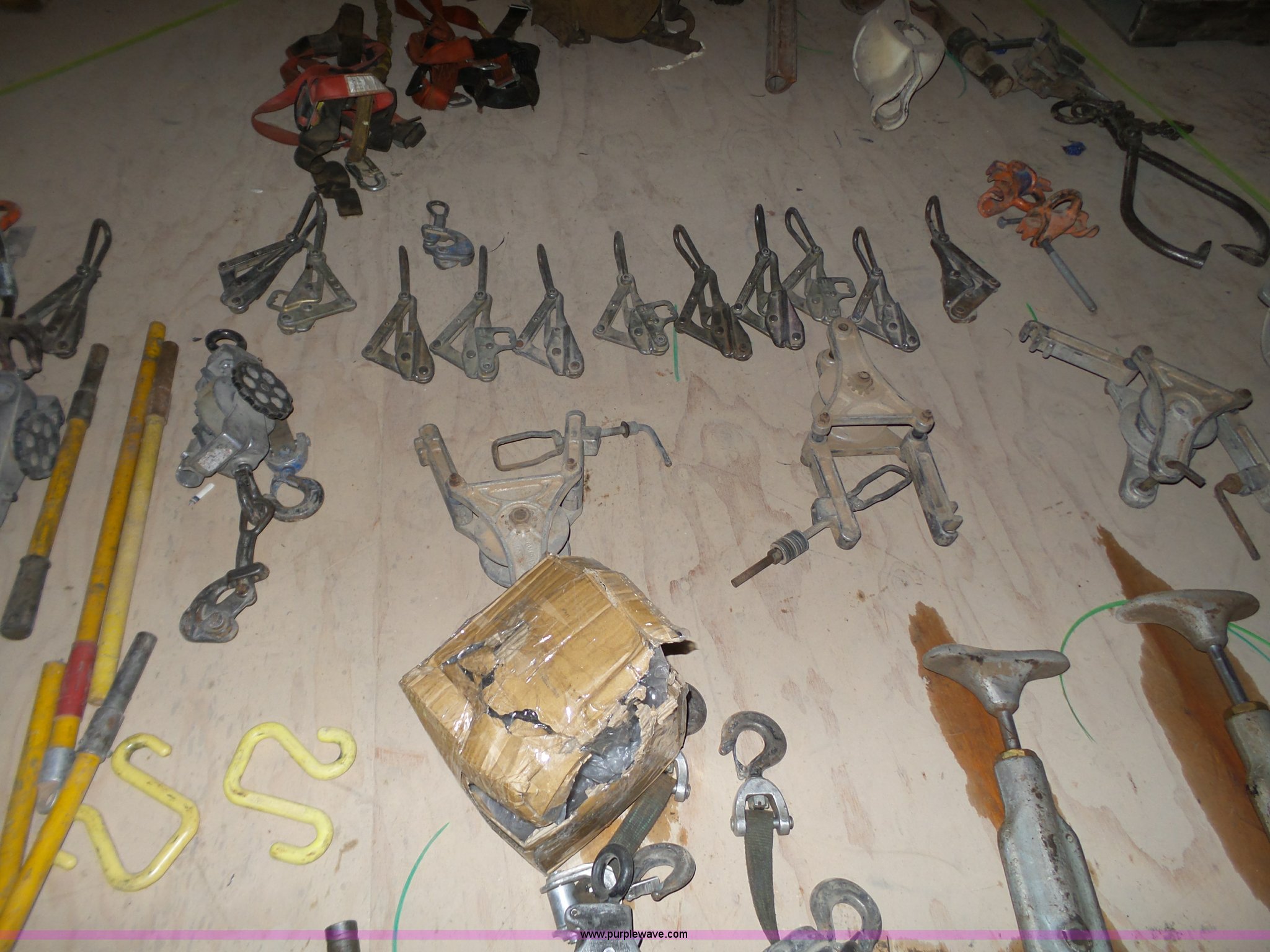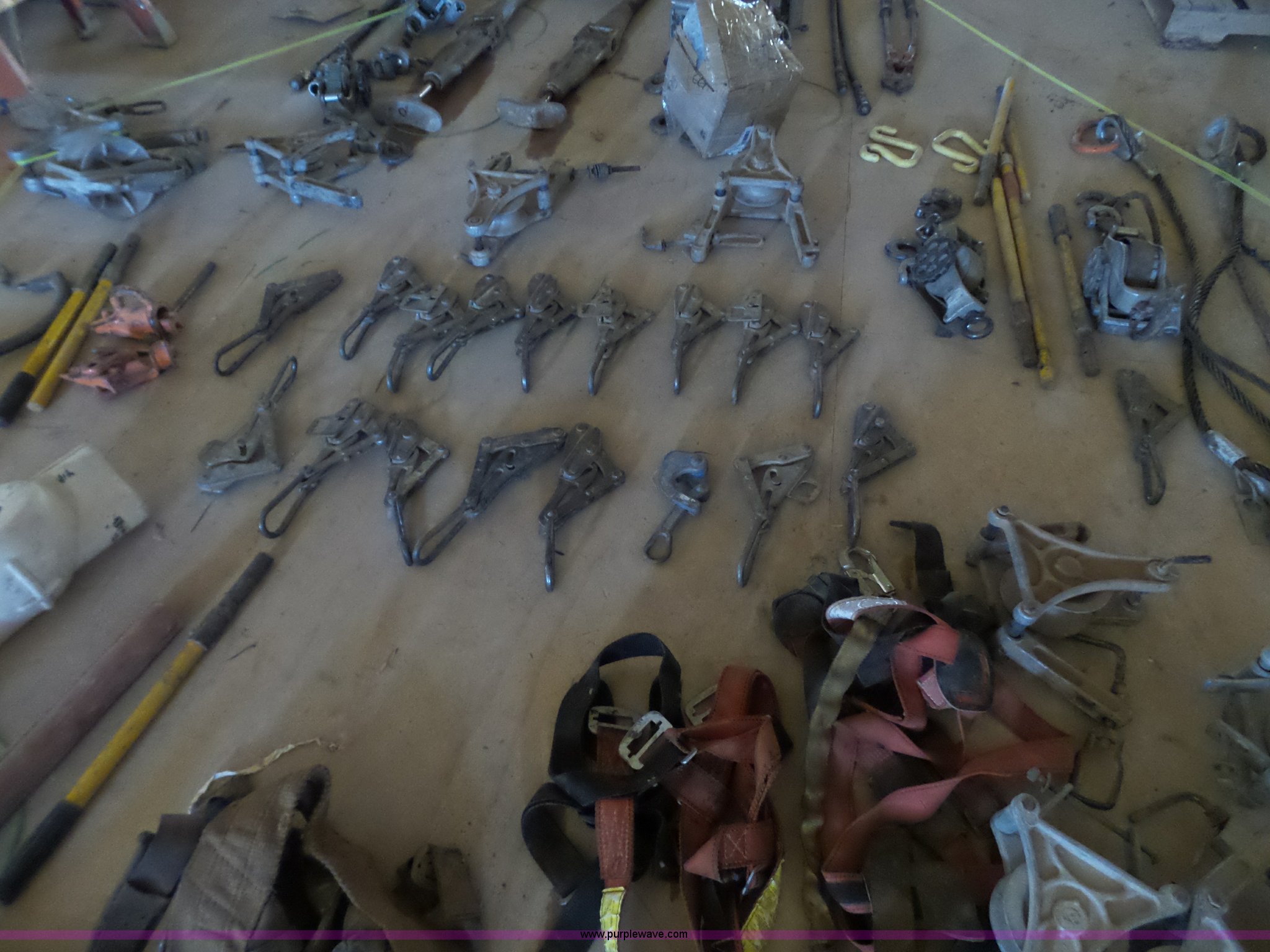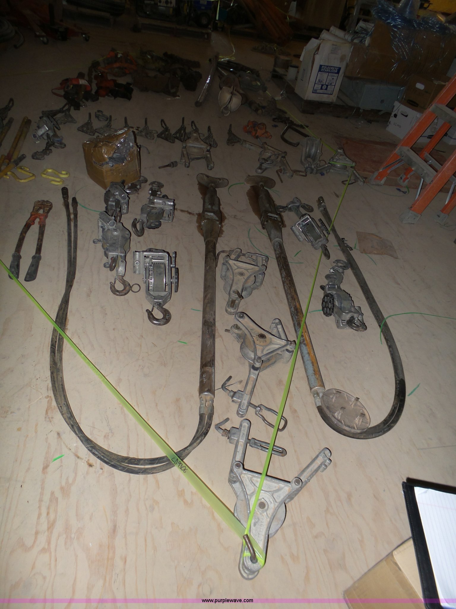 Purple Wave is selling a used Tools in Texas. This item is a Lineman tools with the following: Pullers, Stretchers, Harnesses, Insulators and more