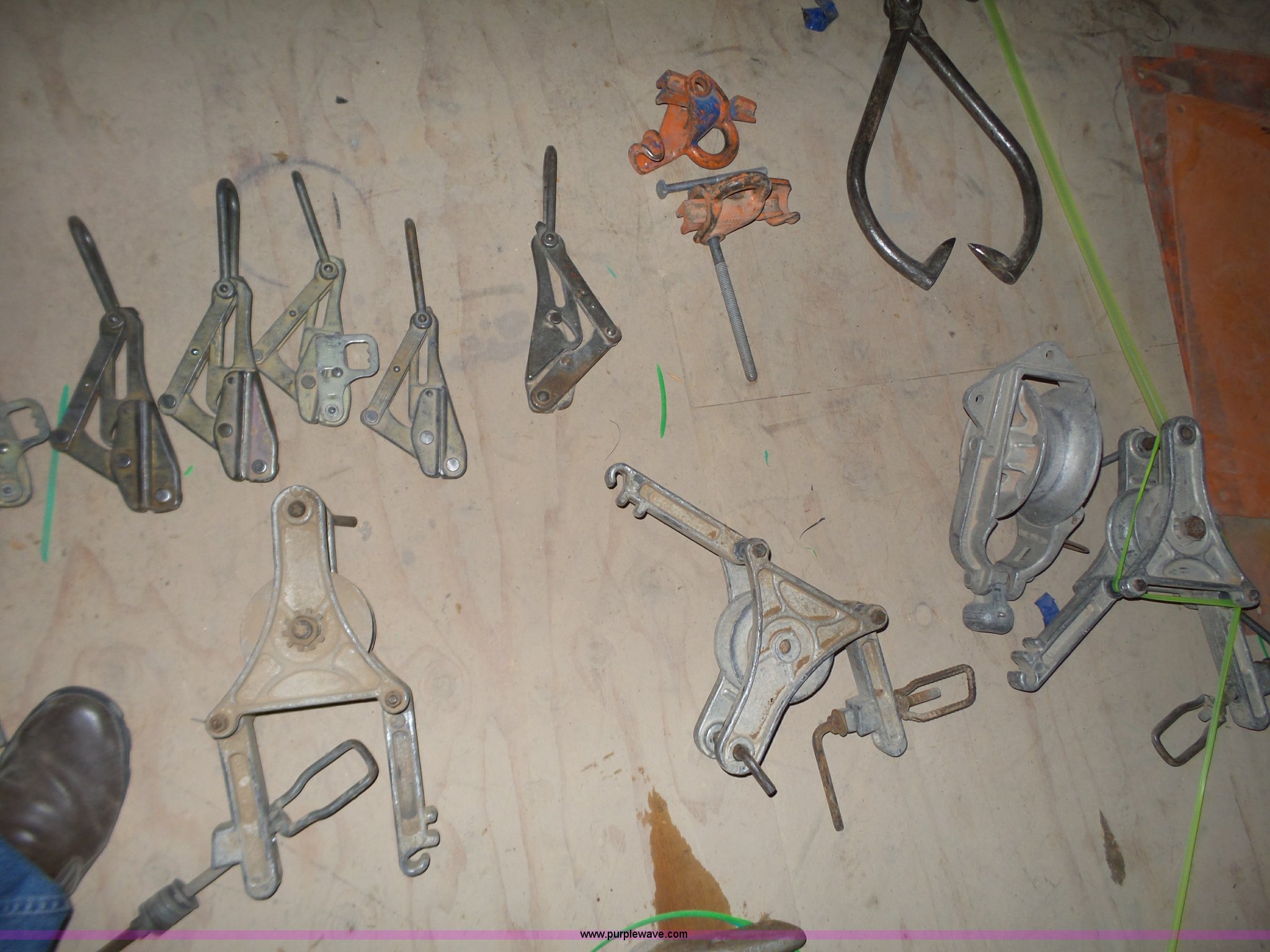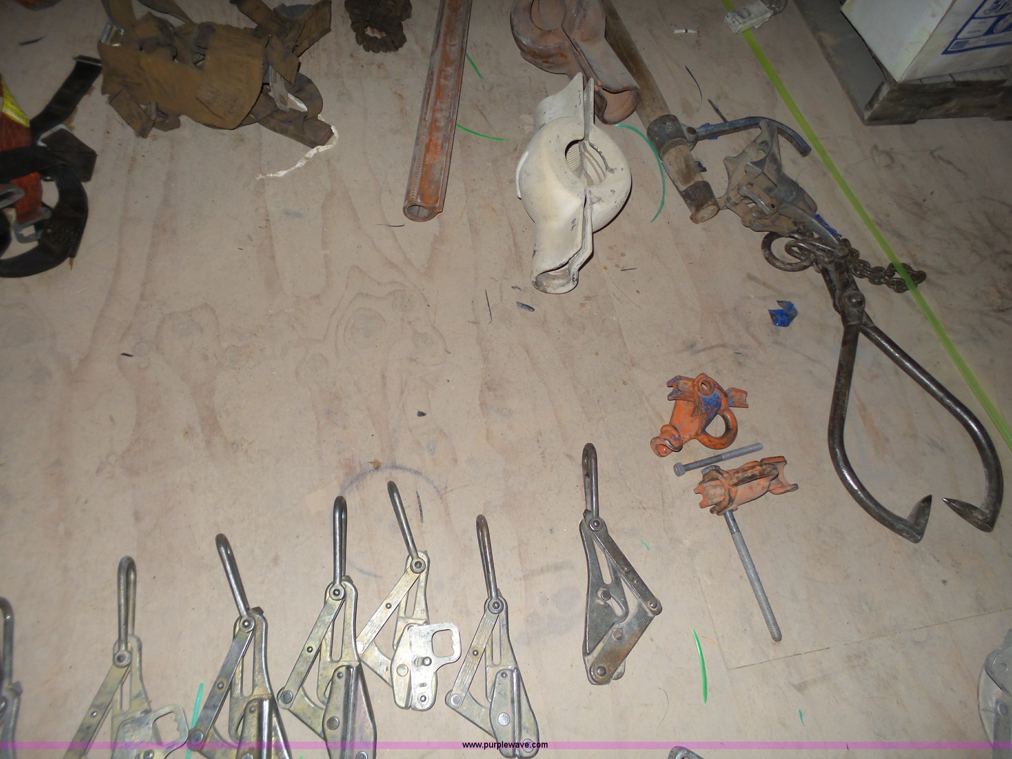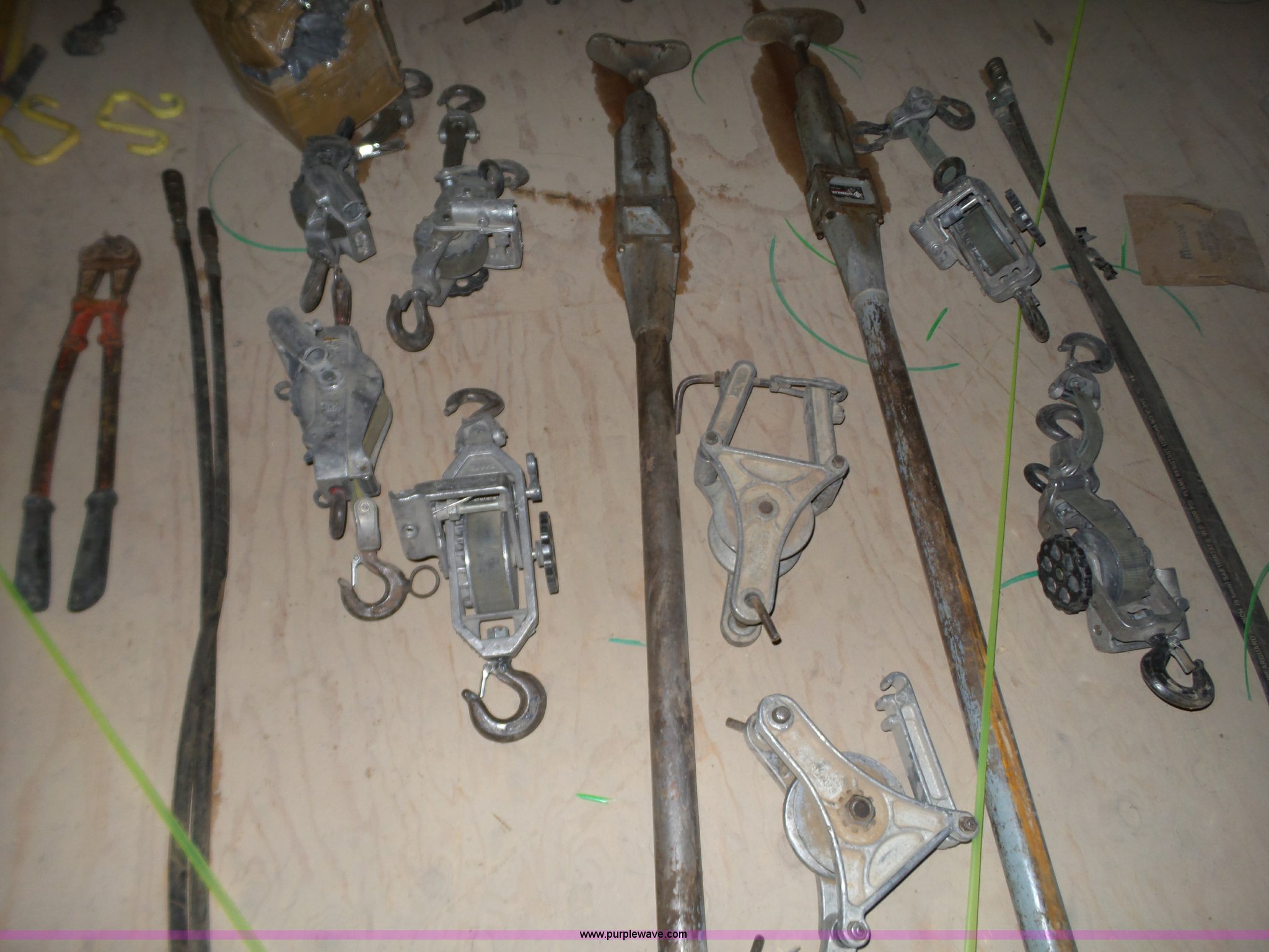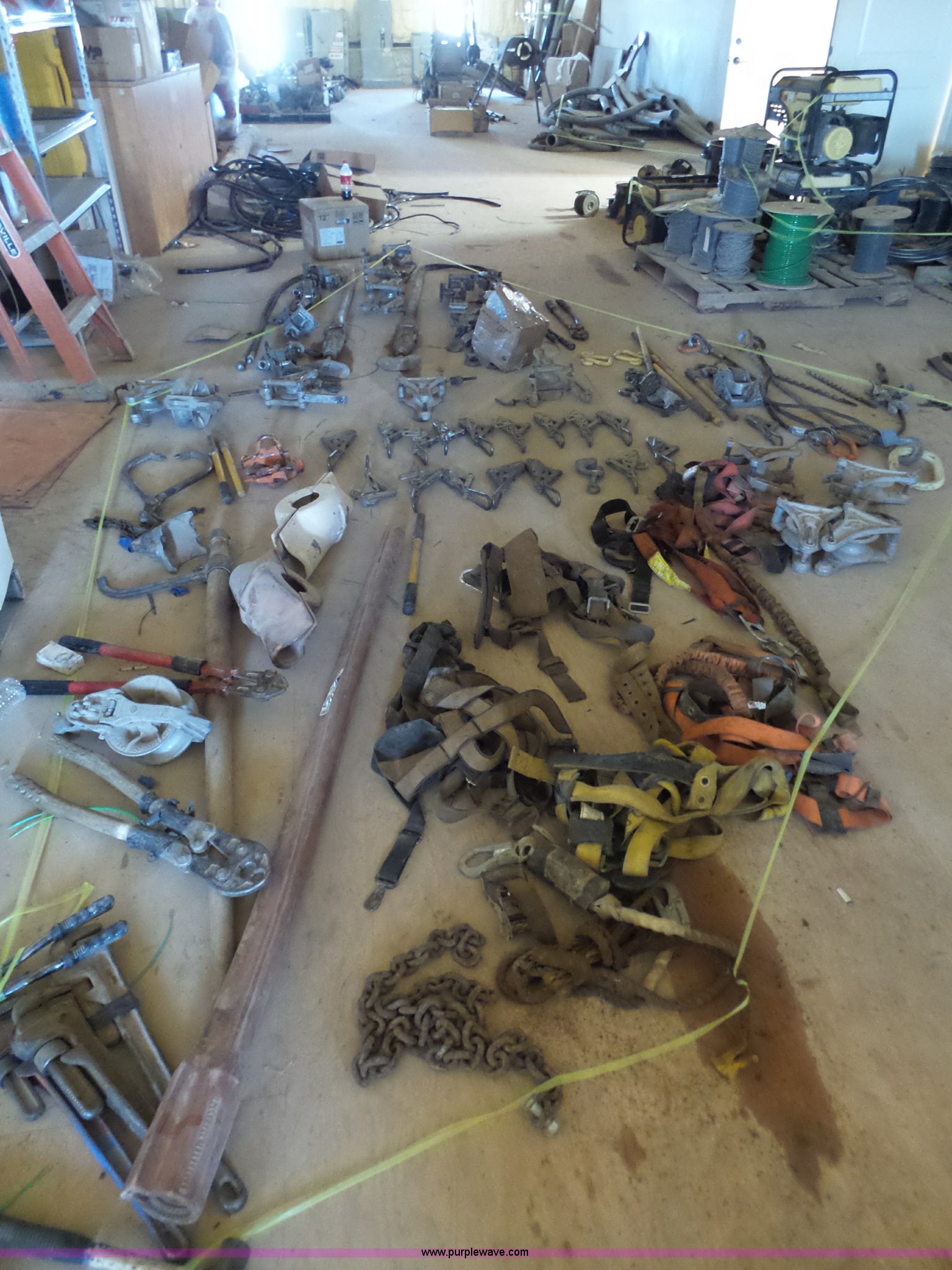 Purple Wave is selling a used Tools in Texas. This item is a Lineman tools with the following: Pullers, Stretchers, Harnesses, Insulators and more