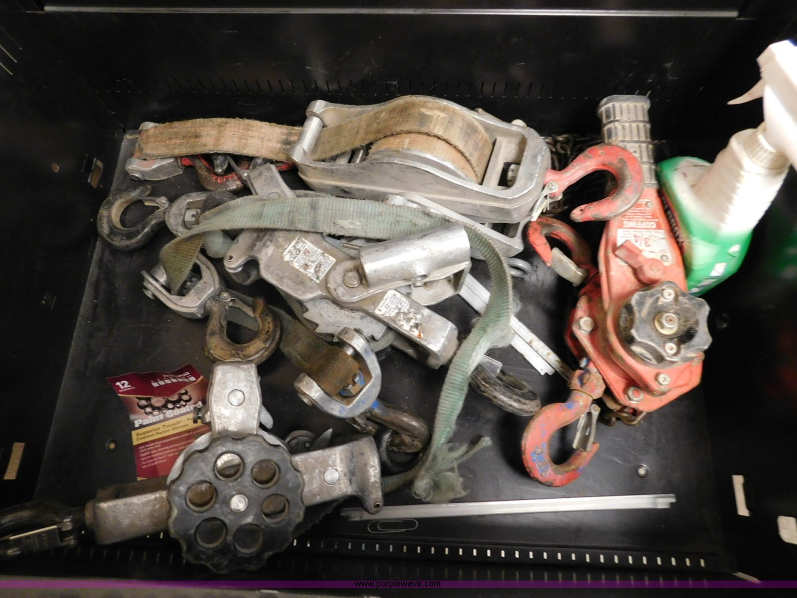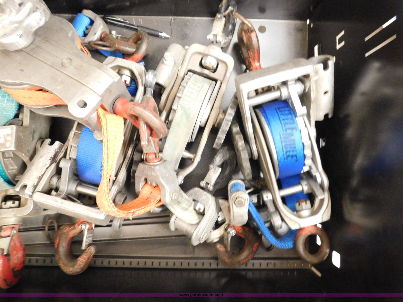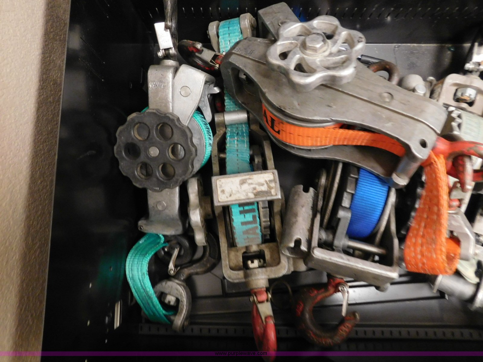 Purple Wave is selling a used Tools in Texas. This item is a Tools with the following: (10) ratchet hoists, (2) pneumatic drills, (2) spot lights
