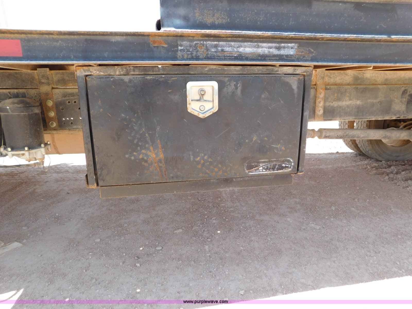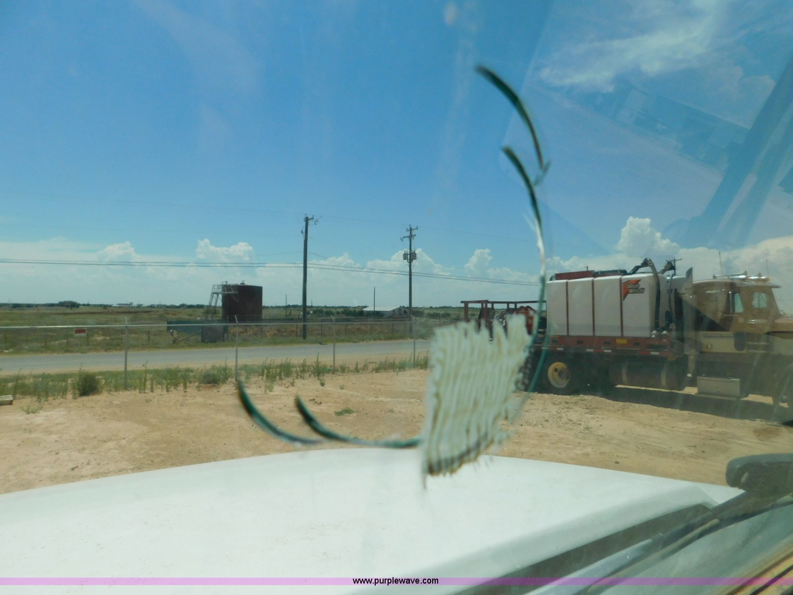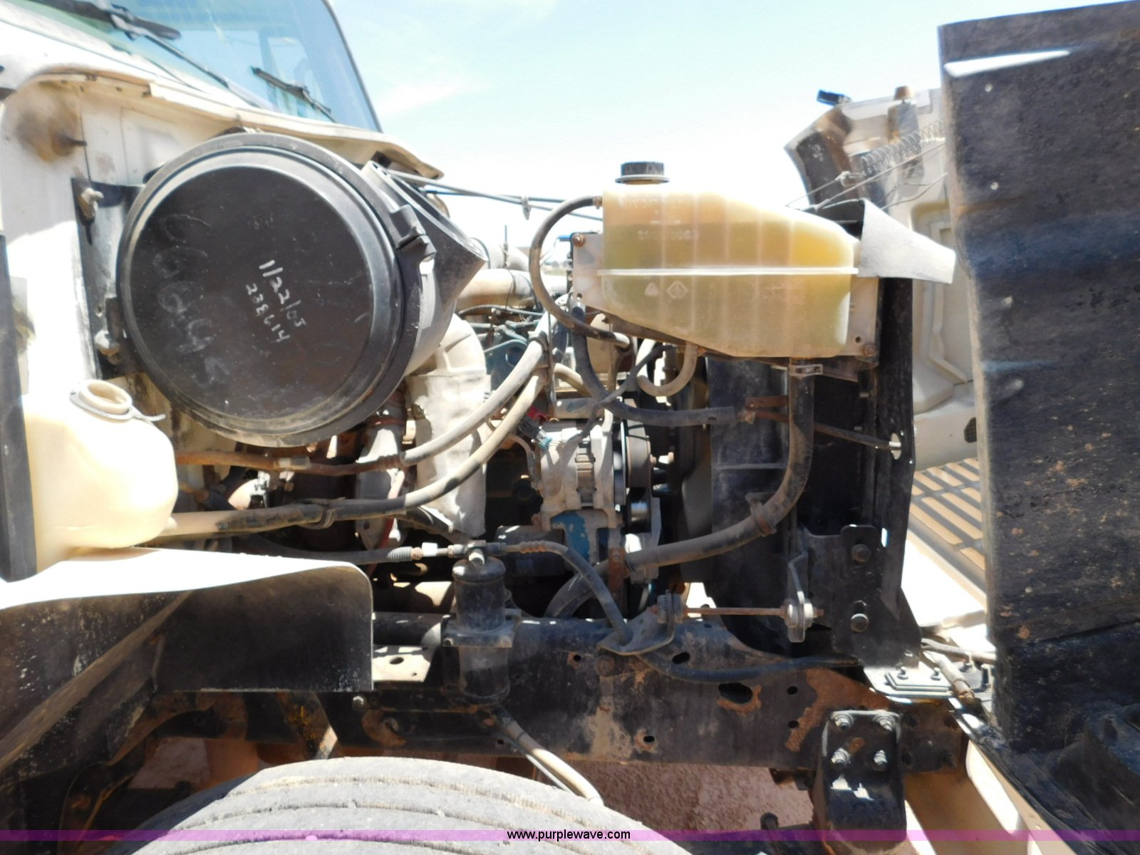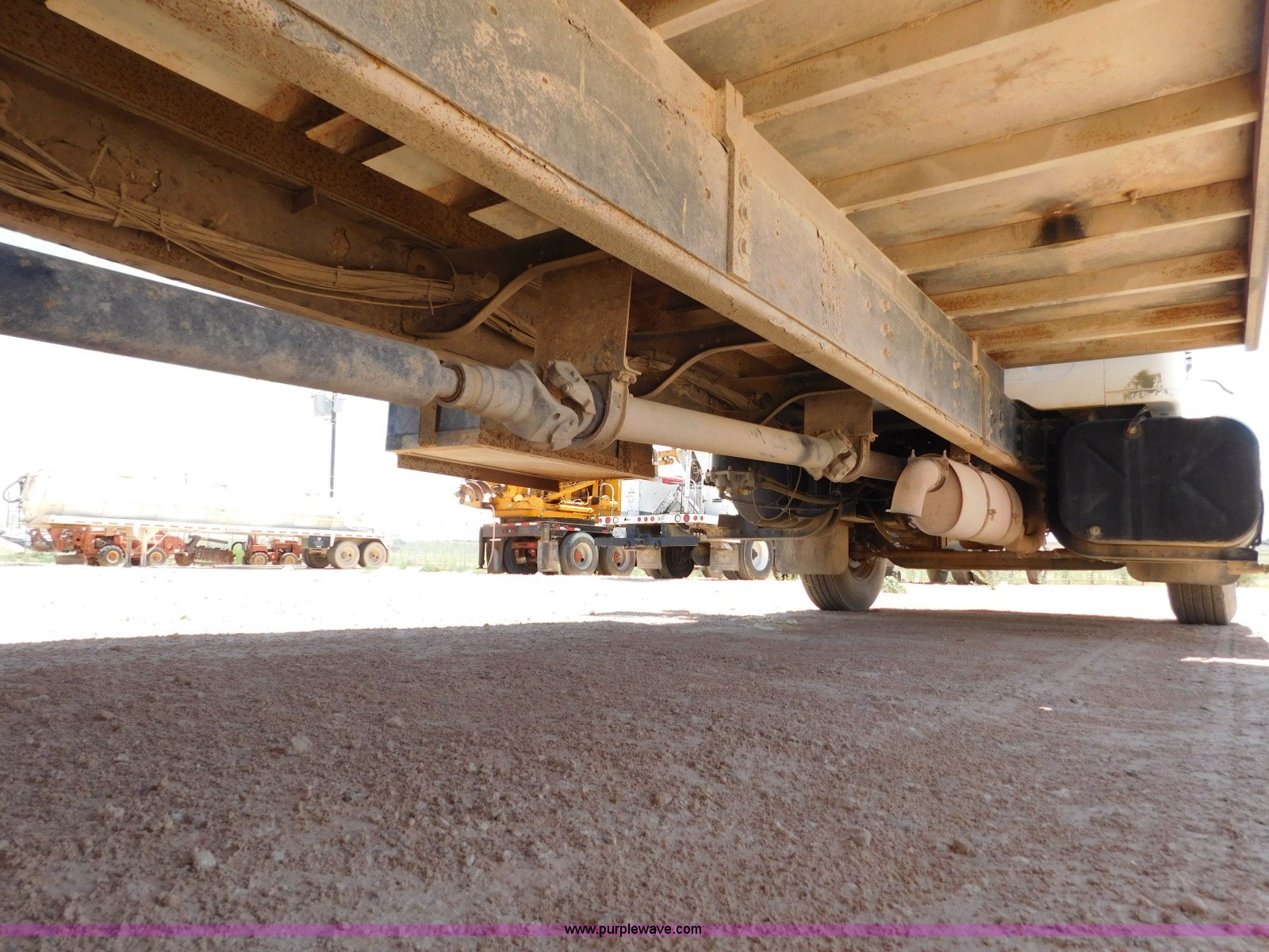 Purple Wave is selling a used Flat Bed Truck in Texas. This item is a 2001 International 4900 flatbed truck with the following: 296,922 miles on odometer, International DT466 7.6L L6 turbo diesel engine, Serial 183334101, Eaton Fuller six speed manual transmission, Single axle, AC and heat, Air suspension seat, Ether start, 11'L x 8'W flatbed, Toolbox, Single exhaust stack, Single fuel tank, 237" wheelbase, Spring suspension, Air brakes, 11R22.5 tires, GVWR 32,900 lbs, Windshield chipped, Unit# 9707