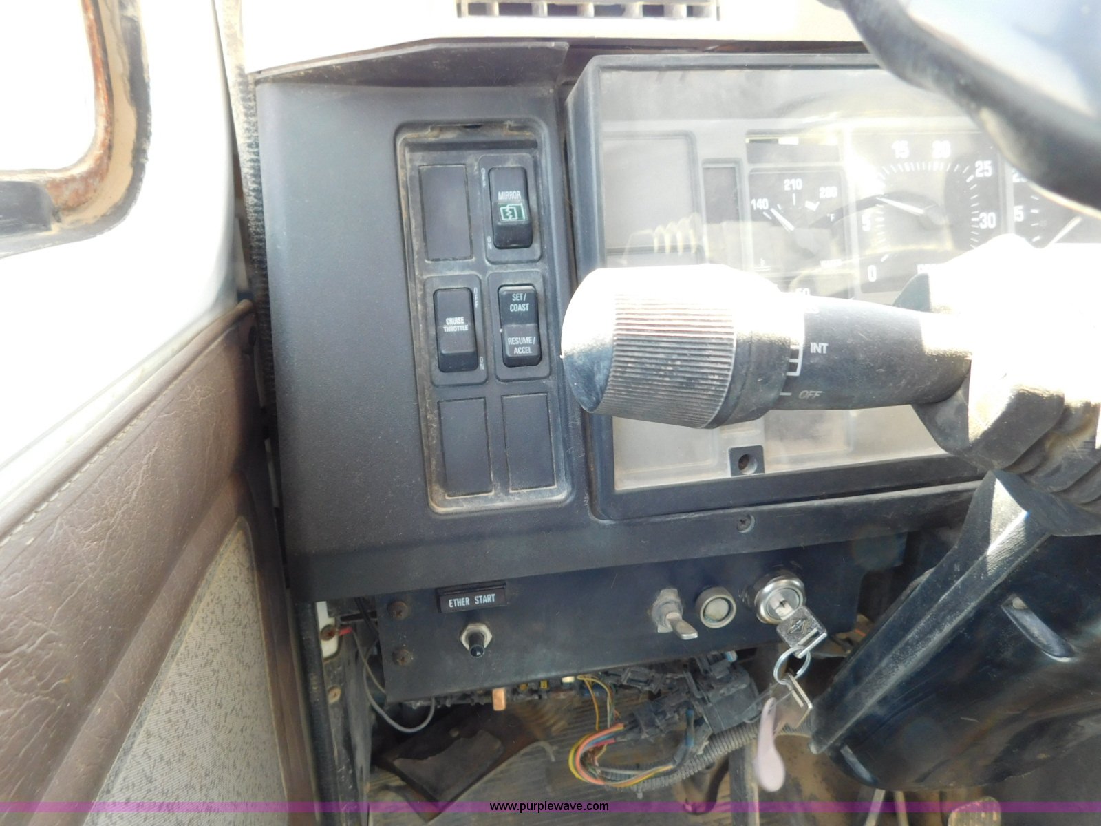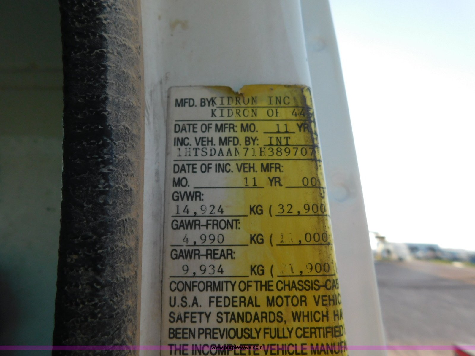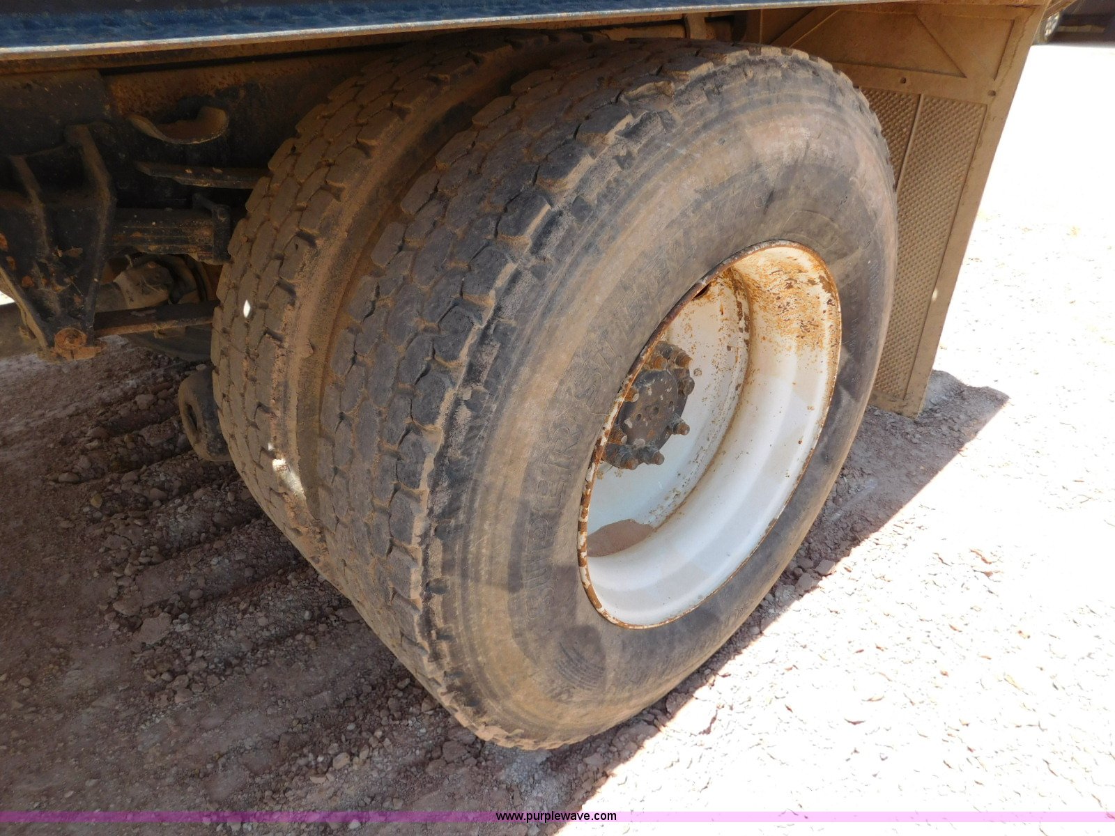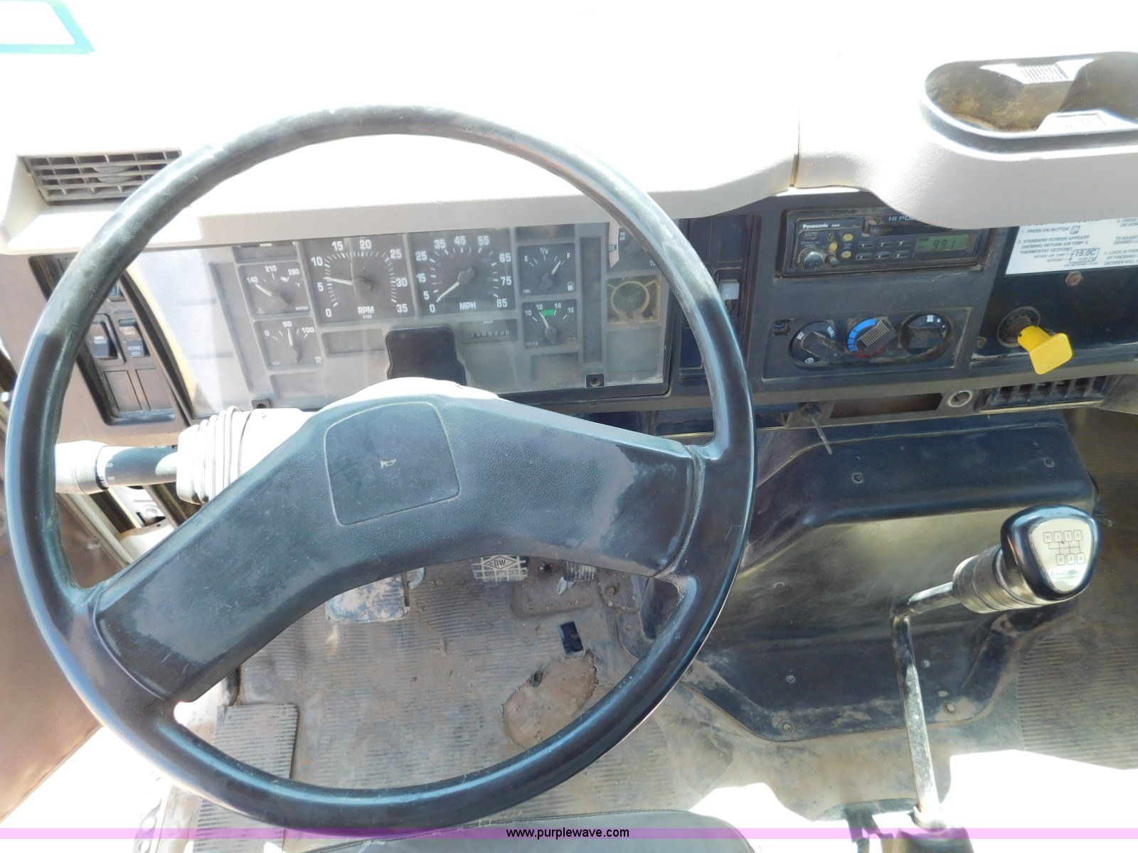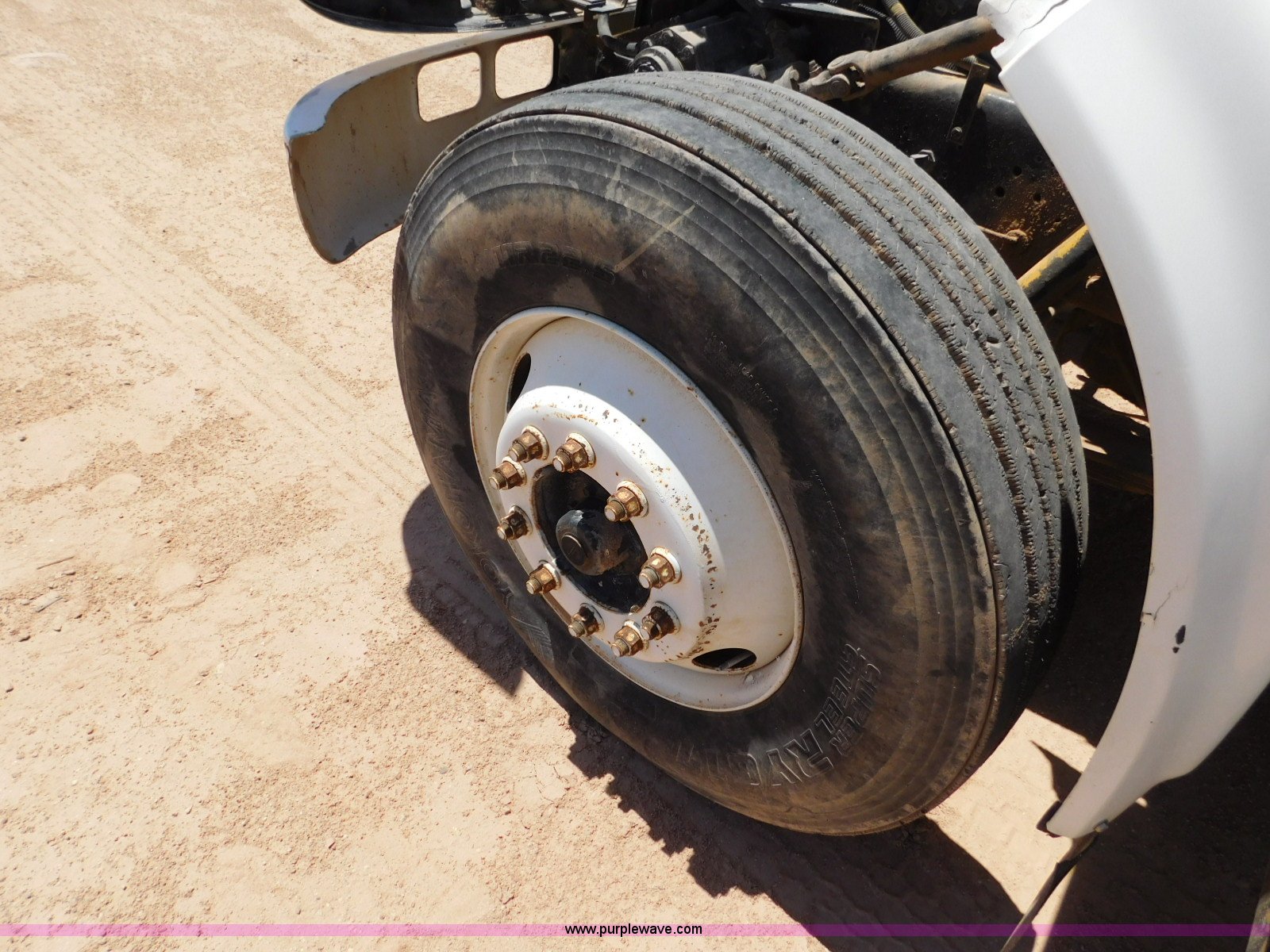Purple Wave is selling a used Flat Bed Truck in Texas. This item is a 2001 International 4900 flatbed truck with the following: 296,922 miles on odometer, International DT466 7.6L L6 turbo diesel engine, Serial 183334101, Eaton Fuller six speed manual transmission, Single axle, AC and heat, Air suspension seat, Ether start, 11'L x 8'W flatbed, Toolbox, Single exhaust stack, Single fuel tank, 237" wheelbase, Spring suspension, Air brakes, 11R22.5 tires, GVWR 32,900 lbs, Windshield chipped, Unit# 9707