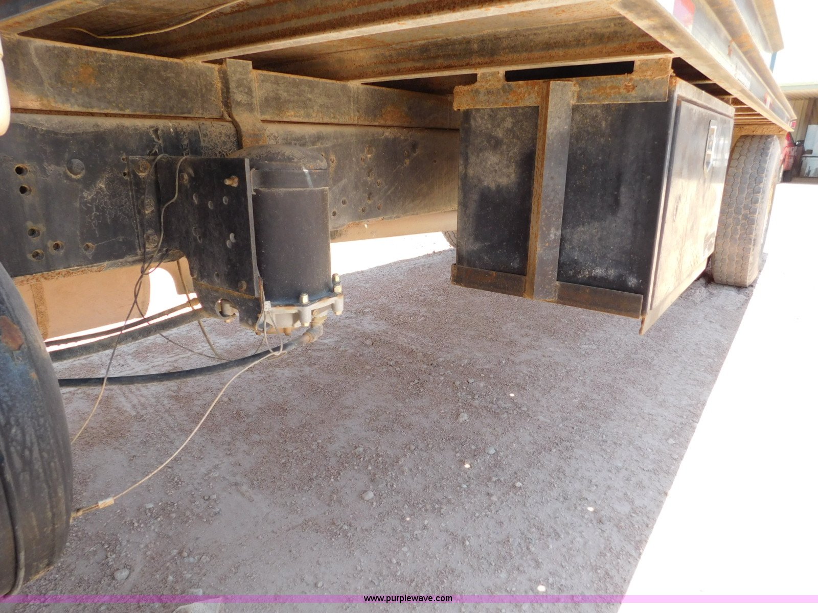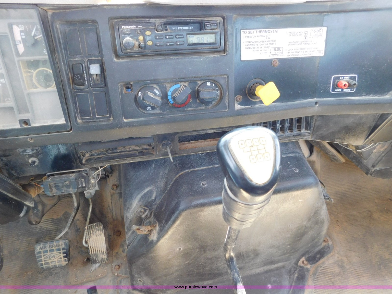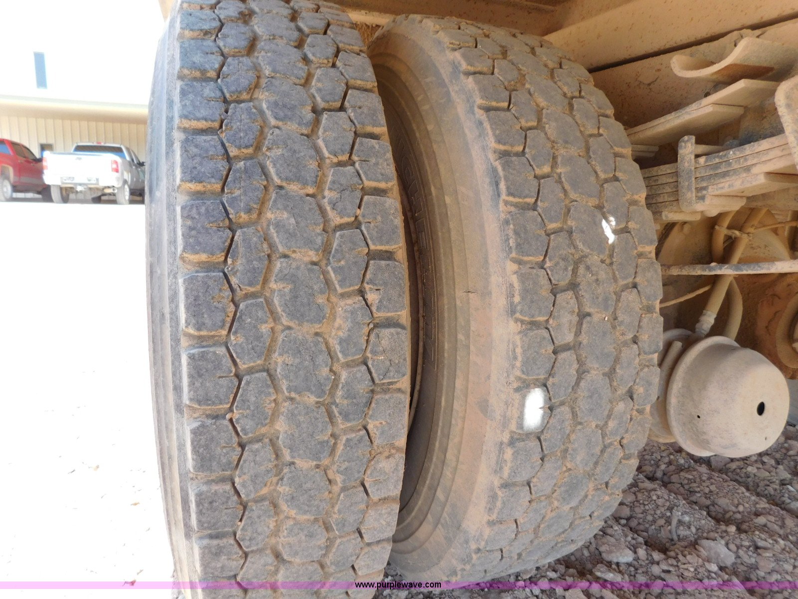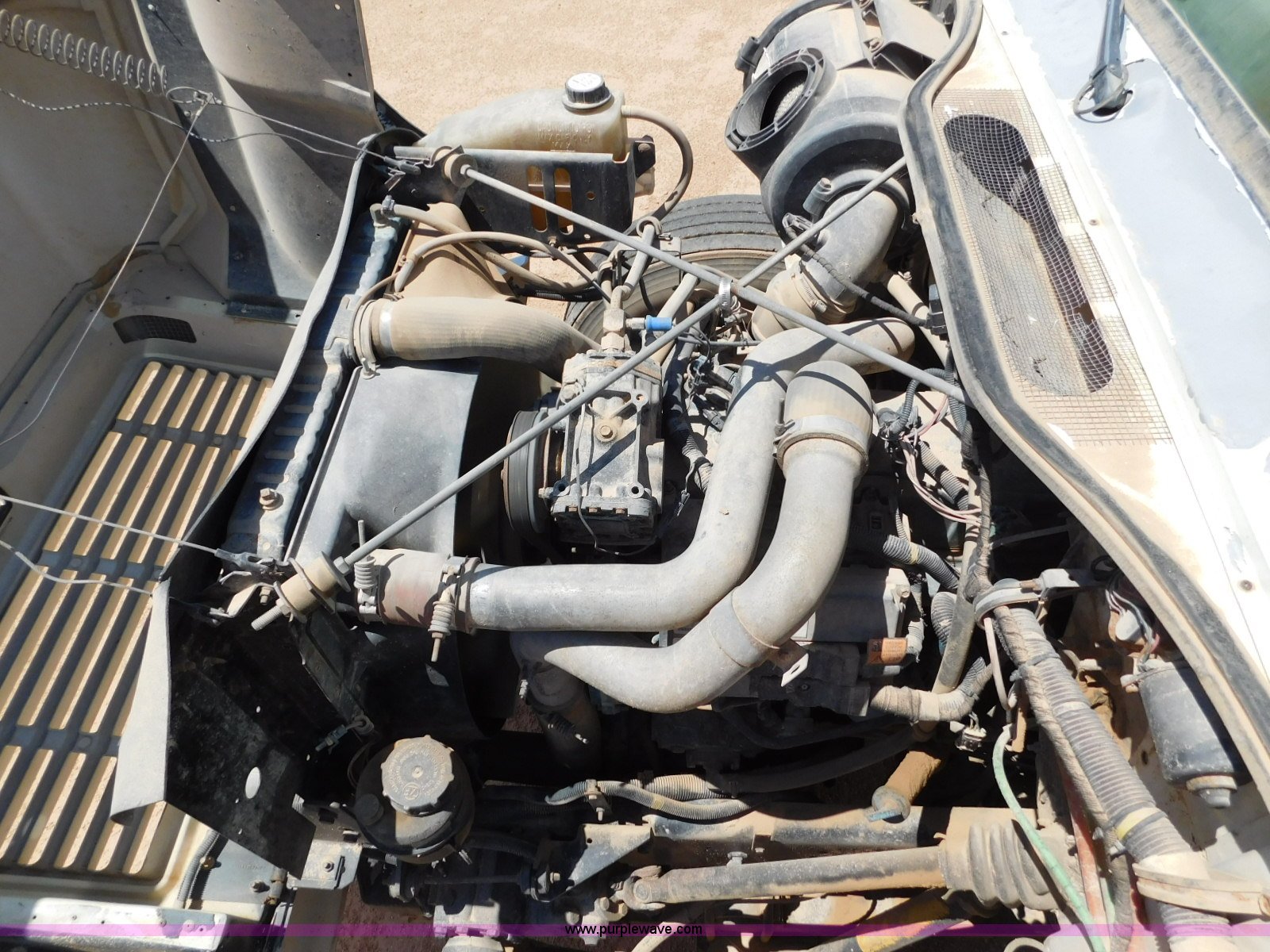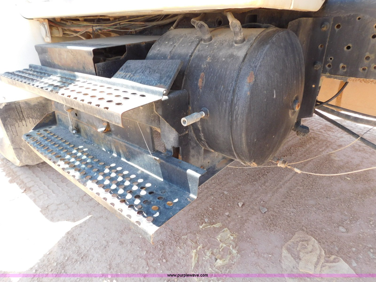 Purple Wave is selling a used Flat Bed Truck in Texas. This item is a 2001 International 4900 flatbed truck with the following: 296,922 miles on odometer, International DT466 7.6L L6 turbo diesel engine, Serial 183334101, Eaton Fuller six speed manual transmission, Single axle, AC and heat, Air suspension seat, Ether start, 11'L x 8'W flatbed, Toolbox, Single exhaust stack, Single fuel tank, 237" wheelbase, Spring suspension, Air brakes, 11R22.5 tires, GVWR 32,900 lbs, Windshield chipped, Unit# 9707