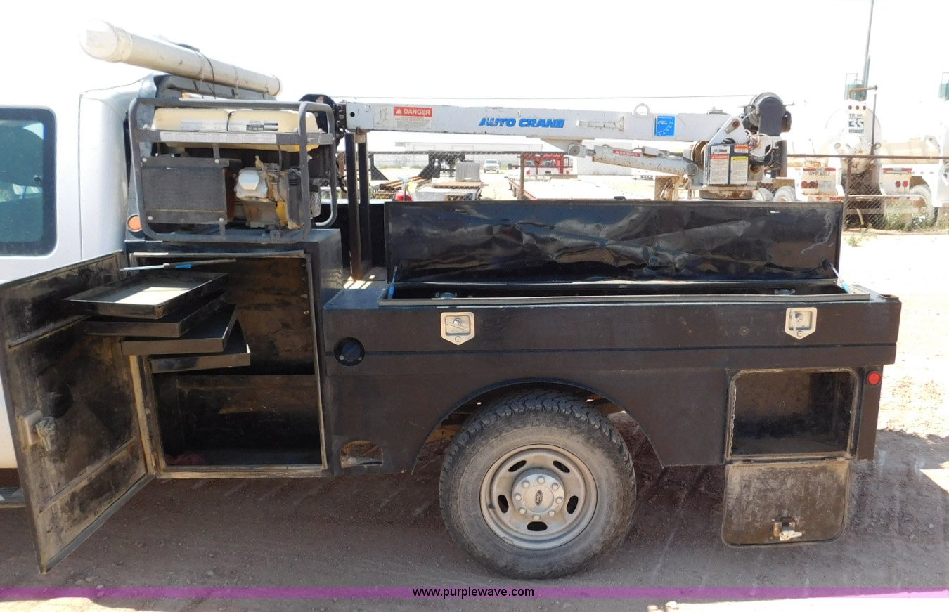 2013 Ford F350 Super Duty SuperCab service truck with crane has sold in Midland, Texas for $22550. Item L5938 sold on August 11th, 2016.
