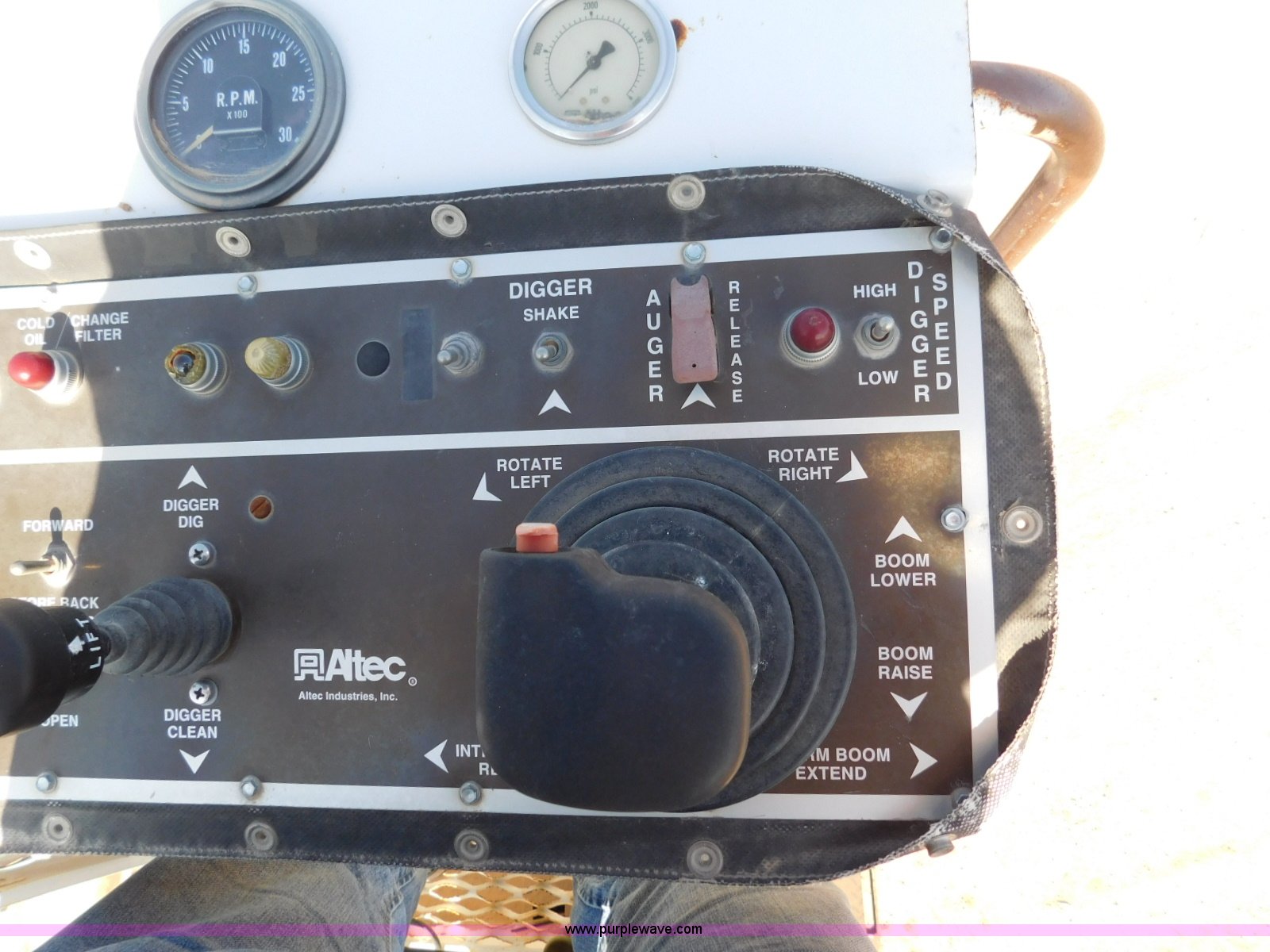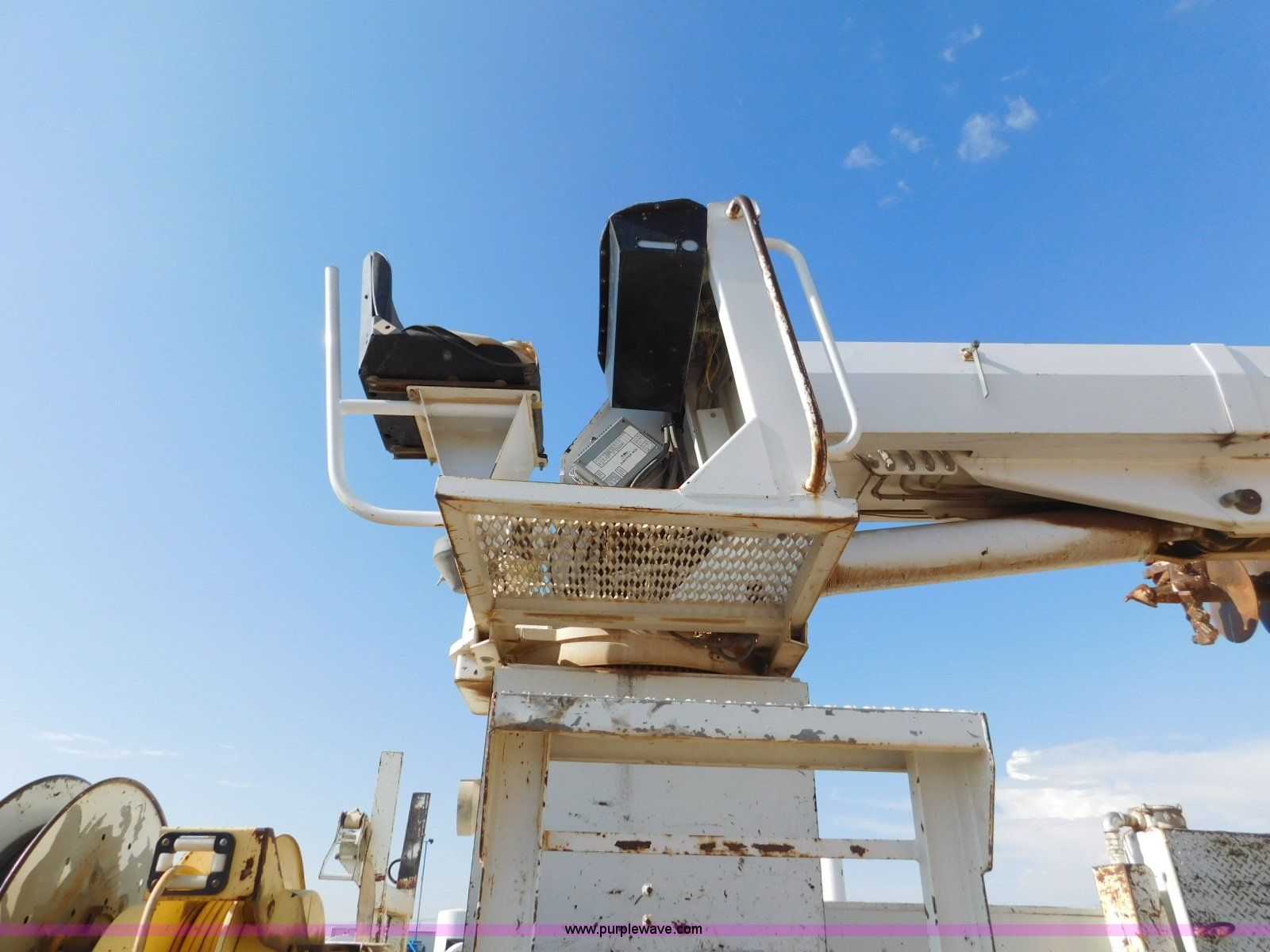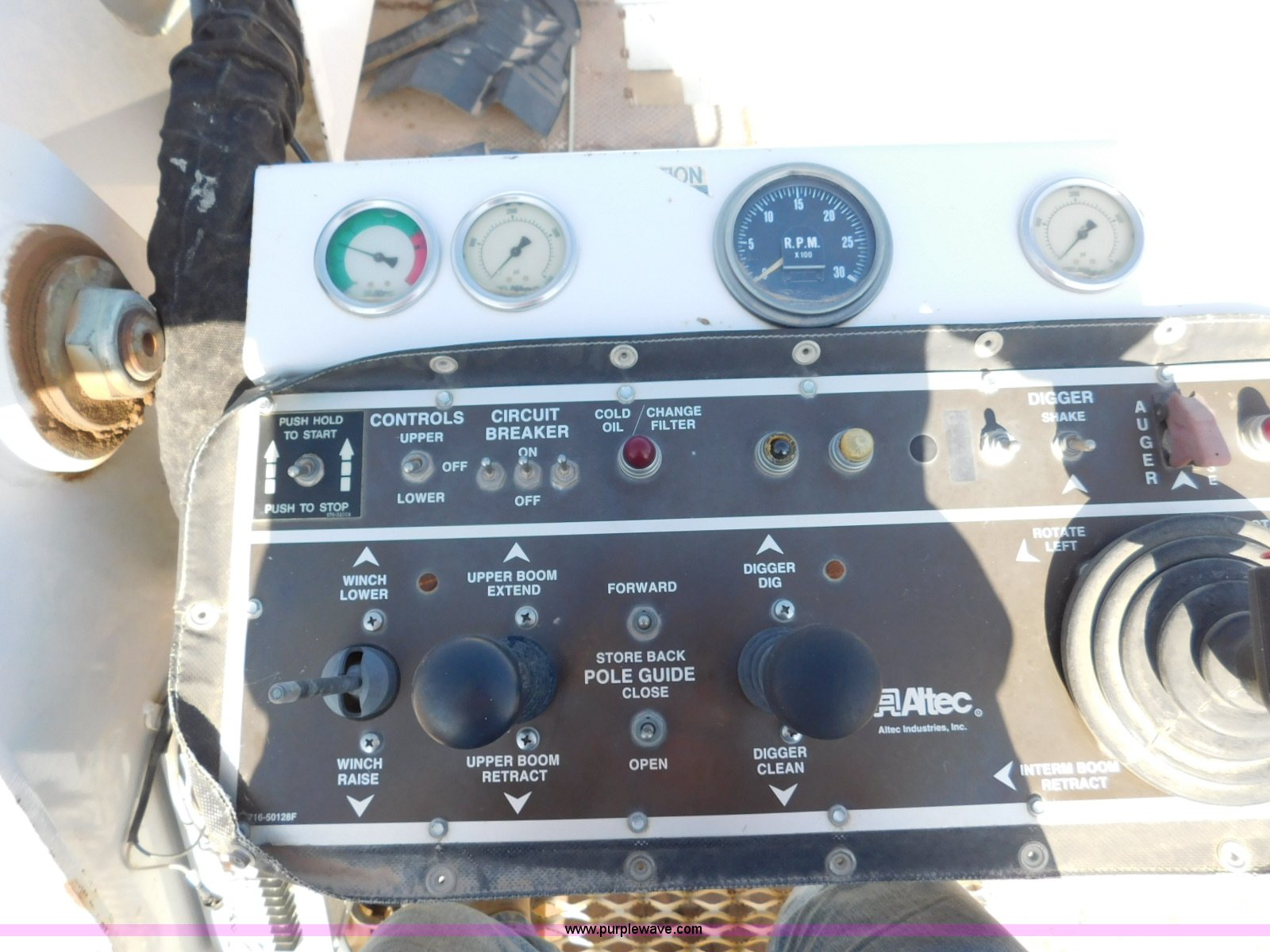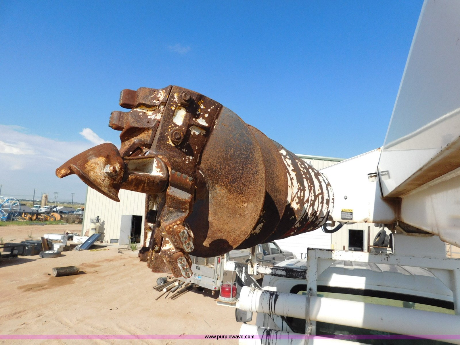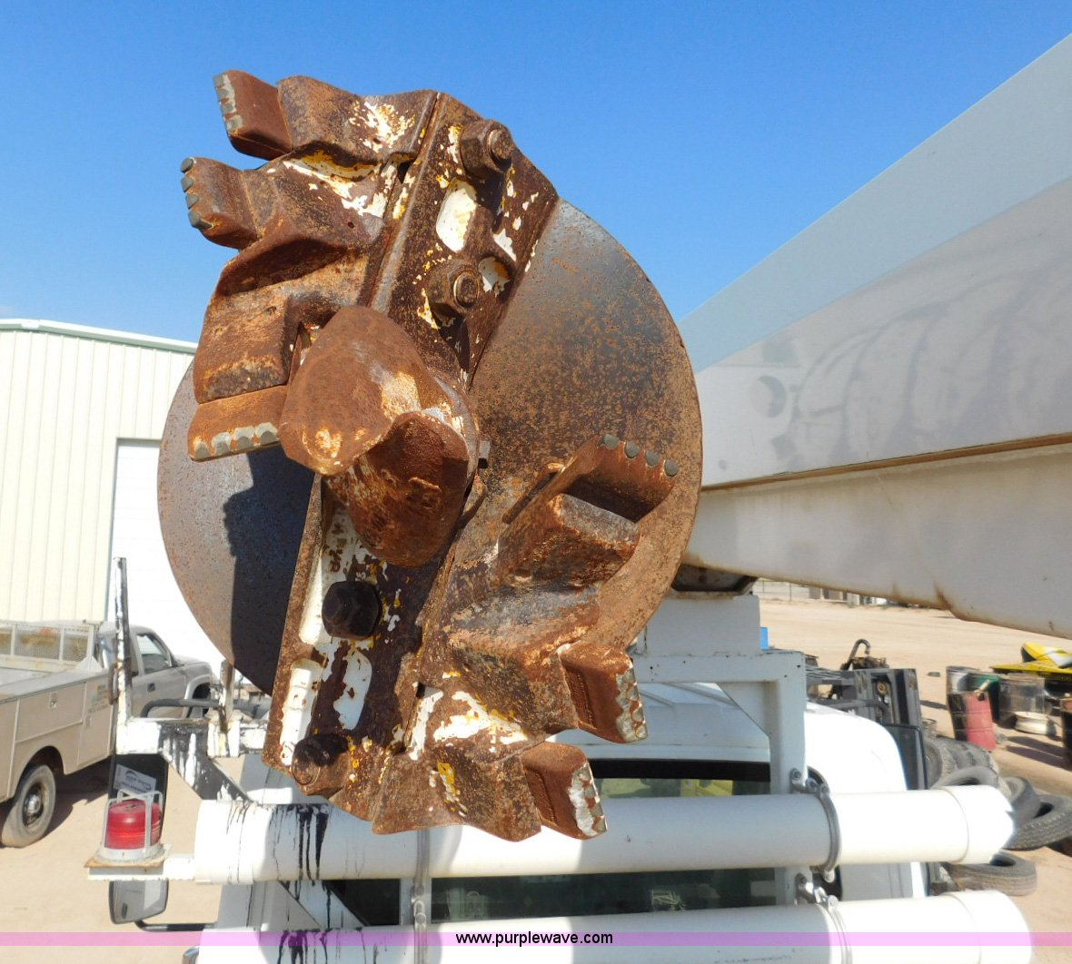 Purple Wave is selling a used Digger Derrick Truck in Texas. This item is a 2004 International 7400 digger derrick truck with the following: 20,006 miles on odometer, 1,101 hours on meter, International DT530/CH275 8.7L L6 turbo diesel engine, Eaton Fuller seven speed manual transmission, Tandem axle, AC and heat, Air suspension seat, Front tow hooks, Beacon light, PTO, Service bed, Shelving, Slide-out drawers, Pintle hitch, Altec 12205CBR digger derrick, 2,660 lbs max lift capacity, Man basket, 40' max lift height, Platform boom controls, Boom rotation, Pole guide, Telescopic boom, 18" diameter auger, (4) outriggers, Serial 1203-Y0874, Front bumper winch, Single fuel tank, Air suspension, Air brakes, 206" wheelbase, 315/80R22.5 front tires, 11R22.5 rear tires, Cracked windshield, Unit# 4846