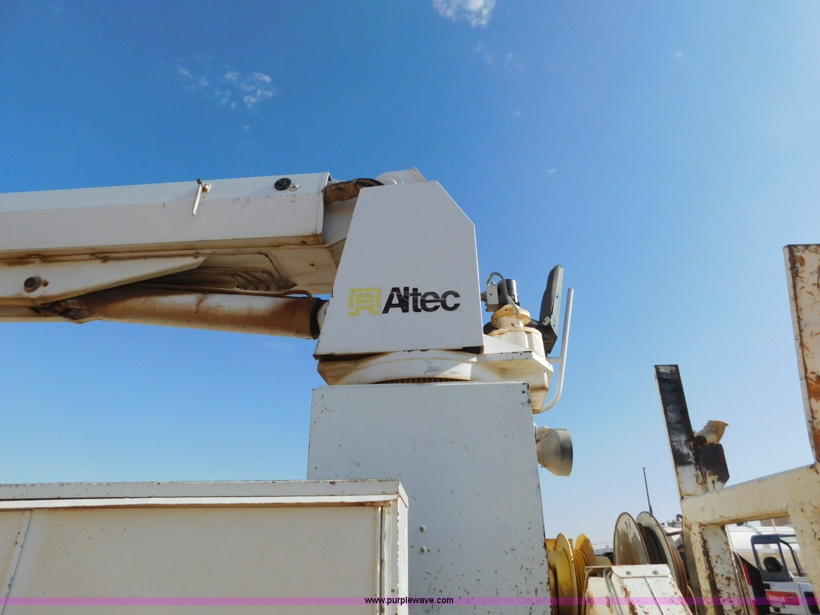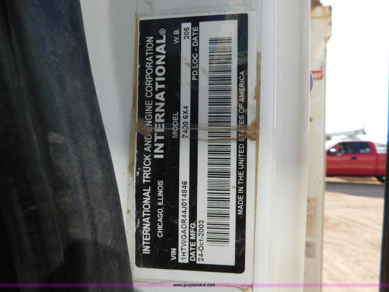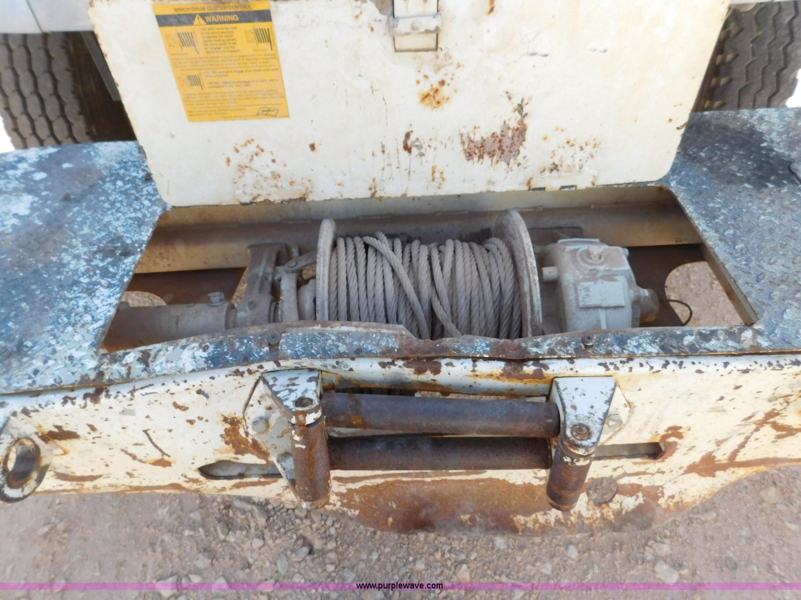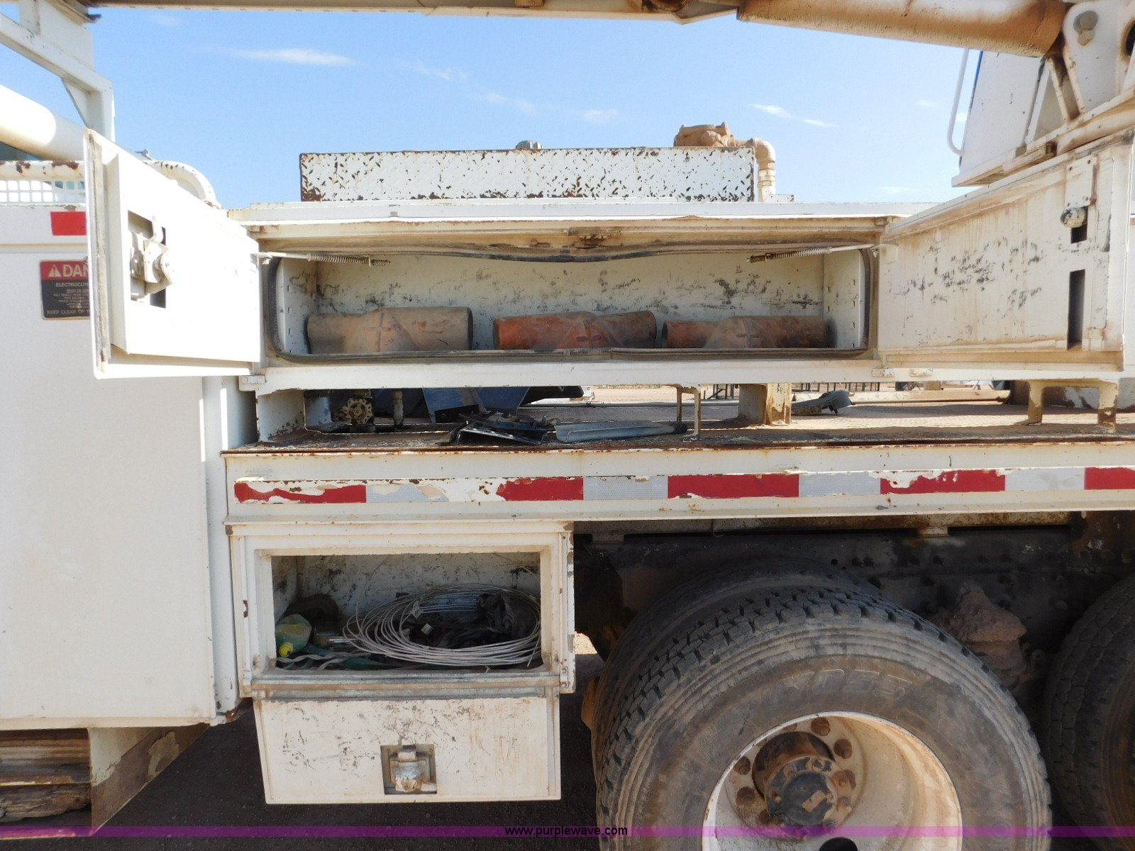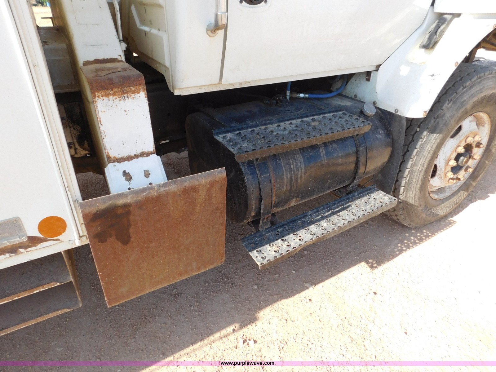 Purple Wave is selling a used Digger Derrick Truck in Texas. This item is a 2004 International 7400 digger derrick truck with the following: 20,006 miles on odometer, 1,101 hours on meter, International DT530/CH275 8.7L L6 turbo diesel engine, Eaton Fuller seven speed manual transmission, Tandem axle, AC and heat, Air suspension seat, Front tow hooks, Beacon light, PTO, Service bed, Shelving, Slide-out drawers, Pintle hitch, Altec 12205CBR digger derrick, 2,660 lbs max lift capacity, Man basket, 40' max lift height, Platform boom controls, Boom rotation, Pole guide, Telescopic boom, 18" diameter auger, (4) outriggers, Serial 1203-Y0874, Front bumper winch, Single fuel tank, Air suspension, Air brakes, 206" wheelbase, 315/80R22.5 front tires, 11R22.5 rear tires, Cracked windshield, Unit# 4846