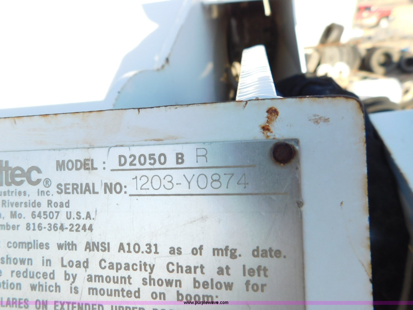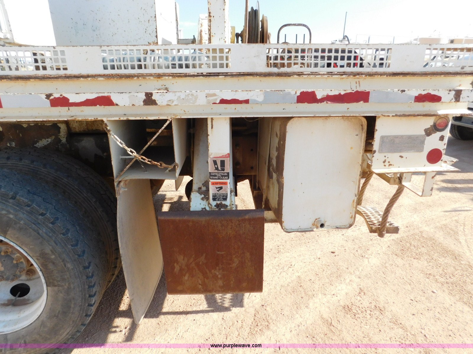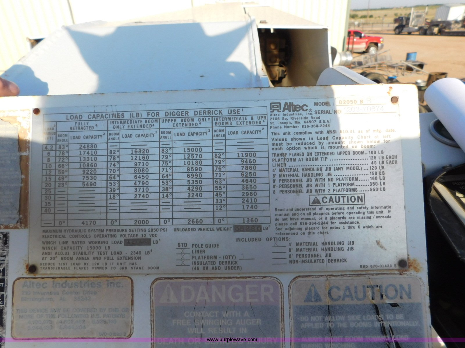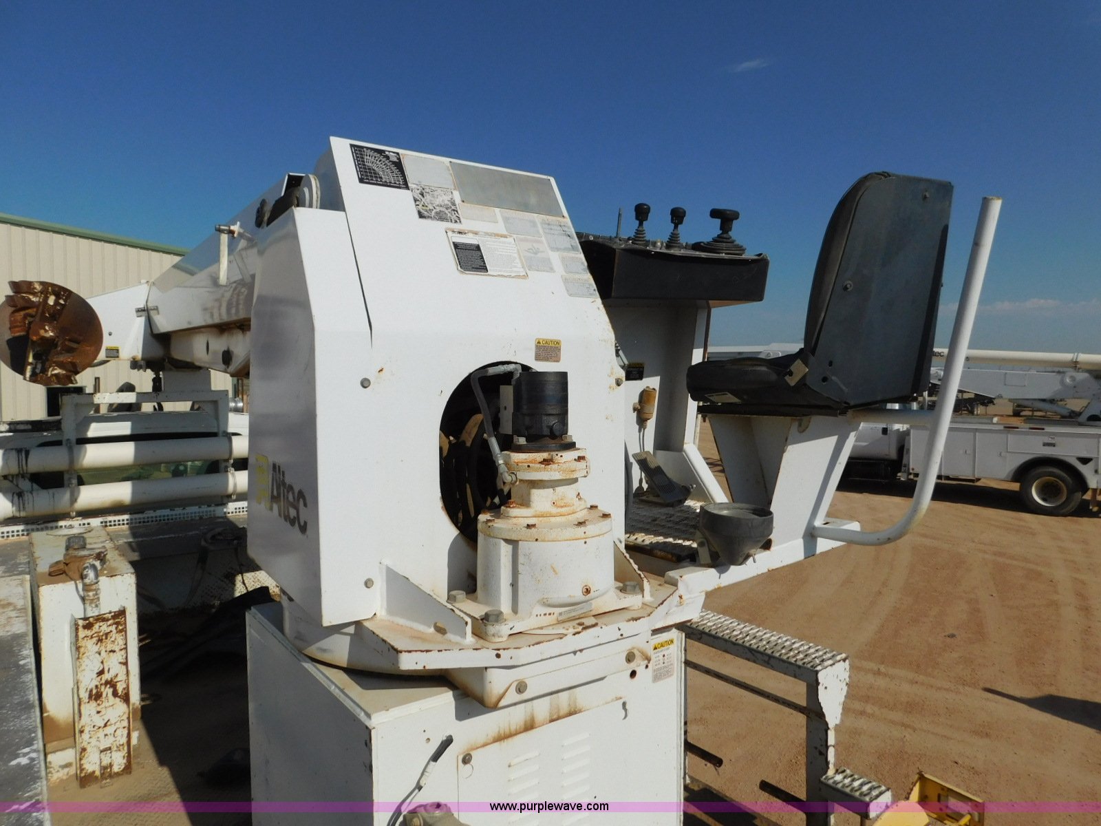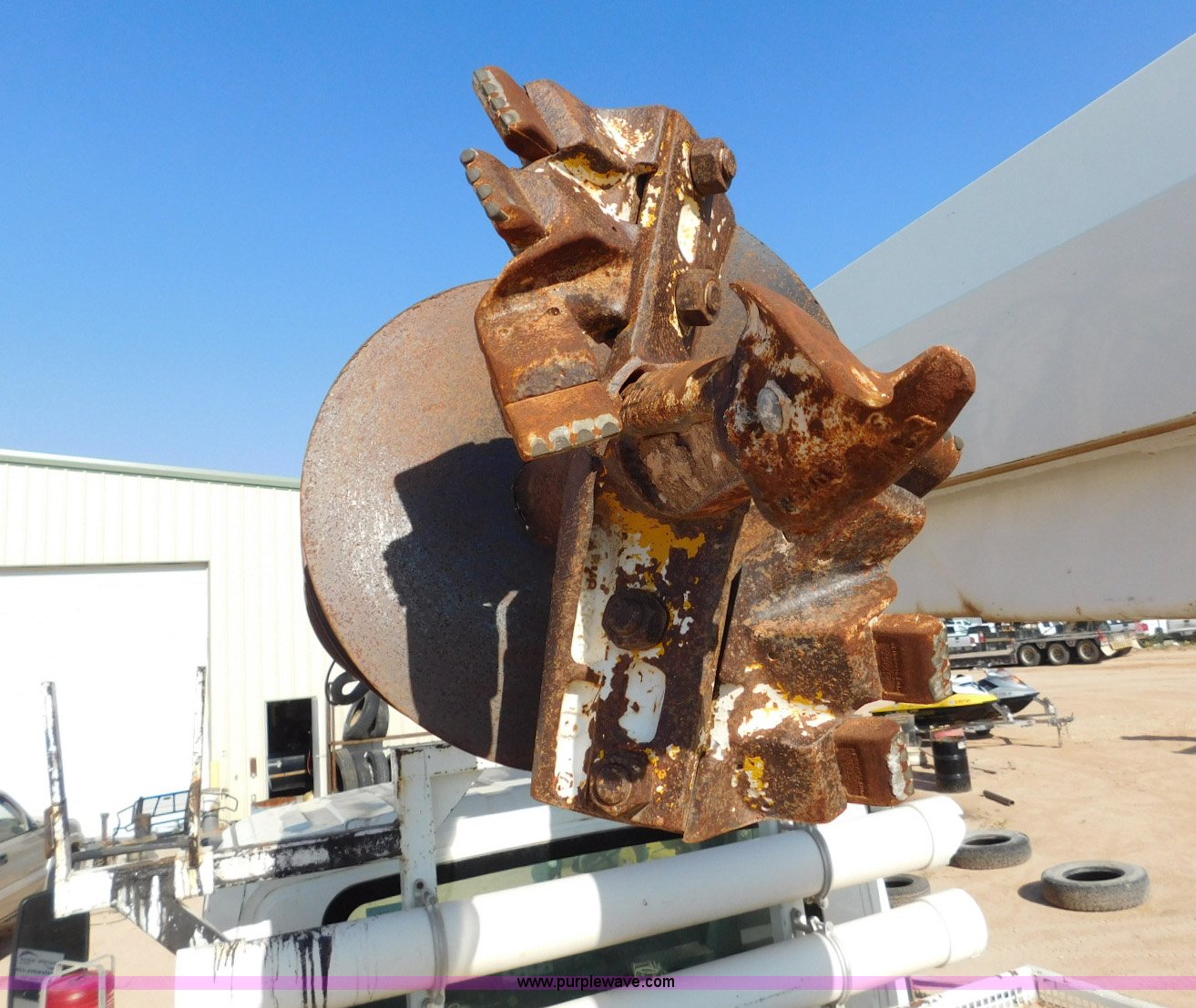 Purple Wave is selling a used Digger Derrick Truck in Texas. This item is a 2004 International 7400 digger derrick truck with the following: 20,006 miles on odometer, 1,101 hours on meter, International DT530/CH275 8.7L L6 turbo diesel engine, Eaton Fuller seven speed manual transmission, Tandem axle, AC and heat, Air suspension seat, Front tow hooks, Beacon light, PTO, Service bed, Shelving, Slide-out drawers, Pintle hitch, Altec 12205CBR digger derrick, 2,660 lbs max lift capacity, Man basket, 40' max lift height, Platform boom controls, Boom rotation, Pole guide, Telescopic boom, 18" diameter auger, (4) outriggers, Serial 1203-Y0874, Front bumper winch, Single fuel tank, Air suspension, Air brakes, 206" wheelbase, 315/80R22.5 front tires, 11R22.5 rear tires, Cracked windshield, Unit# 4846