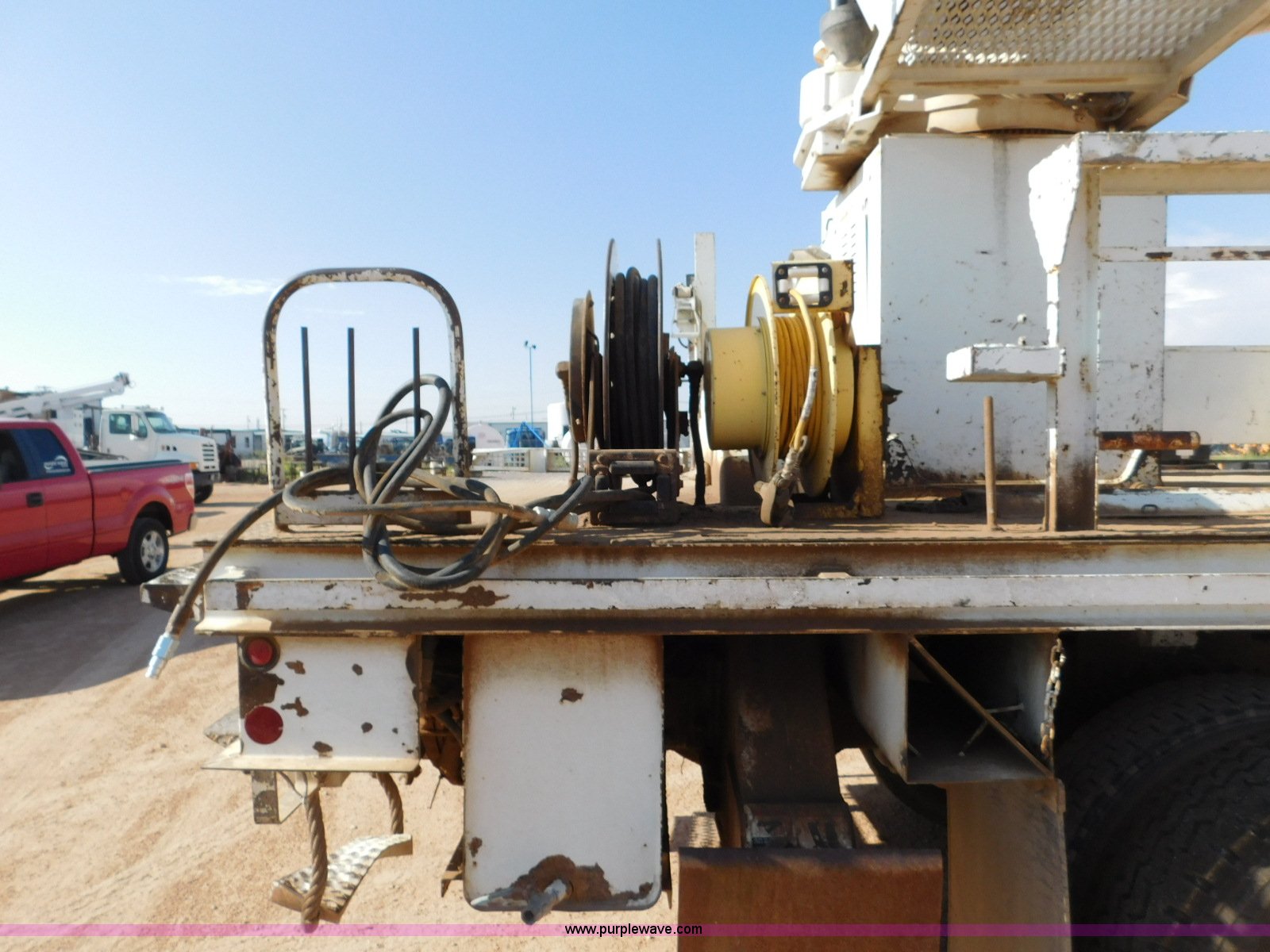 2004 International 7400 digger derrick truck. 20,006 miles on odometer, 1,101 hours on meter, International DT530/CH275 8.7L L6 turbo diesel engine, Eaton Fuller seven speed manual transmission, Tandem axle, AC and heat, Air suspension seat, Front tow hooks, Beacon light, PTO, Service bed Shelving, Slide-out drawers, Pintle hitch, Altec 12205CBR digger derrick 2,660 lbs max lift capacity, Man basket, 40' max lift height, Platform boom controls, Boom rotation, Pole guide, Telescopic boom, 18" diameter auger, (4) outriggers, Serial 1203-Y0874, Front bumper winch, Single fuel tank, Air suspension, Air brakes, 206" wheelbase, 315/80R22.5 front tires, 11R22.5 rear tires, Cracked windshield, Unit# 4846. Texas title. Title distribution may be delayed up to 14 days from verification of funds. 1HTWGADR44J014846. Brush Country Electric. 3008 Elkins. Midland, TX 79705