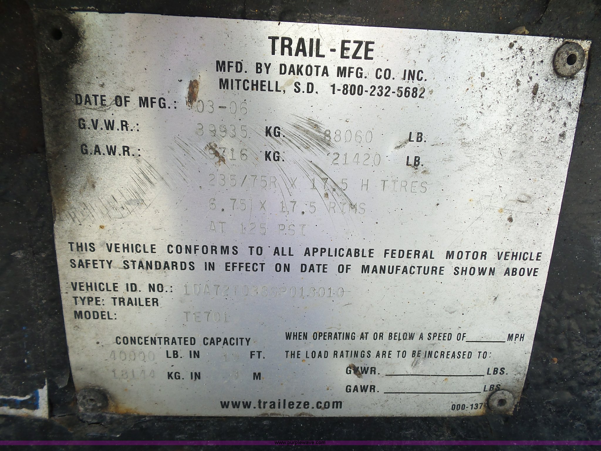 Take a look at this used 2006 Trail Eze TE701 drop deck equipment trailer being sold on August 16th, 2016 in the SOLD! August 16 Missouri Department of Transportation Auction made by Trail Eze. Take a look at all of the item information below or take a look at similar auctions for Trailers.