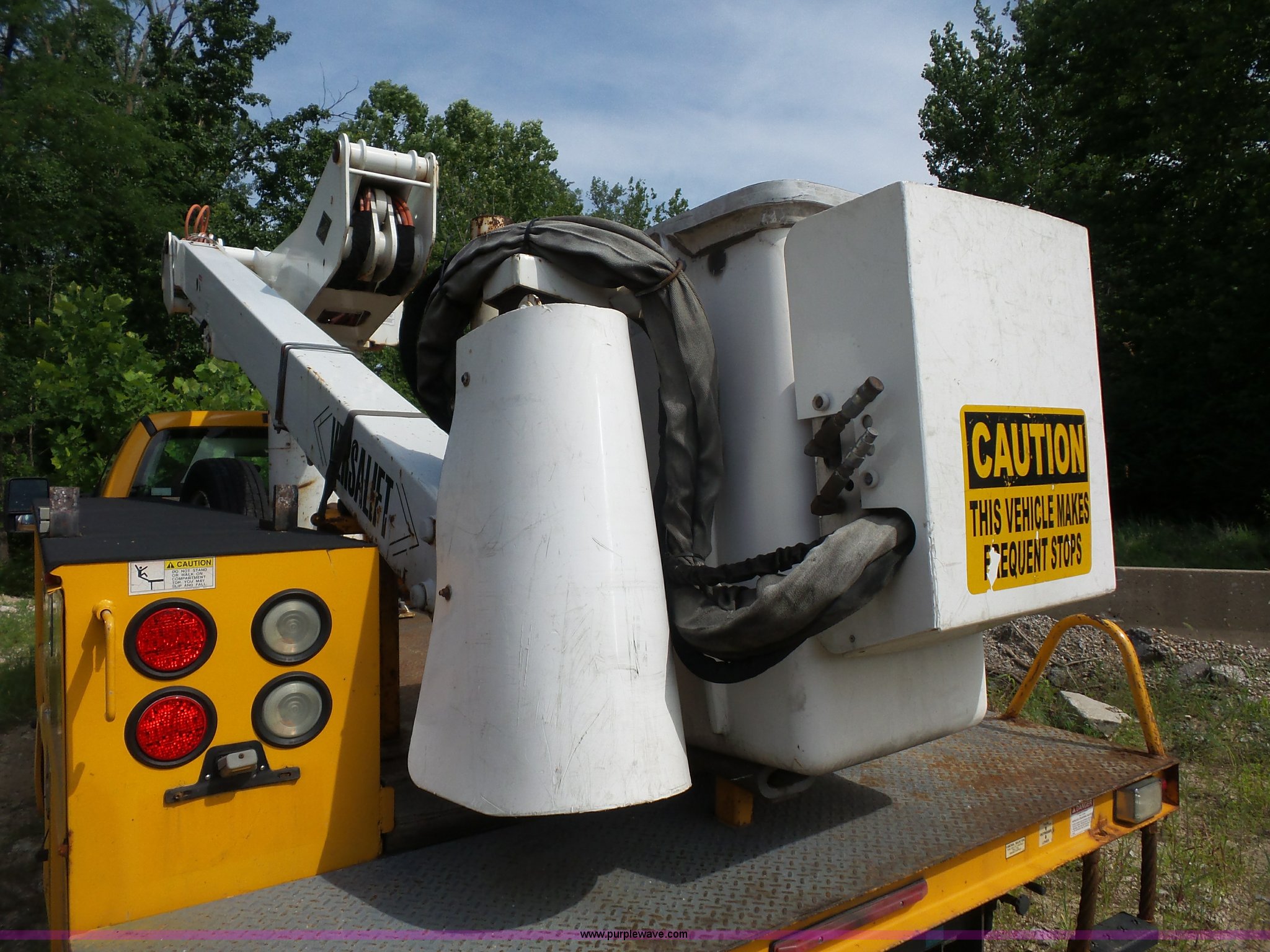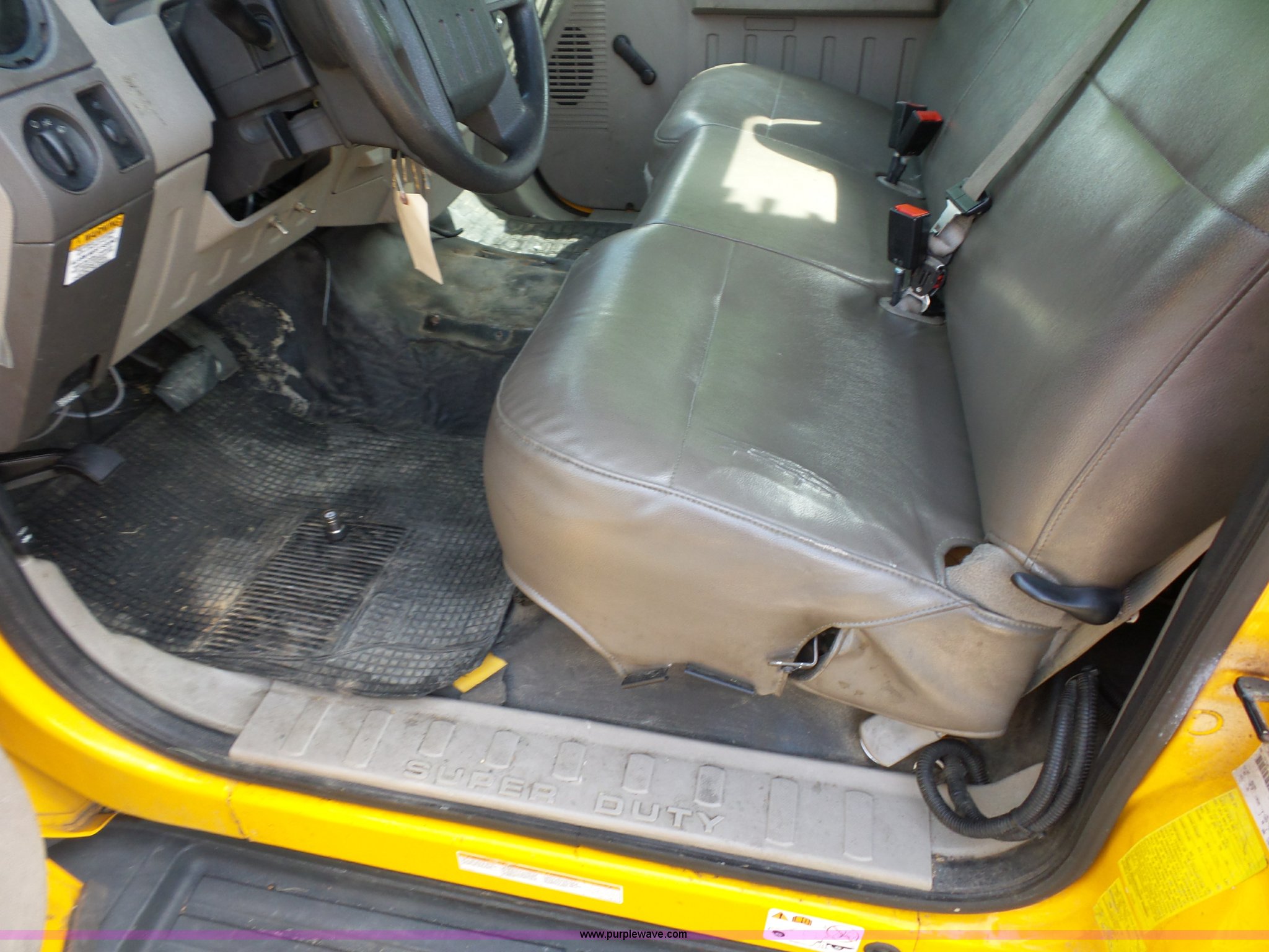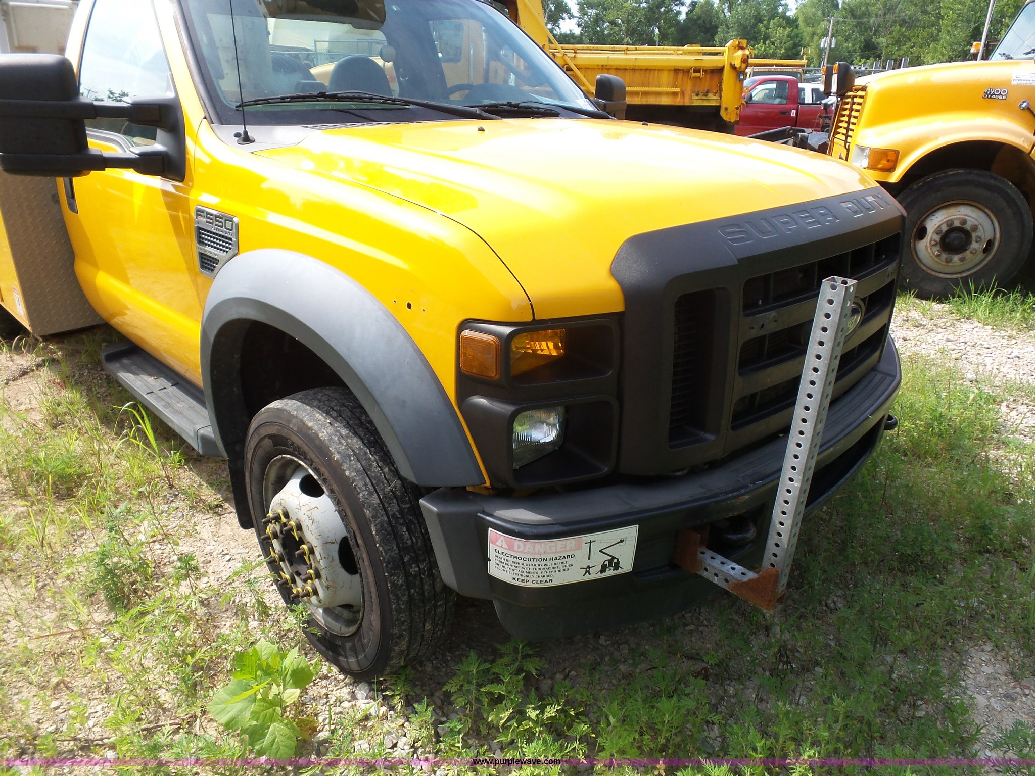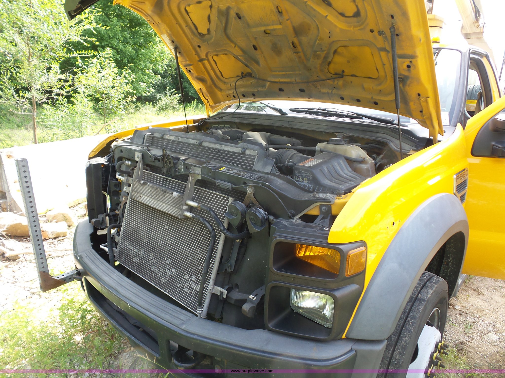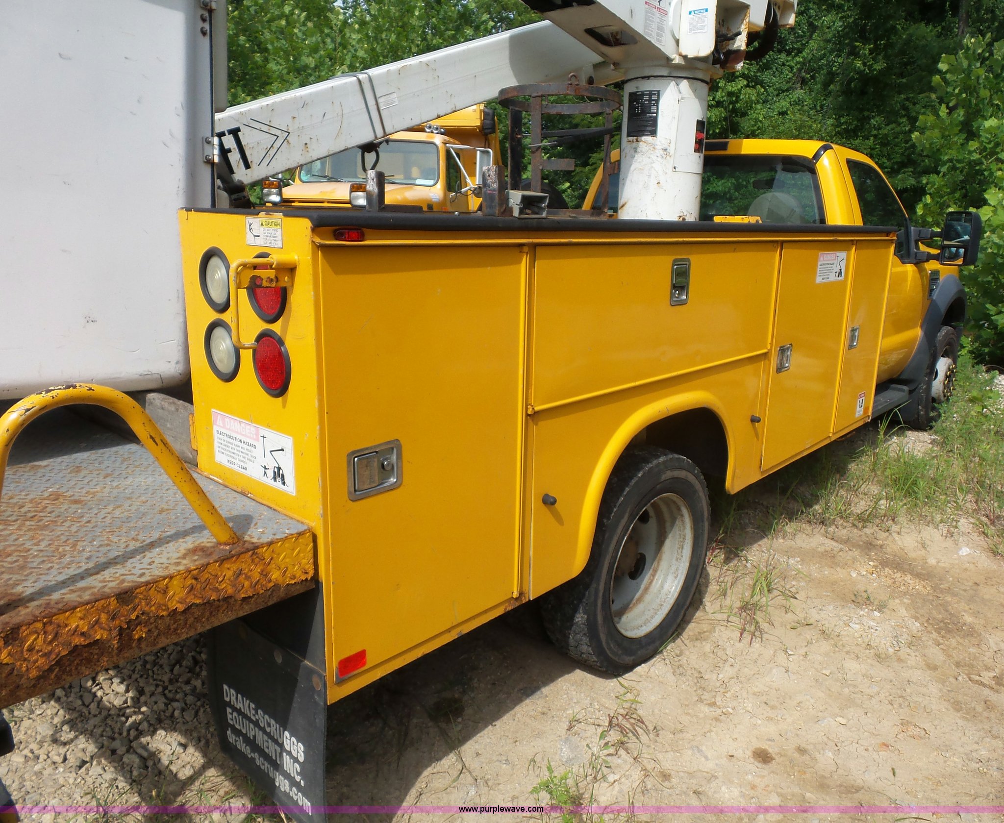 Purple Wave is selling a used Bucket Truck in Missouri. This item is a 2008 Ford F550 Super Duty bucket truck with the following: 238,423 miles on odometer, 6.8L V10 SOHC 30V gas engine, Automatic transmission, AC and heat, AM/FM, Versalift VST-240NGZ boom, Ground and platform controls, Serial GF080004, (2) outriggers, Power inverter, Receiver hitch, Pintle hitch, Spring suspension, Hydraulic brakes, 225/70R19.5 front tires, MODOT ID G9386