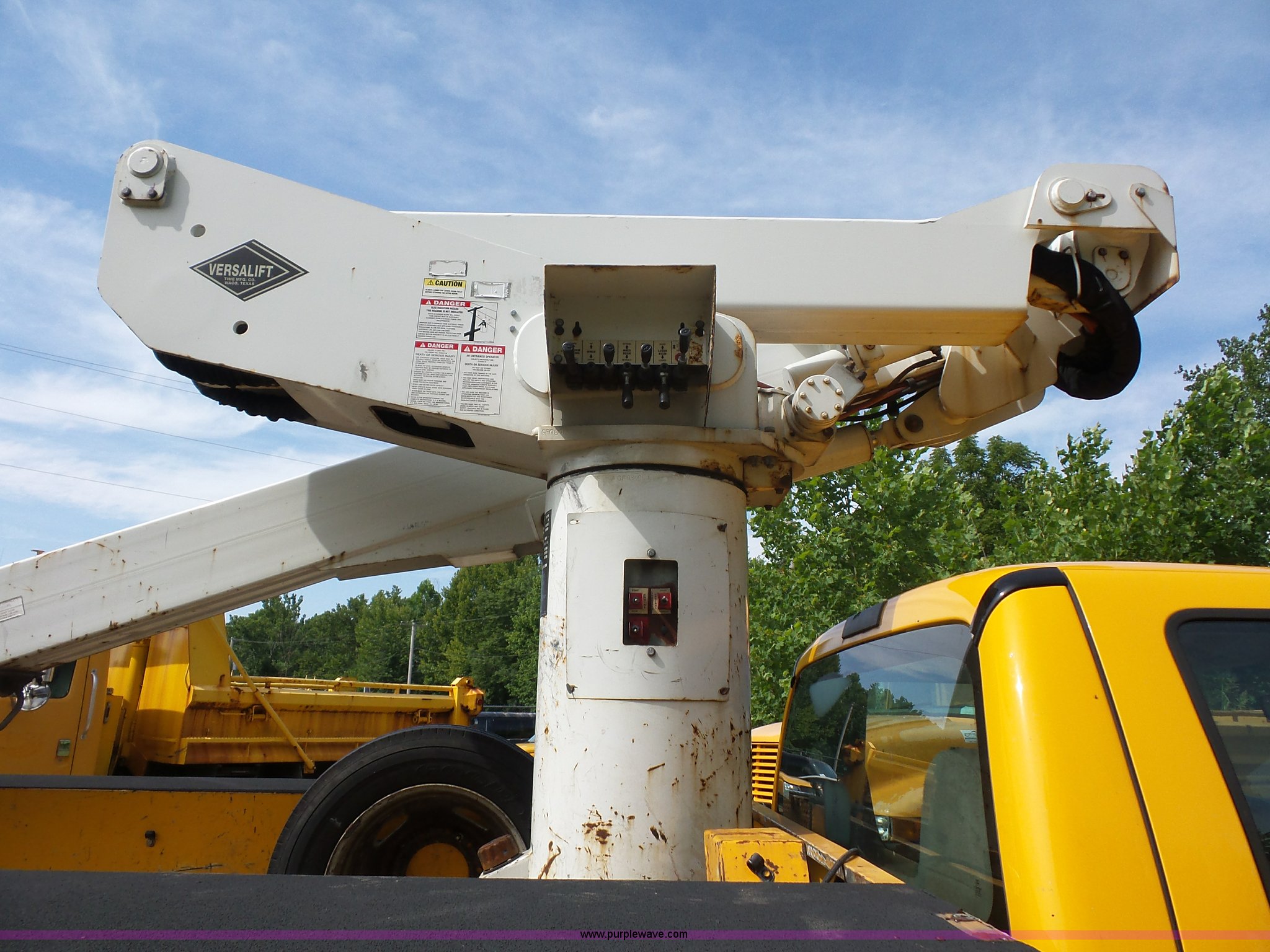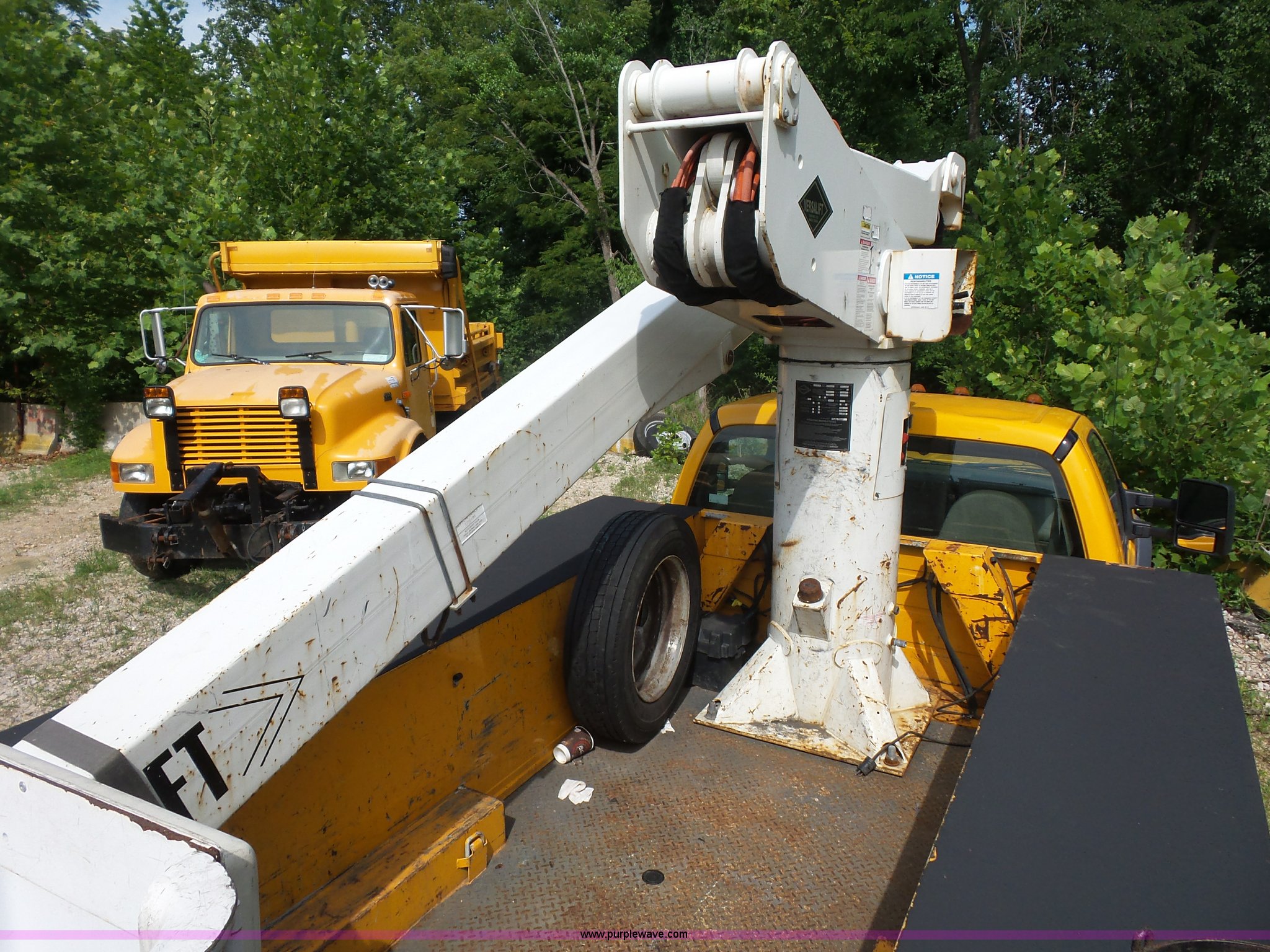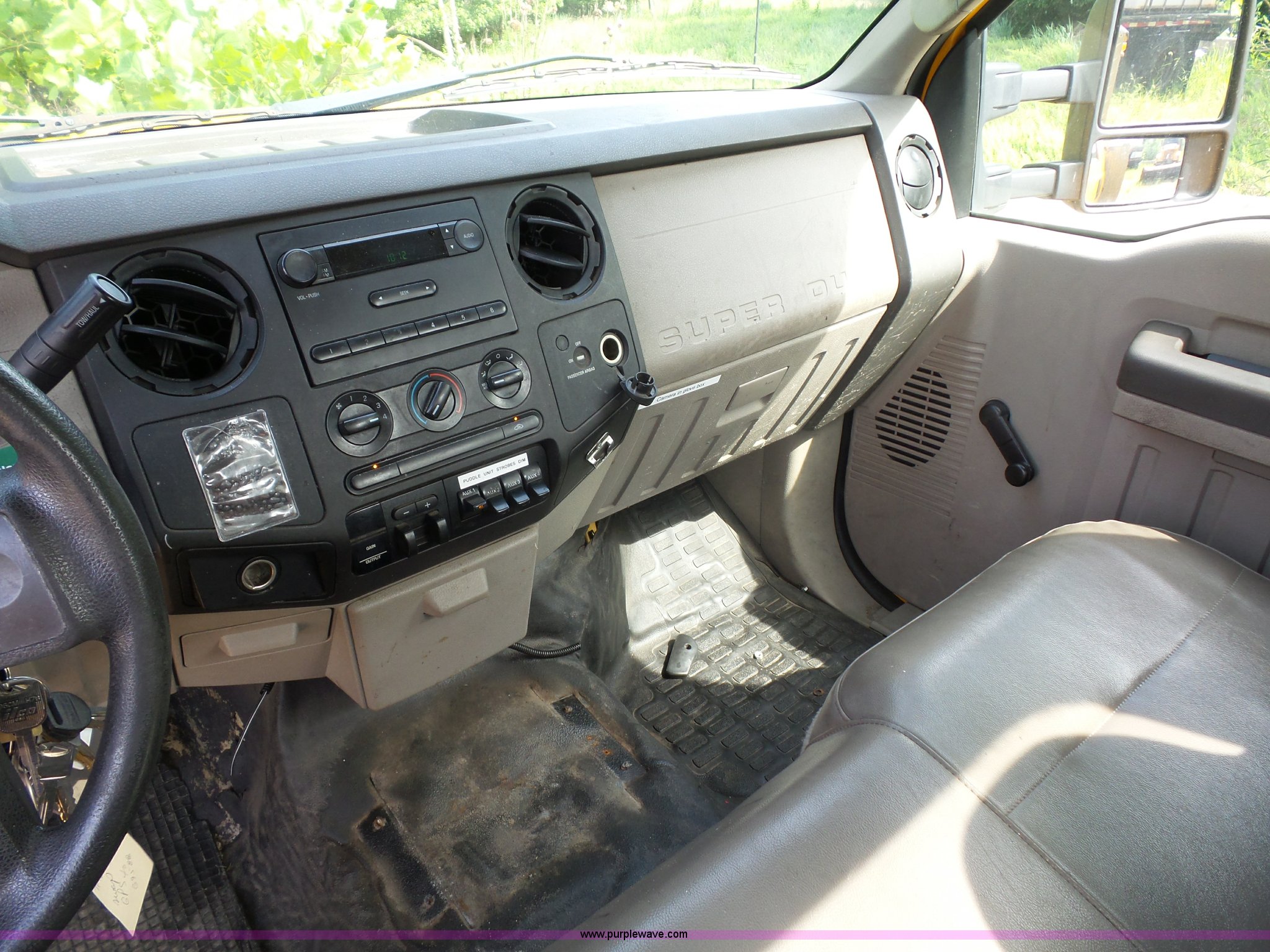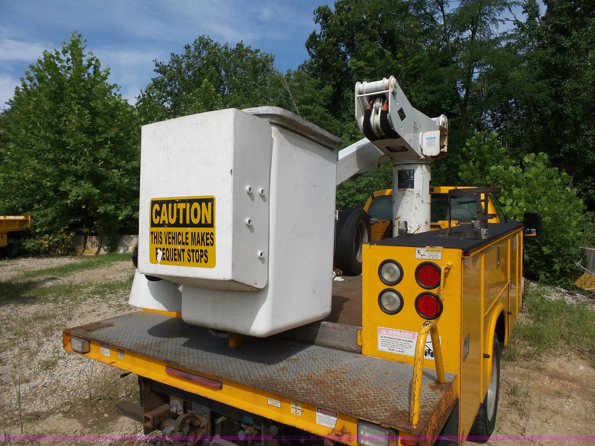 Purple Wave is selling a used Bucket Truck in Missouri. This item is a 2008 Ford F550 Super Duty bucket truck with the following: 238,423 miles on odometer, 6.8L V10 SOHC 30V gas engine, Automatic transmission, AC and heat, AM/FM, Versalift VST-240NGZ boom, Ground and platform controls, Serial GF080004, (2) outriggers, Power inverter, Receiver hitch, Pintle hitch, Spring suspension, Hydraulic brakes, 225/70R19.5 front tires, MODOT ID G9386
