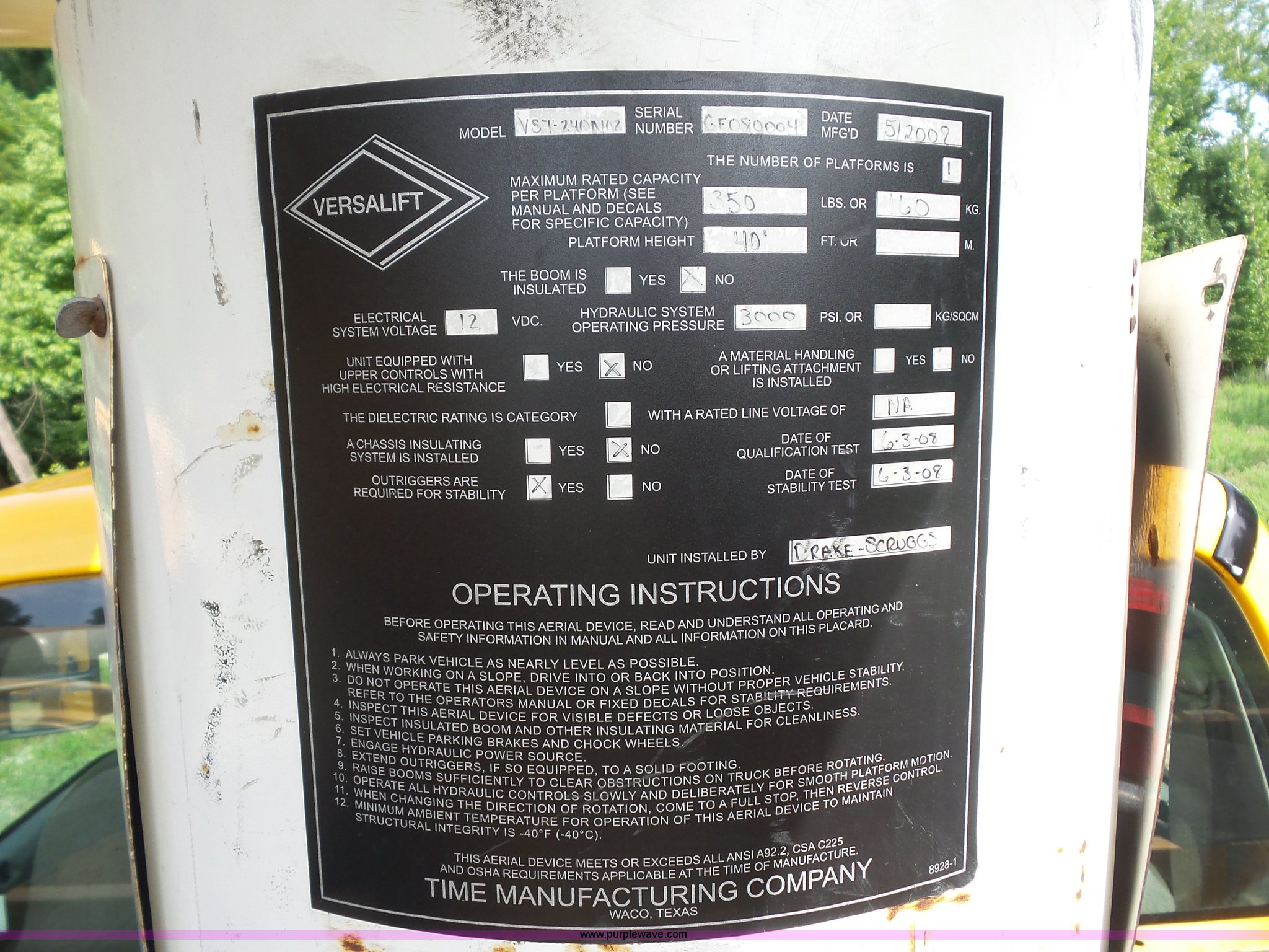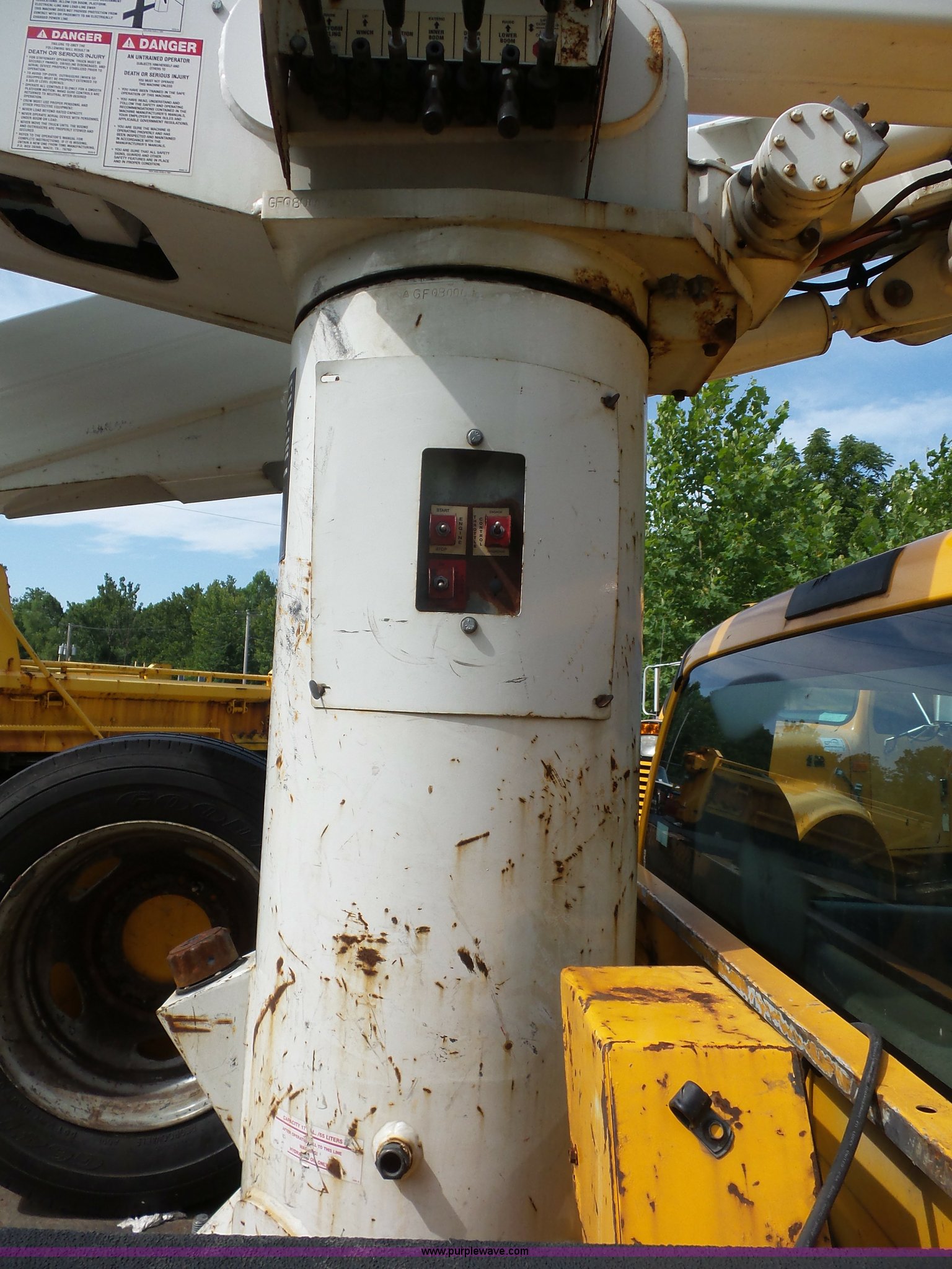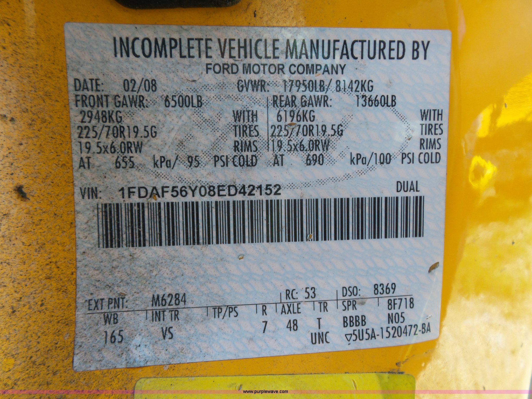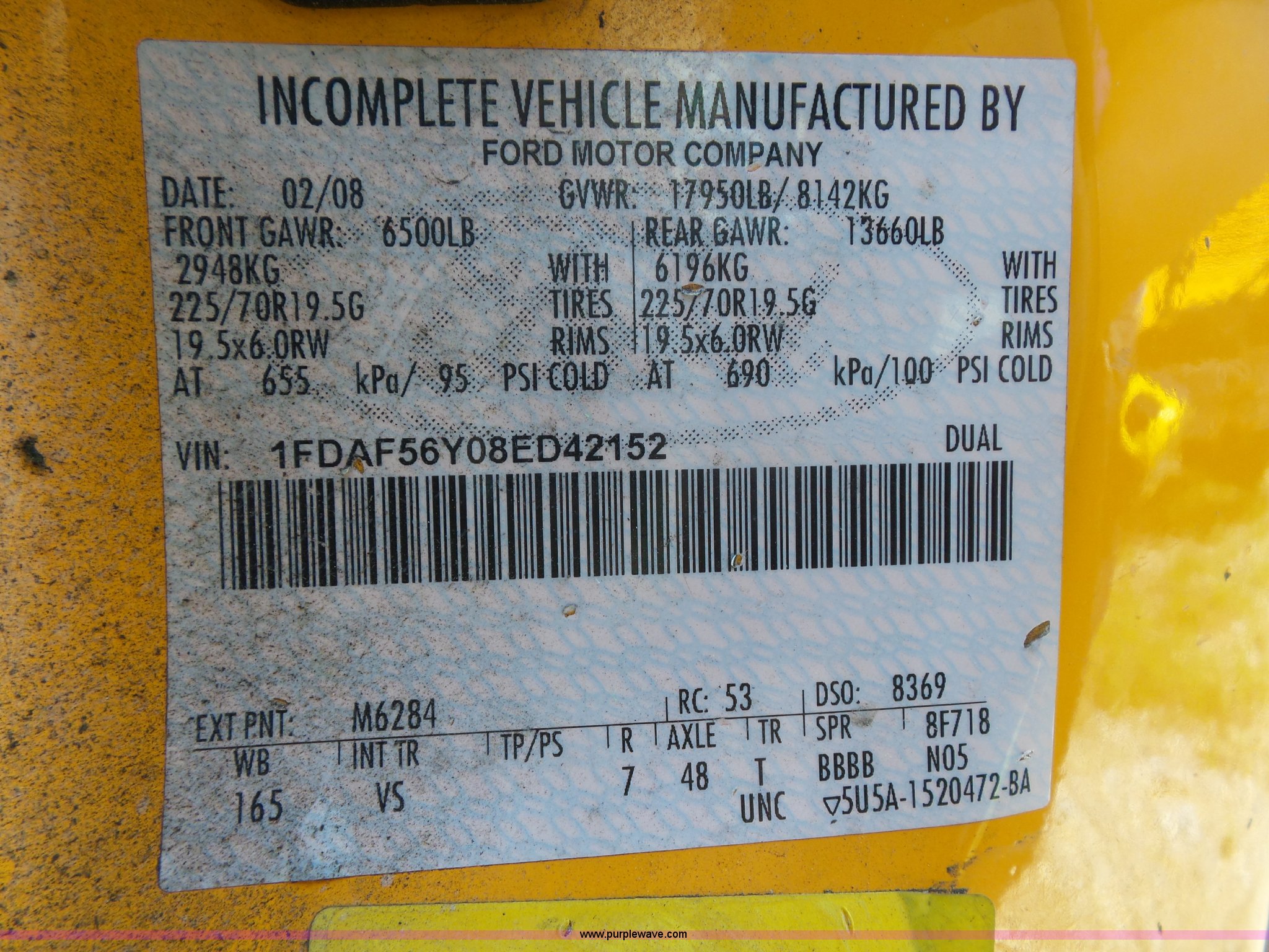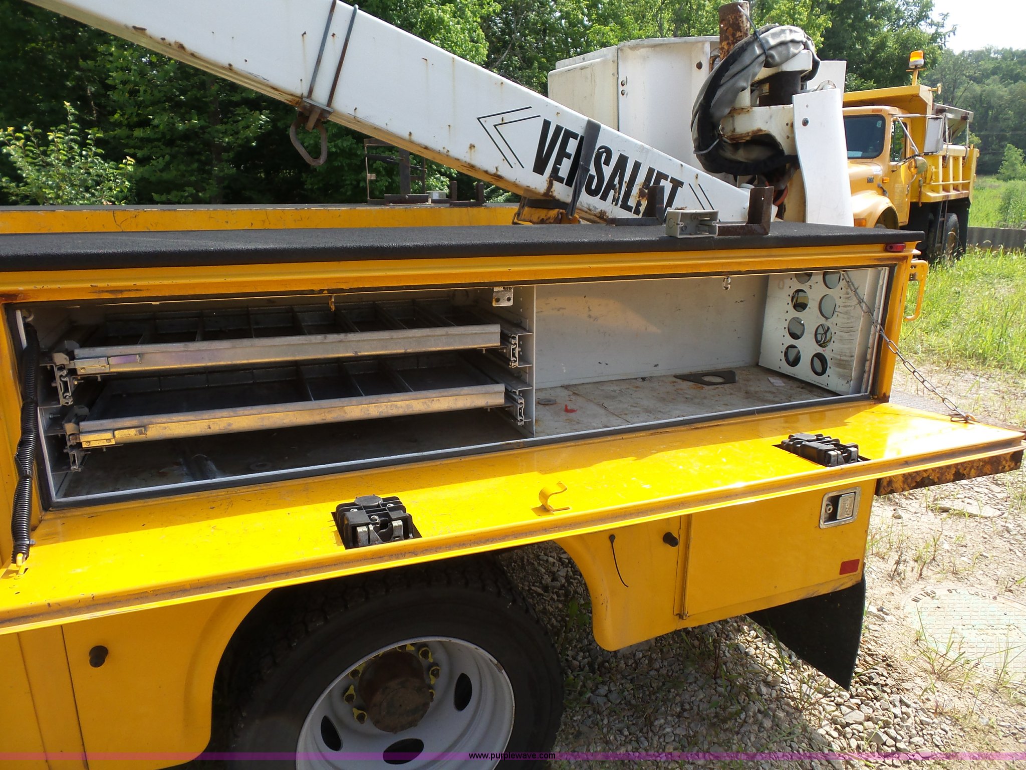 Purple Wave is selling a used Bucket Truck in Missouri. This item is a 2008 Ford F550 Super Duty bucket truck with the following: 238,423 miles on odometer, 6.8L V10 SOHC 30V gas engine, Automatic transmission, AC and heat, AM/FM, Versalift VST-240NGZ boom, Ground and platform controls, Serial GF080004, (2) outriggers, Power inverter, Receiver hitch, Pintle hitch, Spring suspension, Hydraulic brakes, 225/70R19.5 front tires, MODOT ID G9386