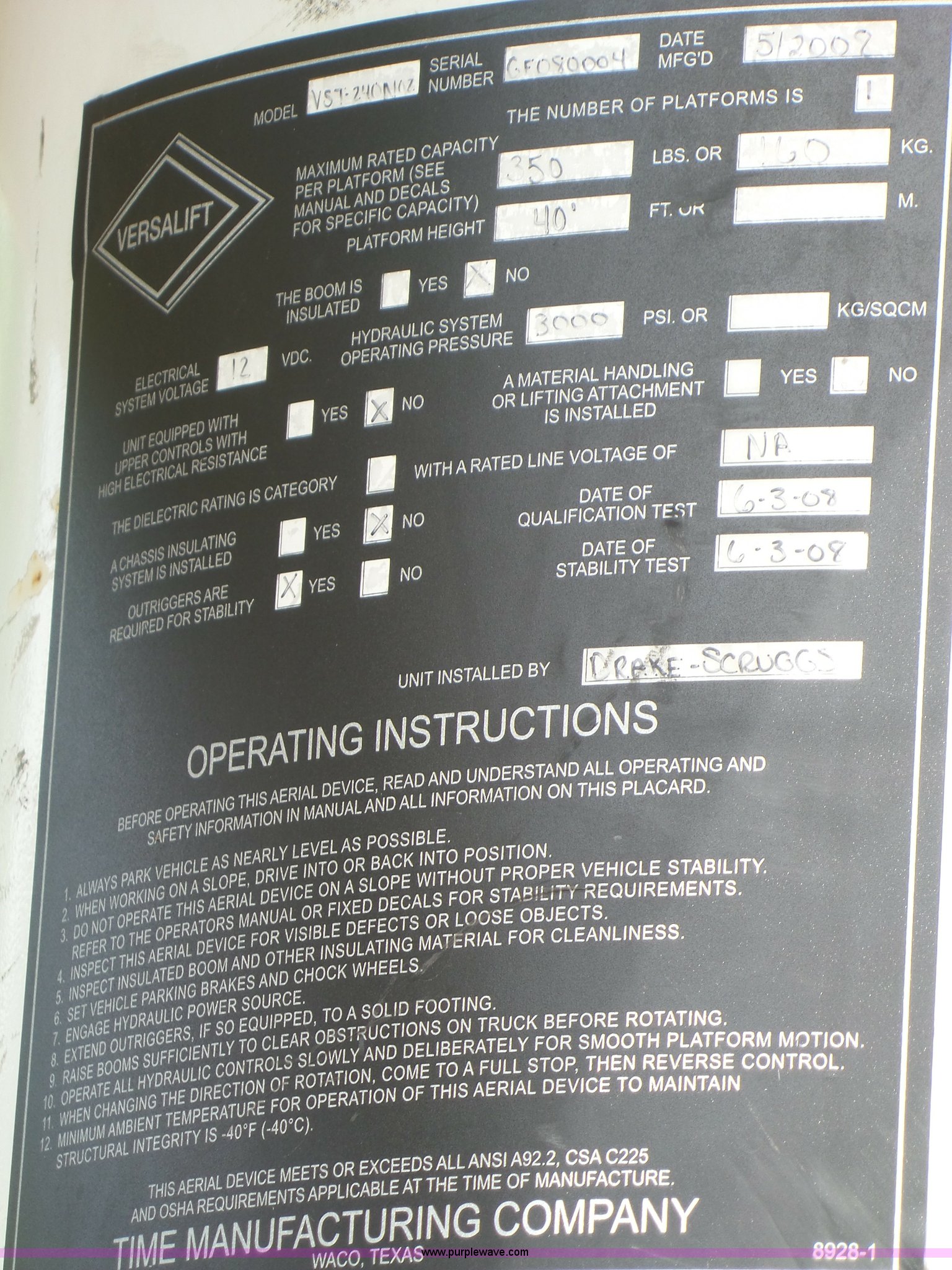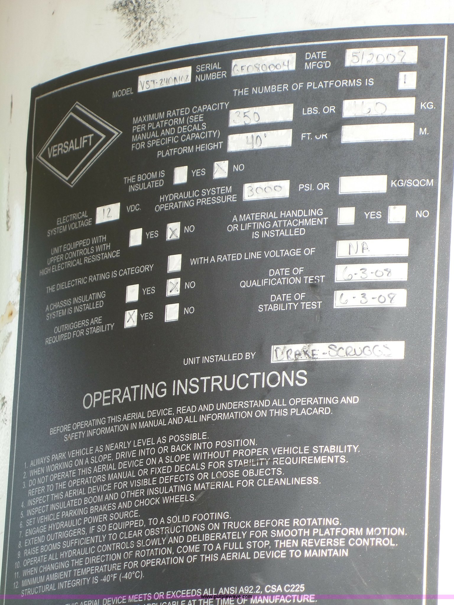 - Versalift VST-240NGZ boom