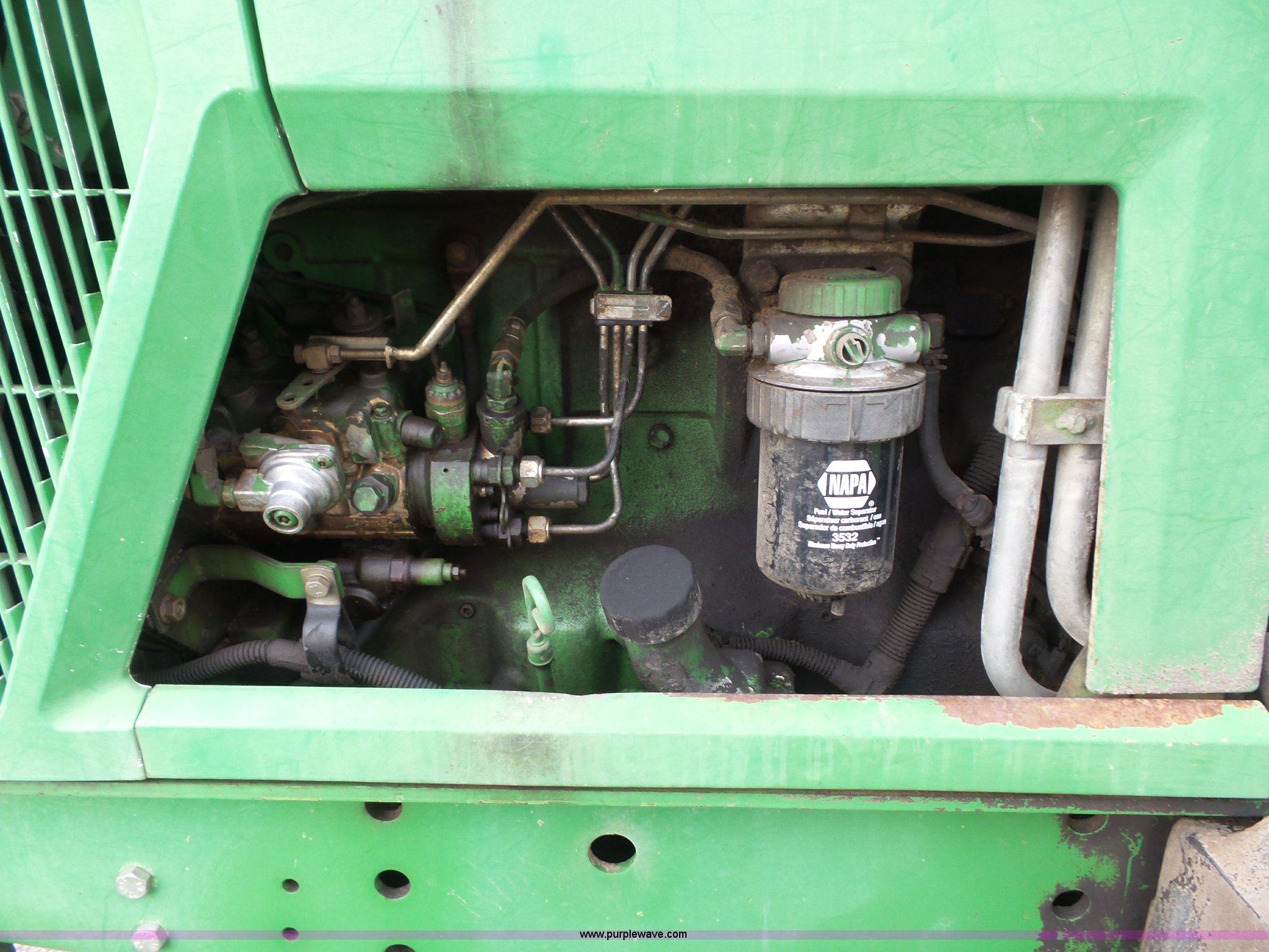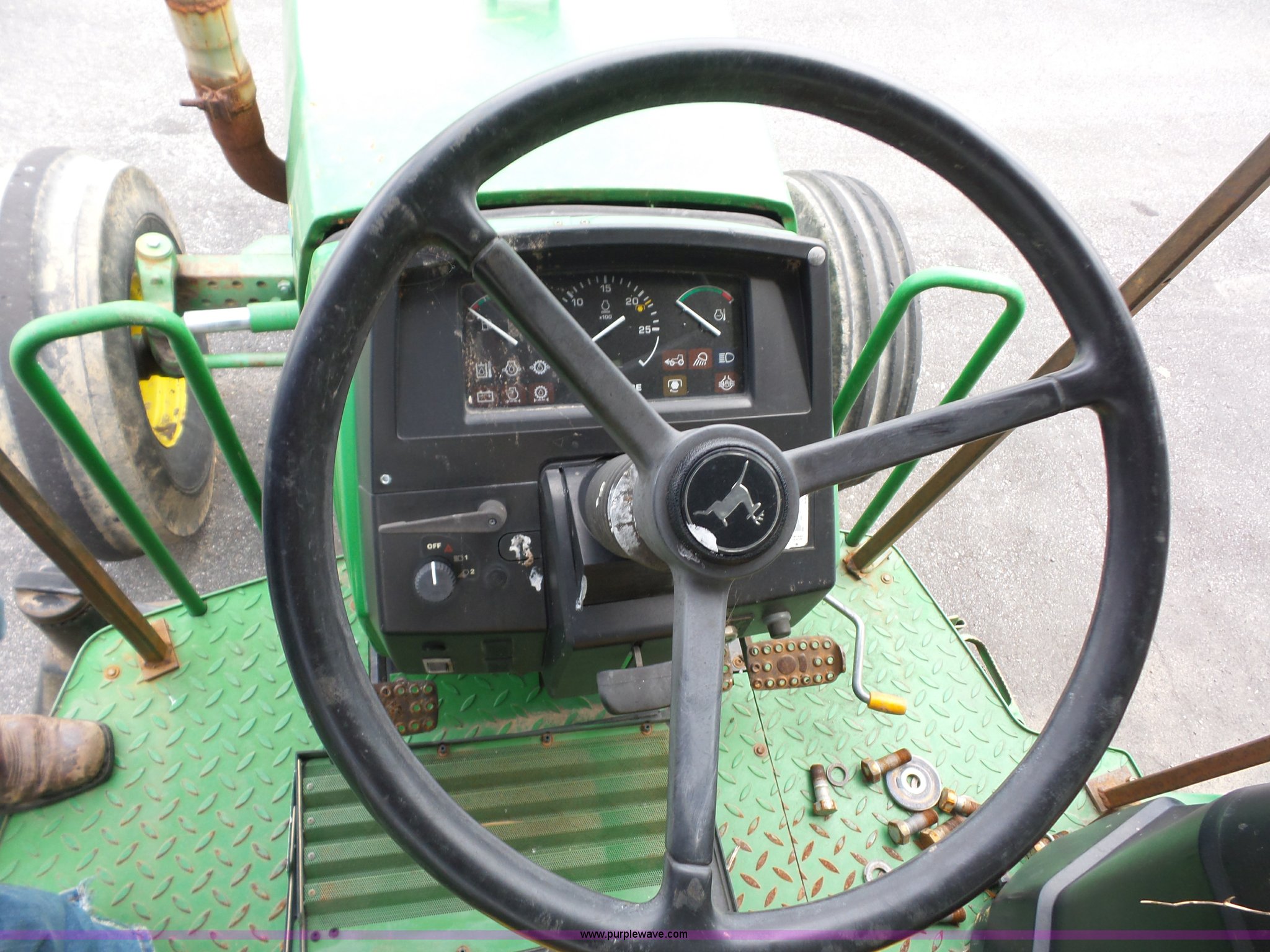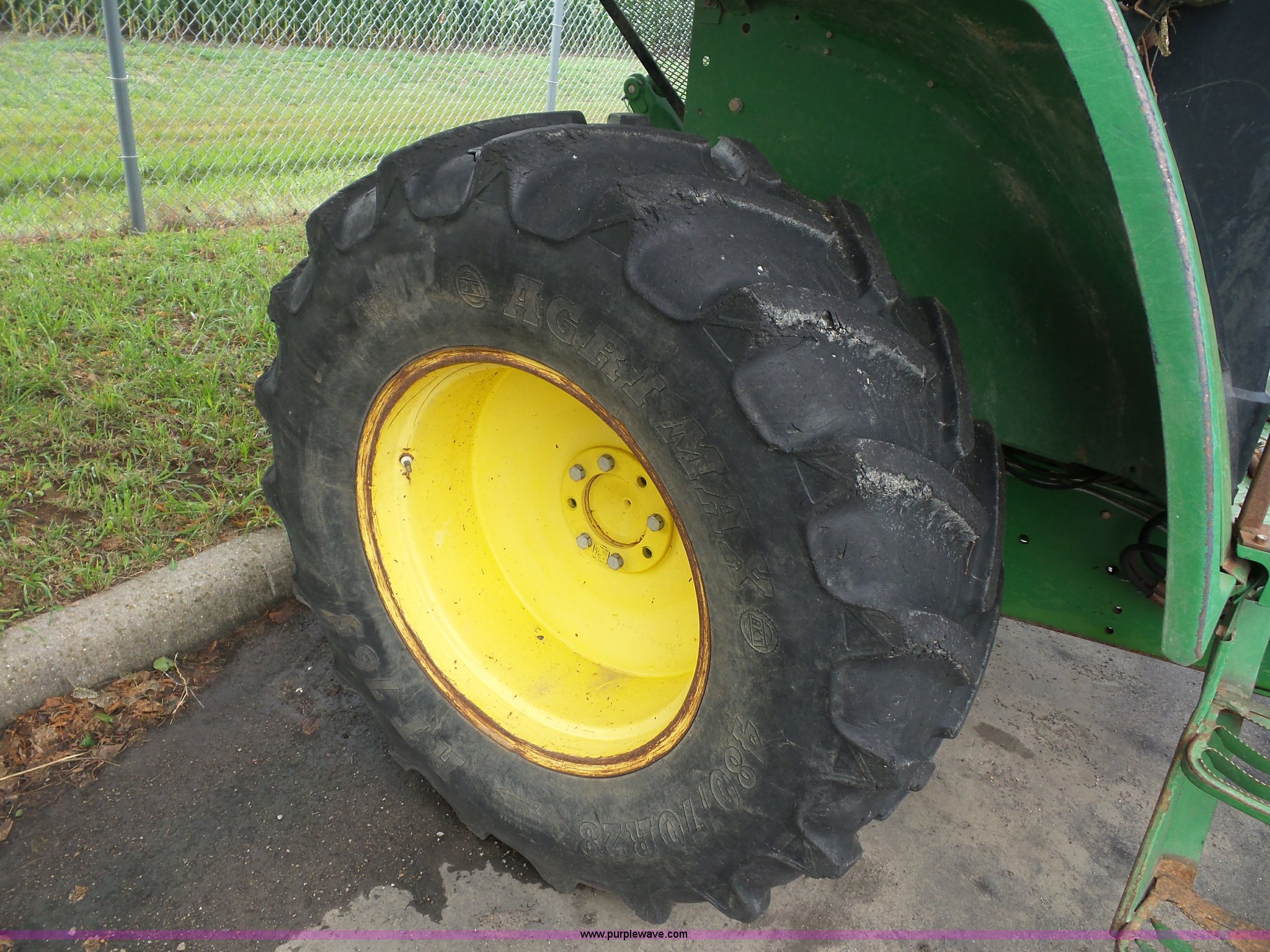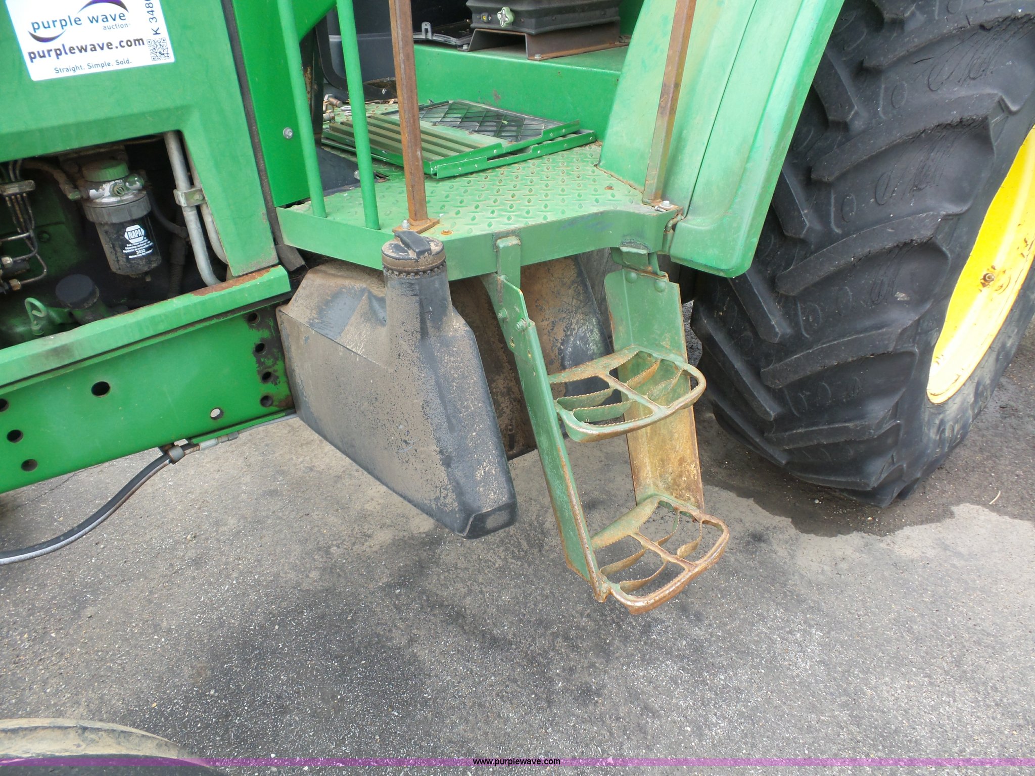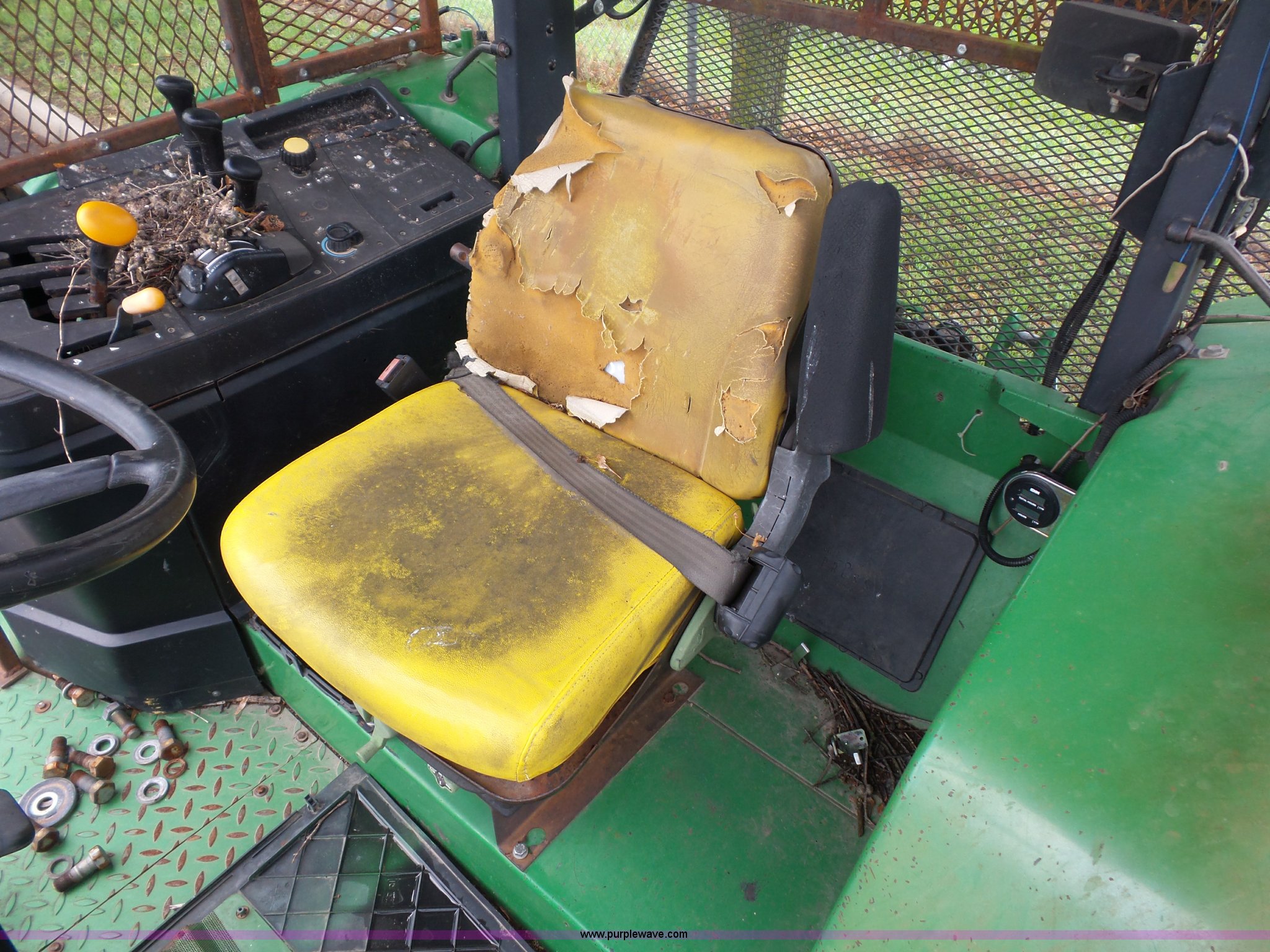 Purple Wave is selling a used Tractor in Missouri. This item is a John Deere 6410 tractor with the following: 409 hours on meter, John Deere four cylinder diesel engine, Manual transmission, 12F-4R gears, Tilt steering wheel, Suspension seat, Shade, Seven pin outlet, 540 PTO, (3) rear hydraulic remote sets, (5) suitcase weights, 11.00-16SL front tires, 480/70R28 rear tires, Engine knocks, Possible engine issues, looses coolant, Hydraulic oil leak, PTO solenoid missing, Serial L06420H302722, MODOT ID 5817