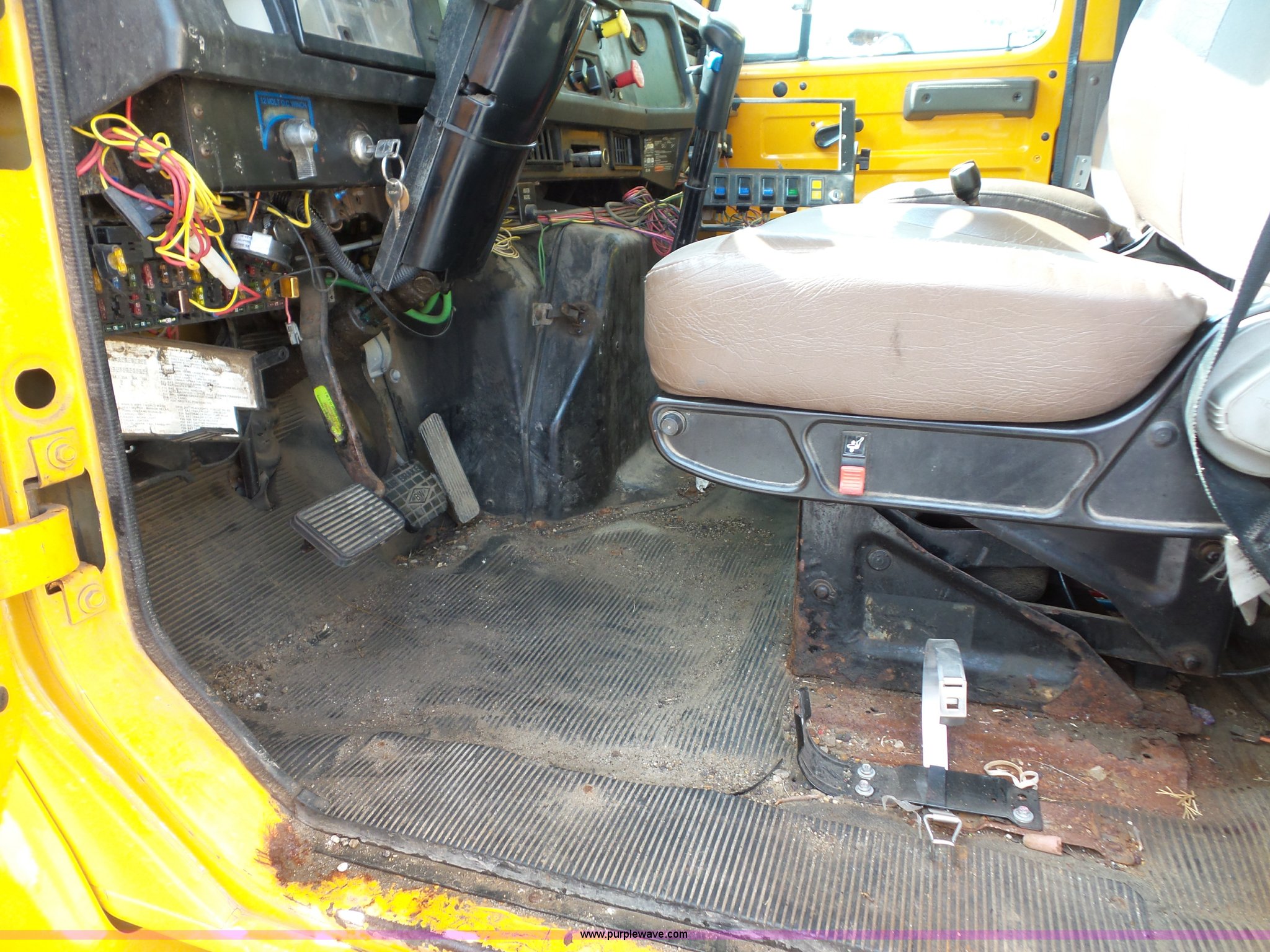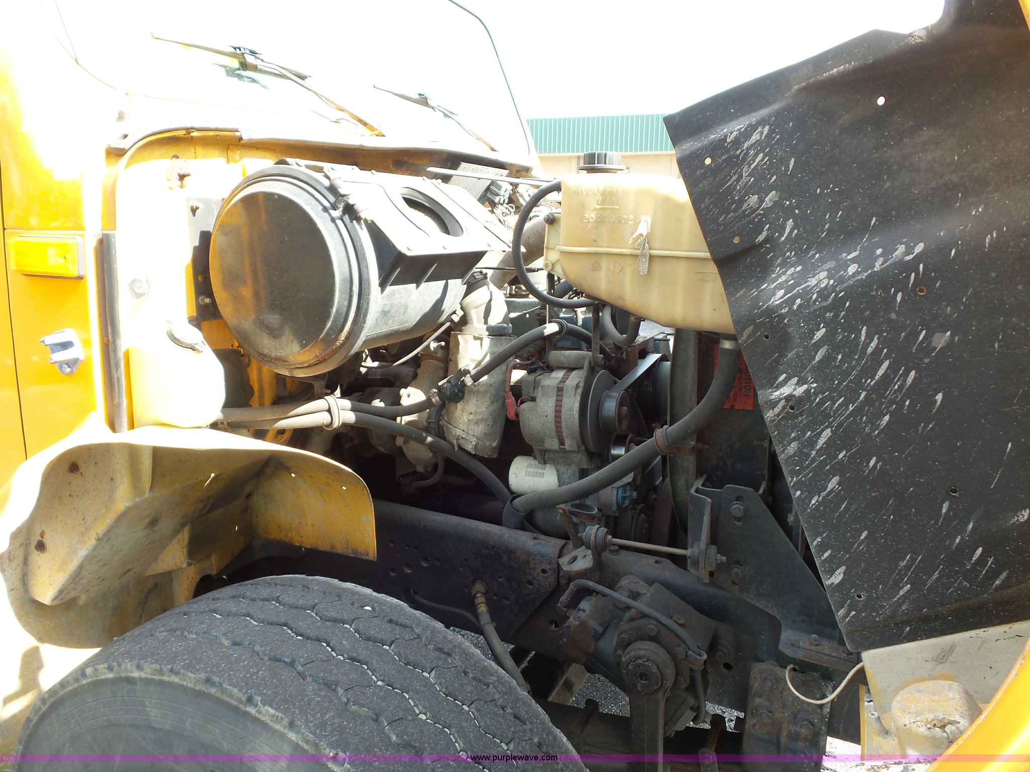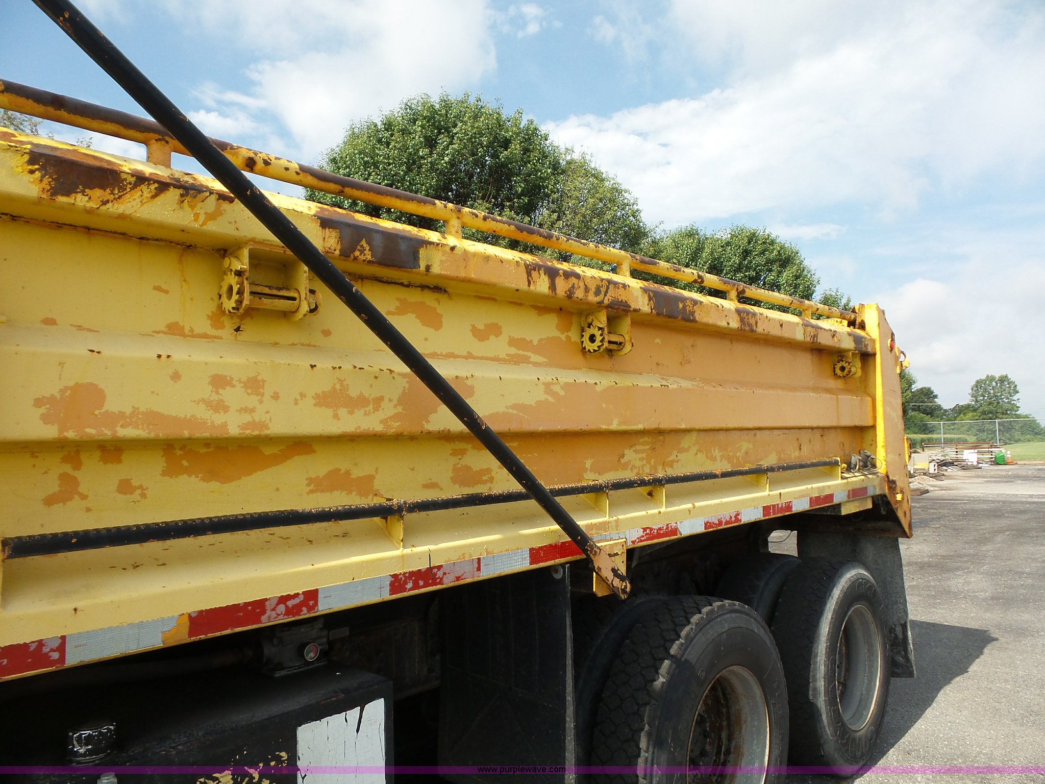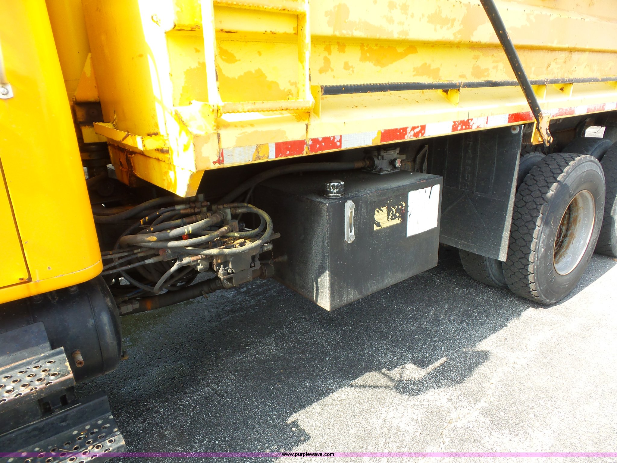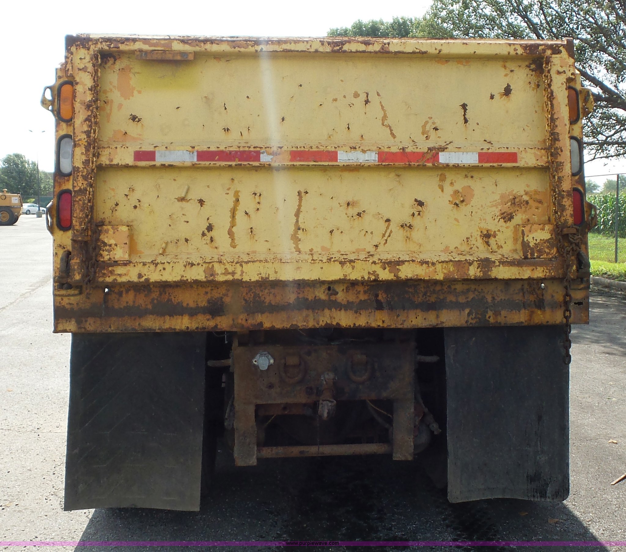 Purple Wave is selling a used Construction Dump Truck in Missouri. This item is a 2000 International F4900 dump truck with the following: 195,745 miles on odometer, 9,733 hours on meter, International DT530 8.7L L6 turbo diesel engine, Eaton Fuller eight speed manual transmission, Inter-axle differential lock, AC and heat, AM/FM, Front mount PTO, Steel dump bed, 16'L x 87"W, 36" side height, Single ram hoist, Air operated end gate, Rollover tarp, Toolboxes, Pintle hitch, 206" wheelbase, Walking beam suspension, Air brakes, 315/80R22.5 front tires, 11R22.5 rear tires, MODOT ID 6280