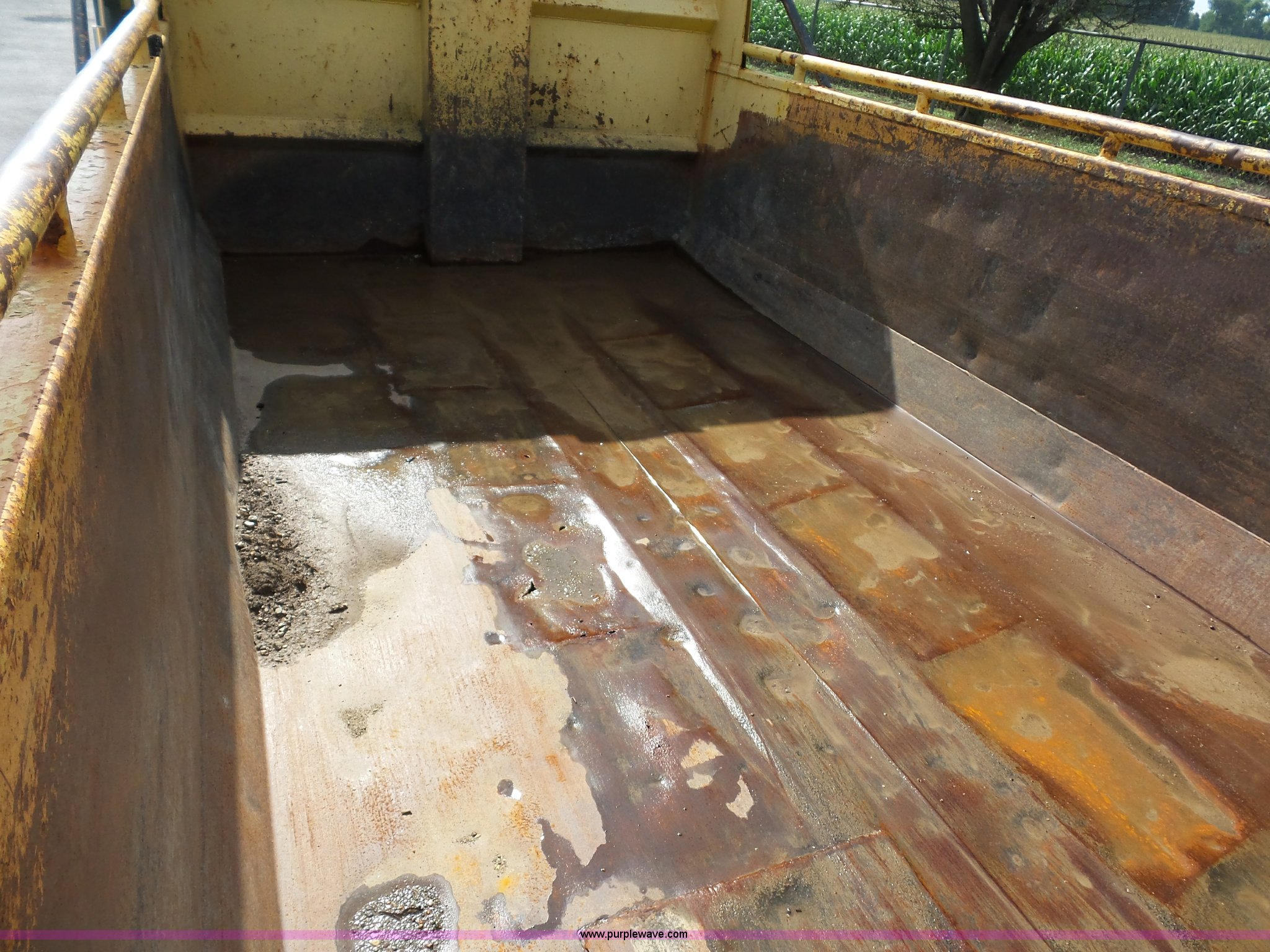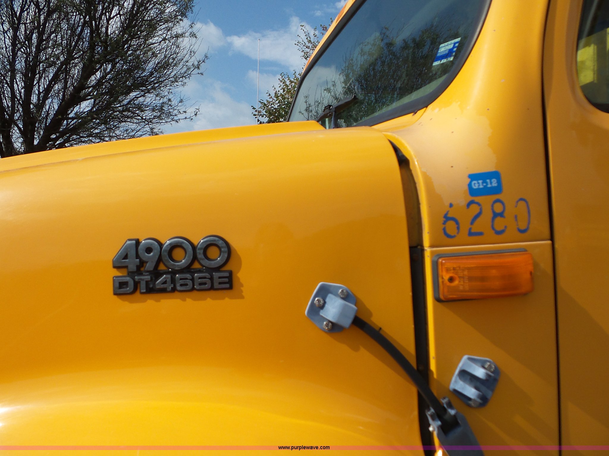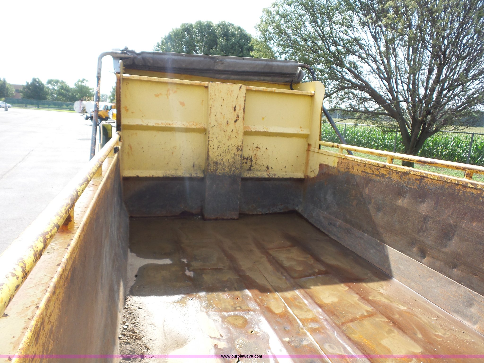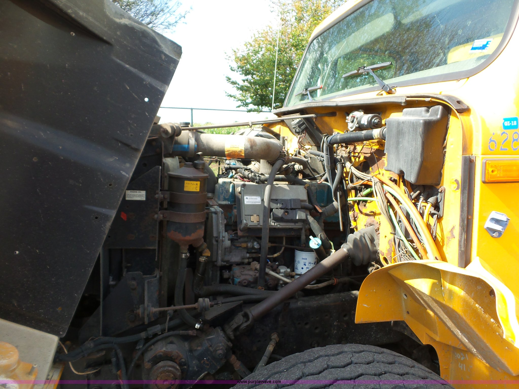 Purple Wave is selling a used Construction Dump Truck in Missouri. This item is a 2000 International F4900 dump truck with the following: 195,745 miles on odometer, 9,733 hours on meter, International DT530 8.7L L6 turbo diesel engine, Eaton Fuller eight speed manual transmission, Inter-axle differential lock, AC and heat, AM/FM, Front mount PTO, Steel dump bed, 16'L x 87"W, 36" side height, Single ram hoist, Air operated end gate, Rollover tarp, Toolboxes, Pintle hitch, 206" wheelbase, Walking beam suspension, Air brakes, 315/80R22.5 front tires, 11R22.5 rear tires, MODOT ID 6280