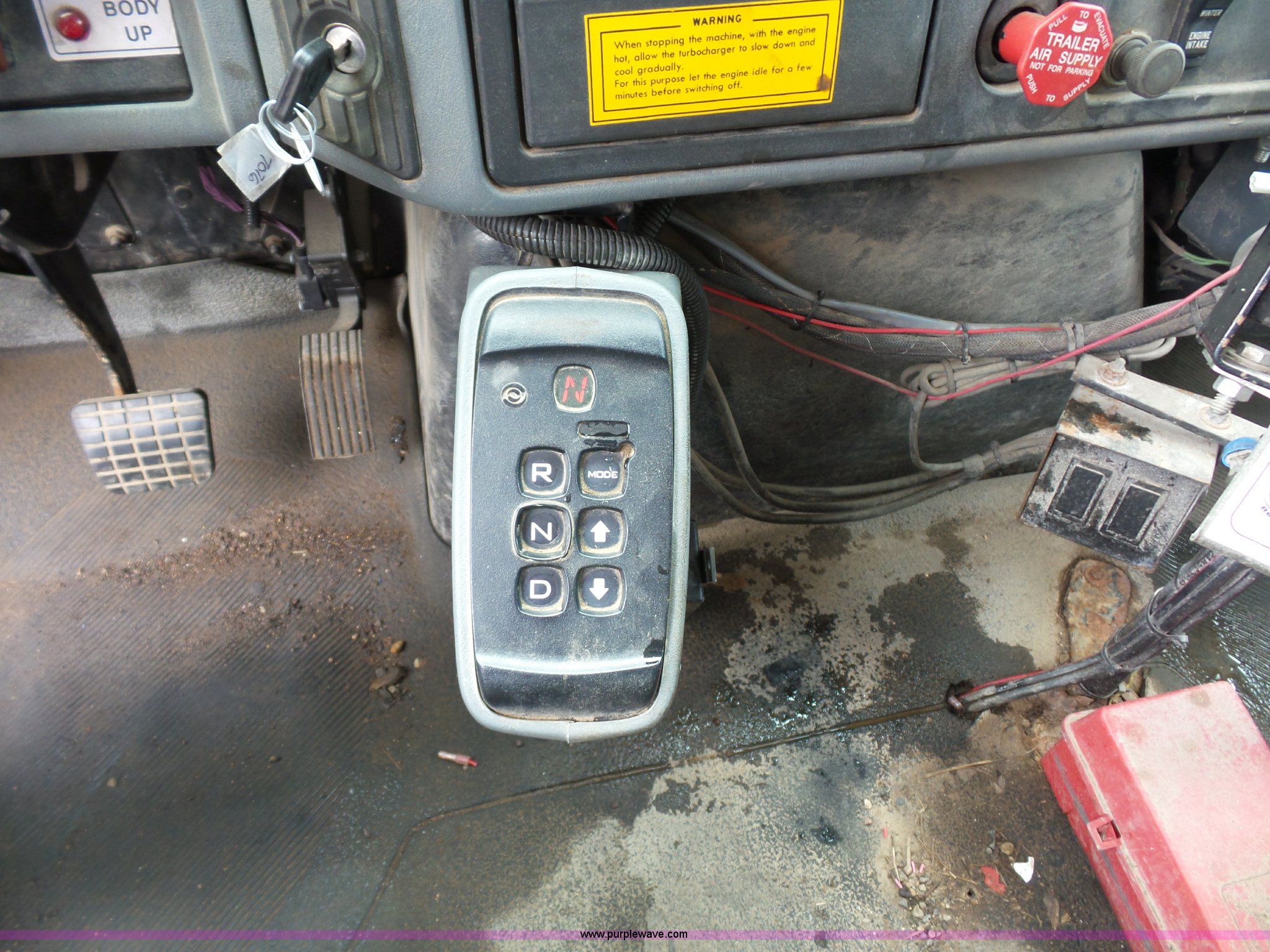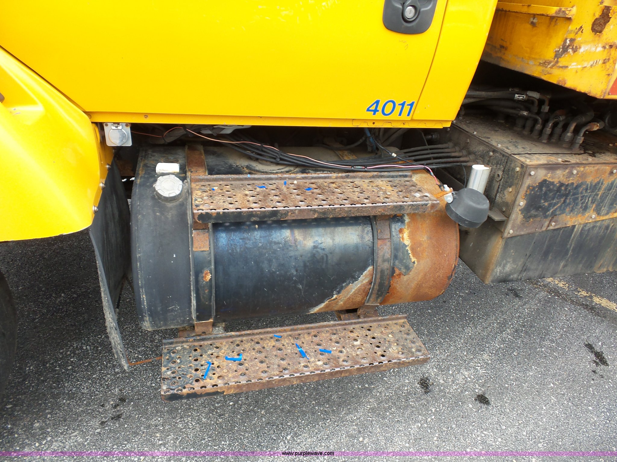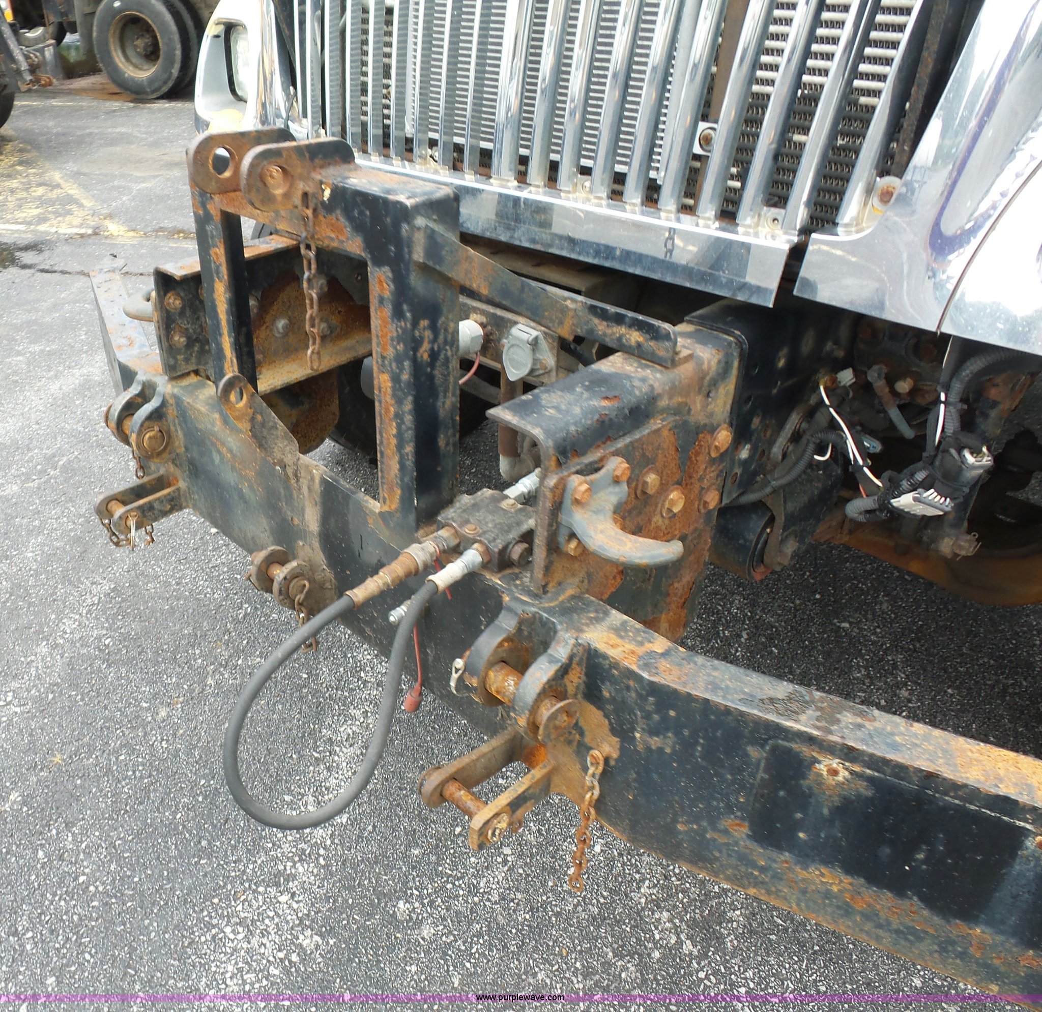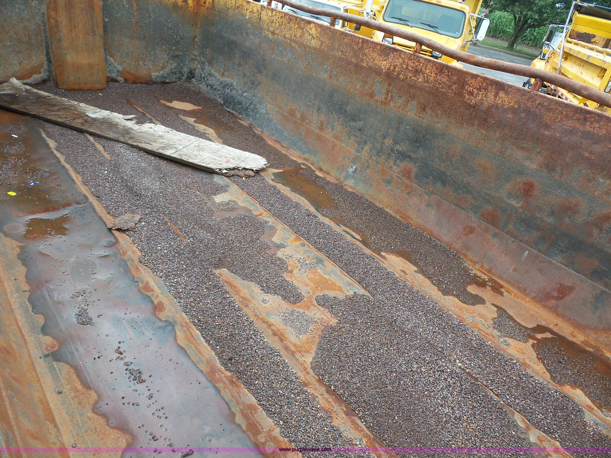 Purple Wave is selling a used Construction Dump Truck in Missouri. This item is a 2003 International 7400 dump truck with the following: 178,338 miles on odometer, 10,808 hours on meter, International DT530 8.7L L6 turbo diesel engine, Automatic transmission, Tandem axle, AC and heat, AM/FM, Power windows, Power mirrors, Air suspension seat, Block heater, Wheeler steel dump bed, 16'L x 87"W, 36" side height, Single ram hoist, Air operated end gate, Rollover tarp, Pintle hitch, Trailer wiring, Double frame, 213" wheelbase, Walking beam suspension, Air brakes, 315/80R22.5 front tires, 11R22.5 rear tires, Gvwr 58,000 lbs, FAWR 18,000 lbs, IAWR 20,000 lbs, RAWR 20,000 lbs, Possible electrical issues, MODOT ID 3096