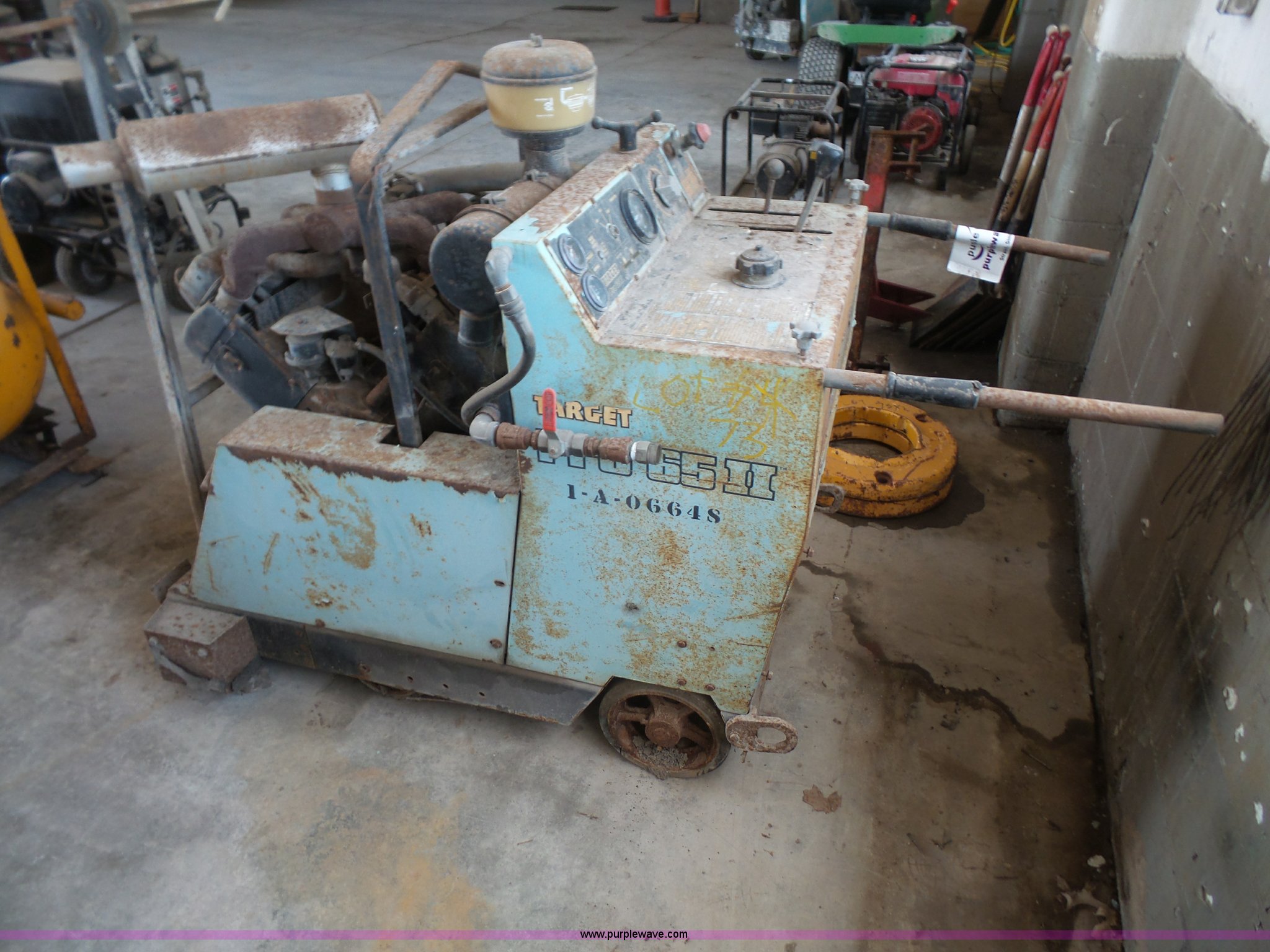 Purple Wave is selling a used Concrete Equip. or Acces. in Missouri. This item is a Target Pro 65II concrete saw with the following: 1,085 hours on meter, Wisconsin V465D1 four cylinder gas engine, 38" blade capacity, Unknown operating condition, has not been used in several years, MODOT ID 73