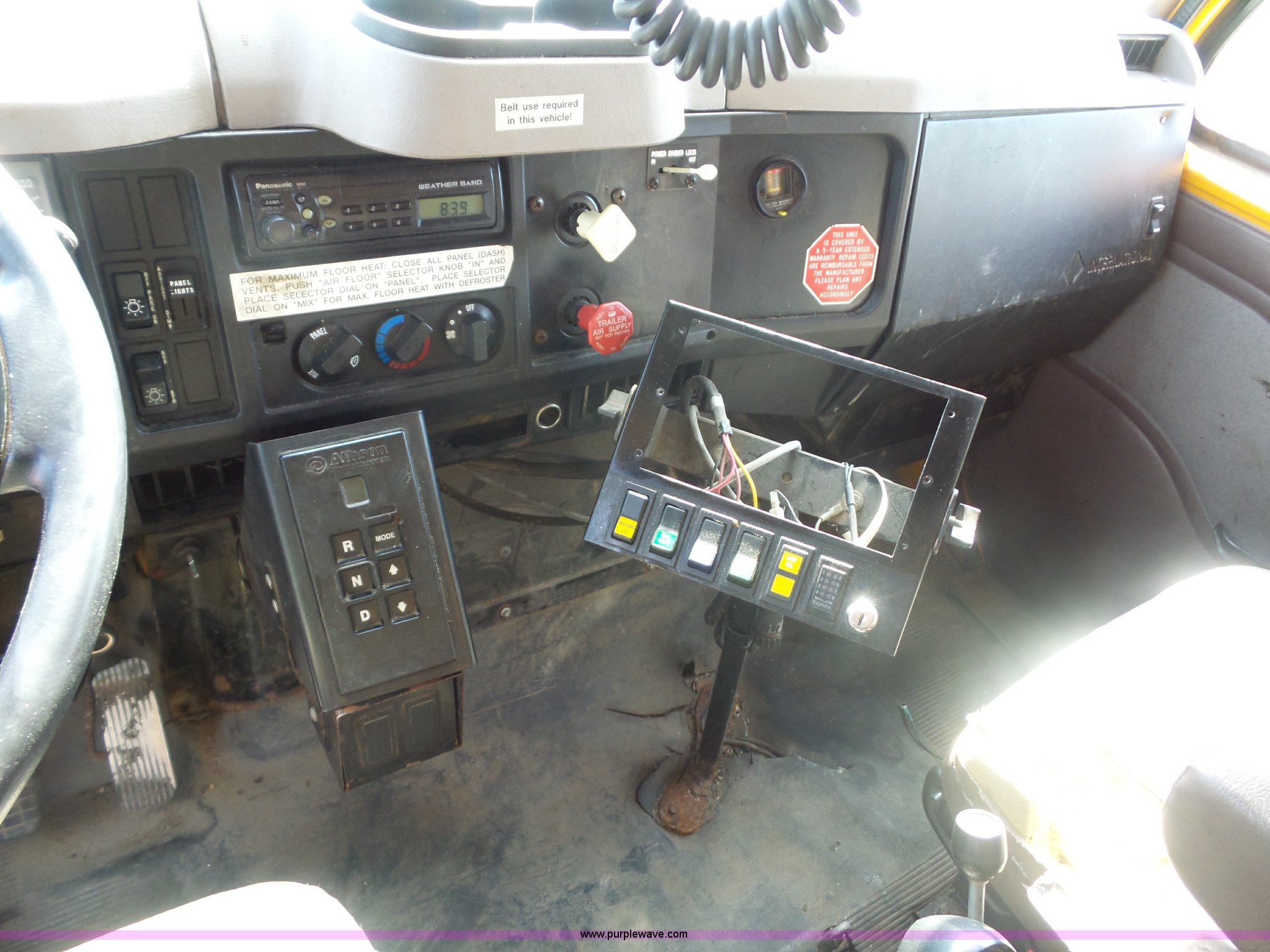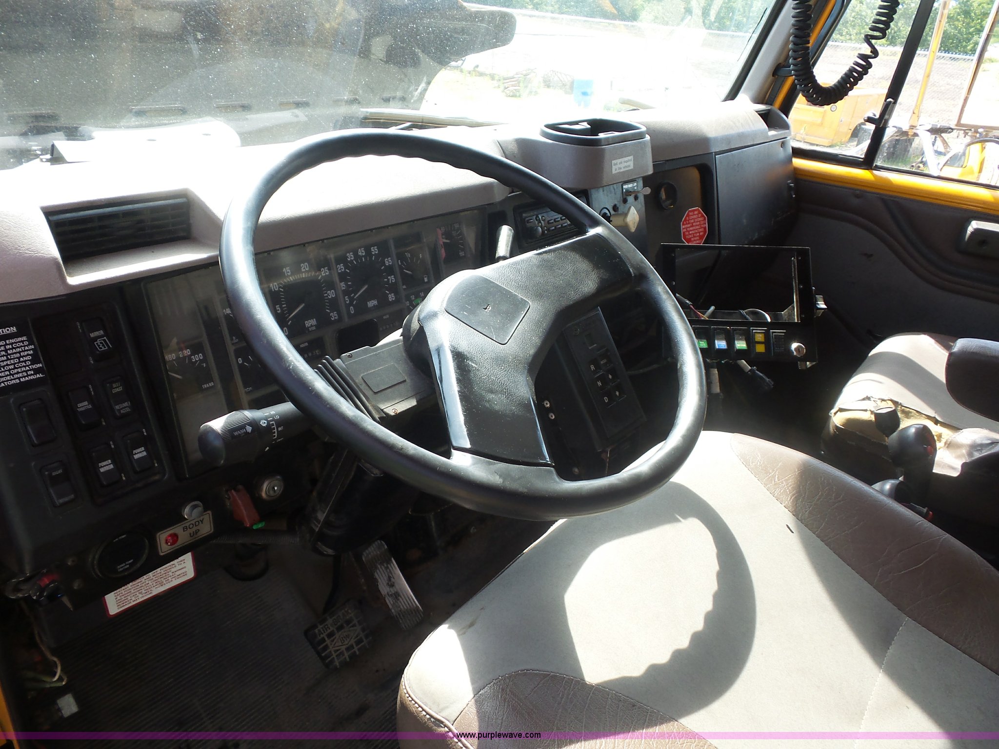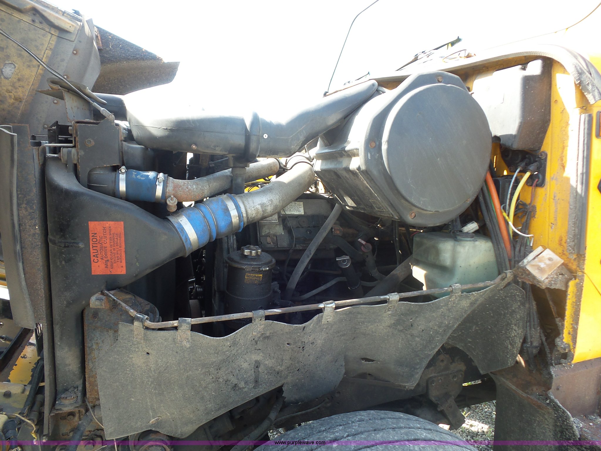 Purple Wave is selling a used Construction Dump Truck in Missouri. This item is a 2002 International F2554 dump truck with the following: 169,933 miles on odometer, 8,883 hours on meter, International DT530 8.7L L6 turbo diesel engine, Allison automatic transmission, Heat, Cruise, Power windows, Heated mirrors, Air suspension seat, Front mounted PTO, 16'L x 8'W steel dump bed, 3'H sides, Rollover tarp, Air operated end gate, Single ram hoist, Walking beam suspension, Air brakes, 216" wheelbase, 315/80R22.5 front tires, 11R22.5 rear tires, Two-way radio not included, Passenger cab mount missing, Possible engine issues, engine blow-by, MODOT ID 6762