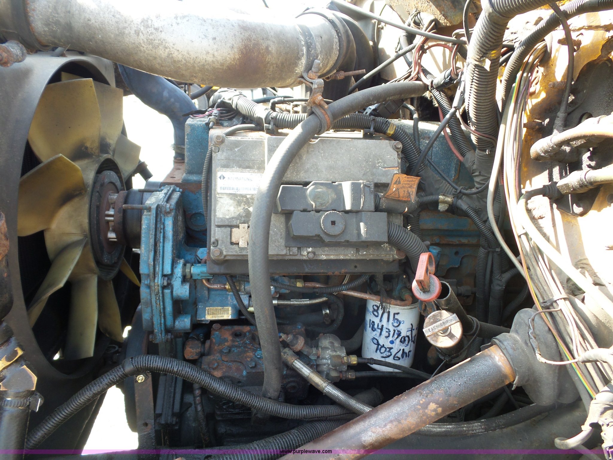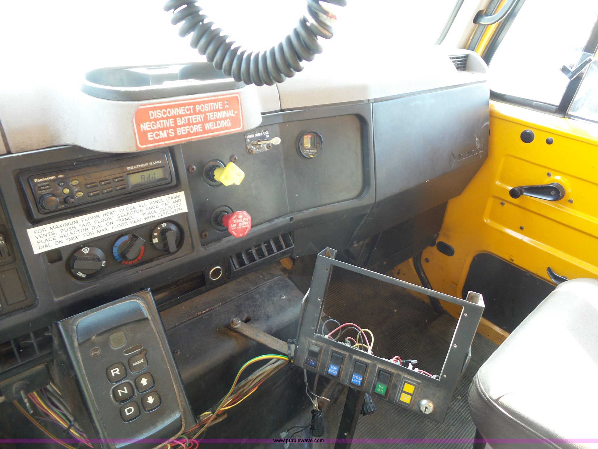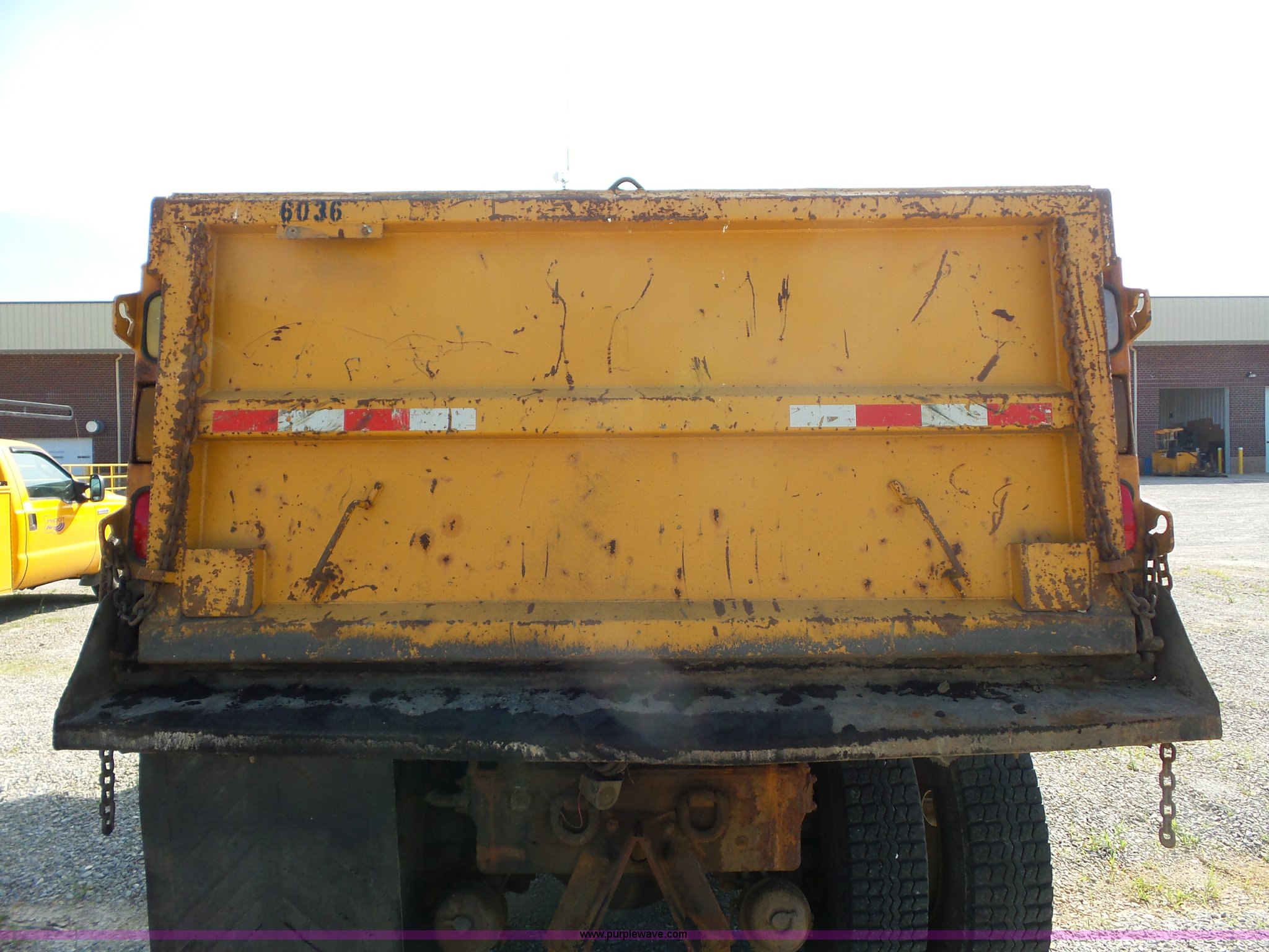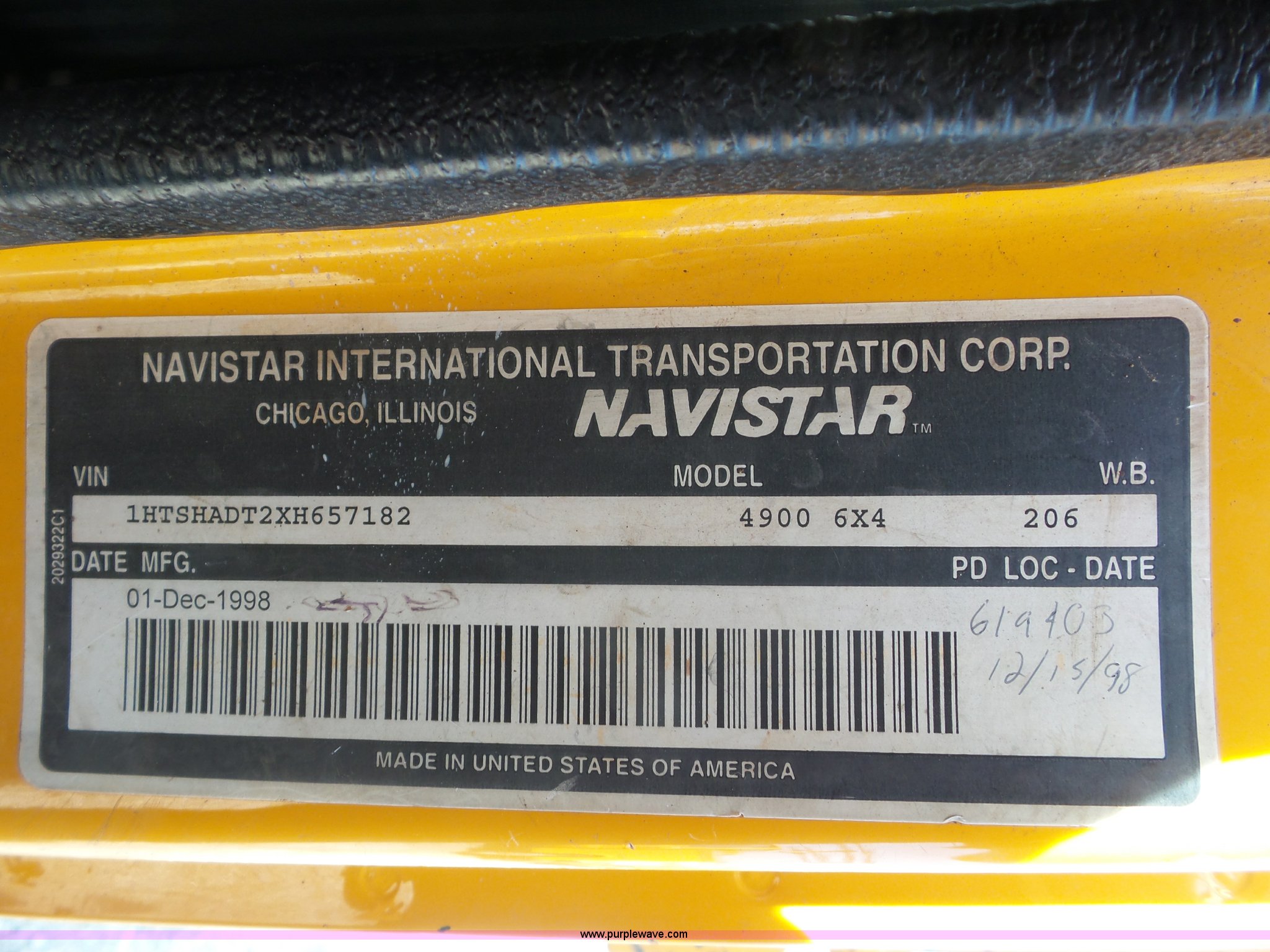 Purple Wave is selling a used Construction Dump Truck in Missouri. This item is a 1999 International 4900 dump truck with the following: 186,394 miles on odometer, 9,145 hours on meter, International DT530 8.7L L6 turbo diesel engine, Allison automatic transmission, Heat, Cruise, AM/FM, Heated mirrors, Air suspension seat, Front mounted PTO, 16'L x 8'W steel dump bed, 3' side height, Rollover tarp, Air operated end gate, Single ram hoist, Spring over walking beam suspension, Air brakes, 206" wheelbase, 315/80R22.5 front tires, 11R22.5 rear tires, Rust, Walking beam bushings need replaced, MODOT ID 6036