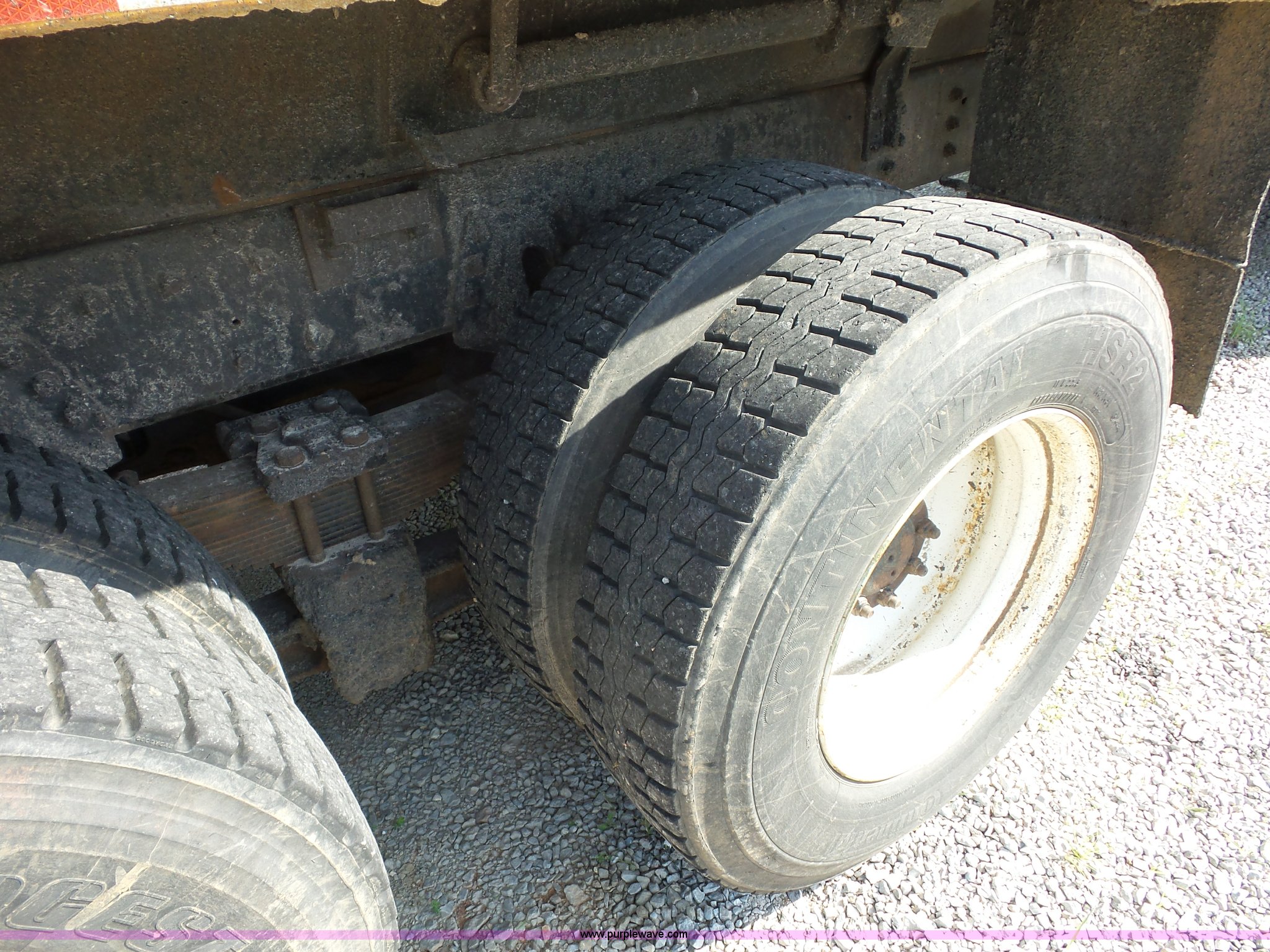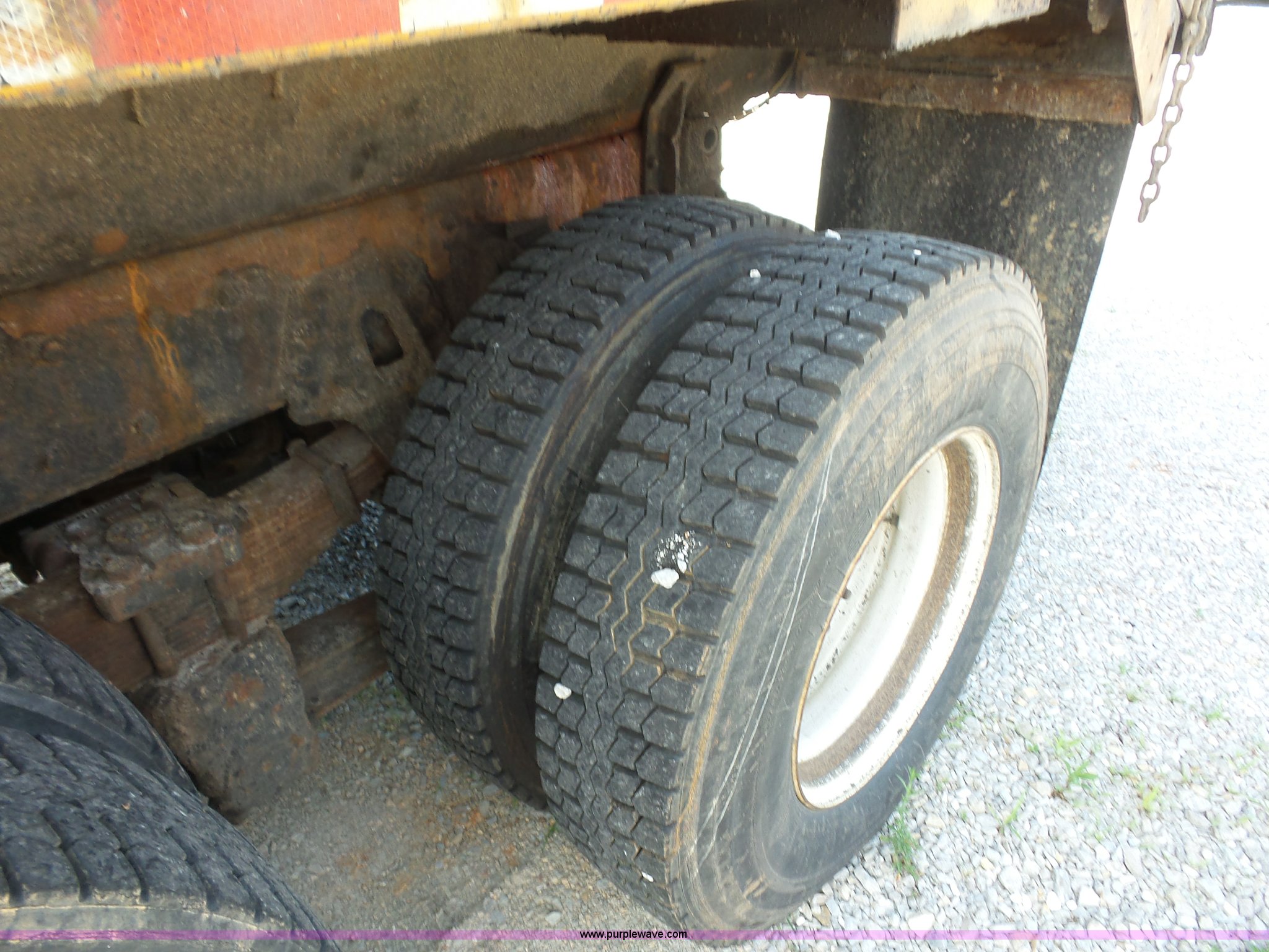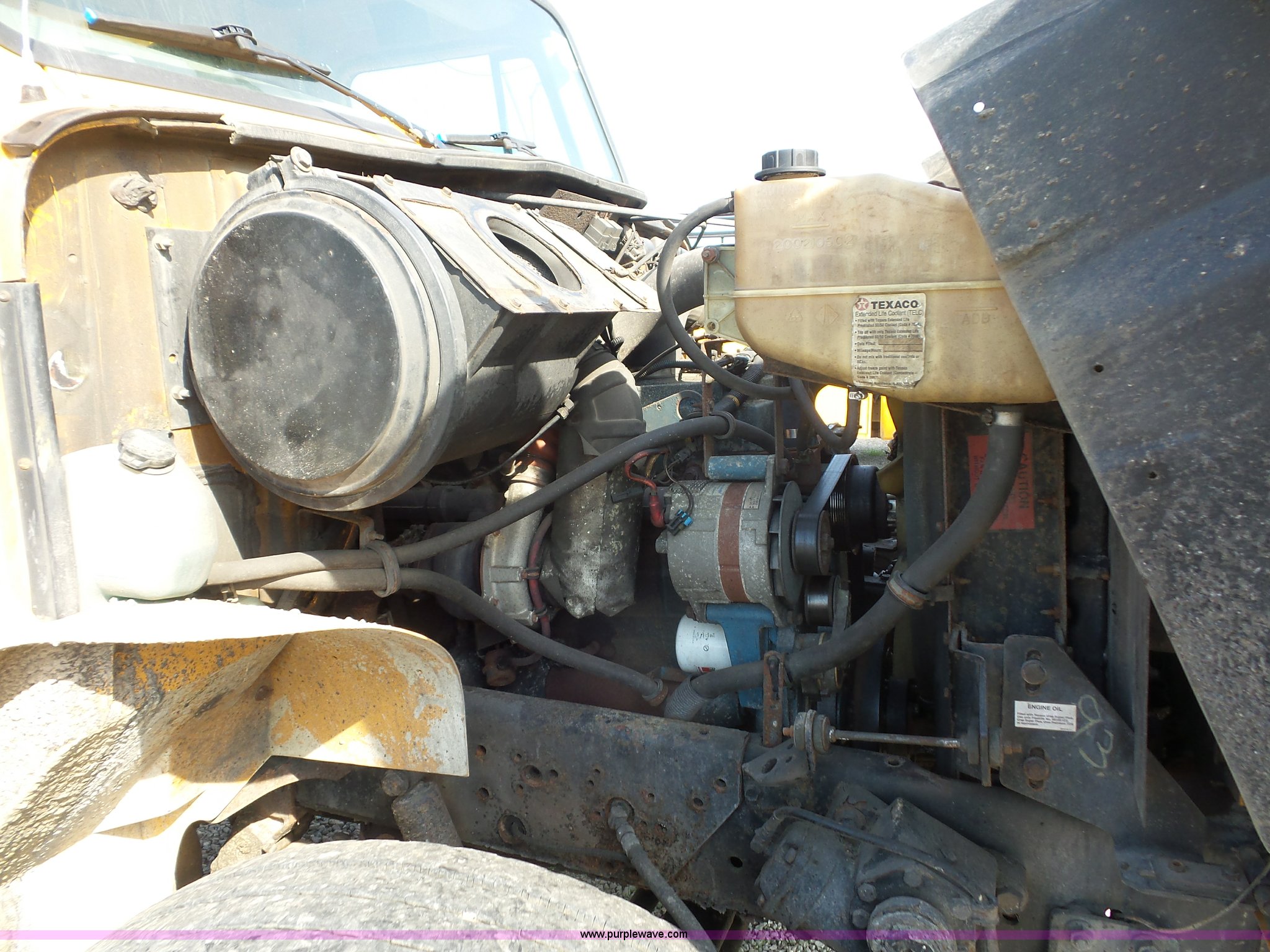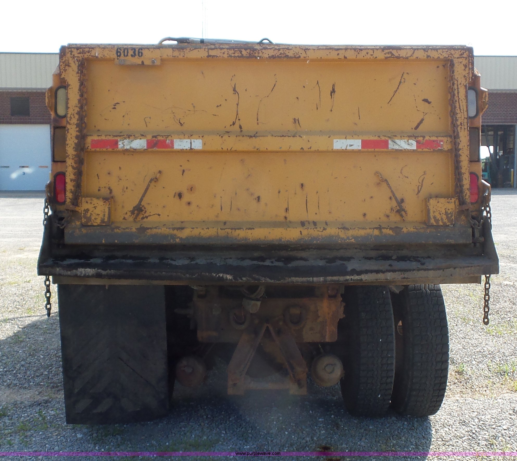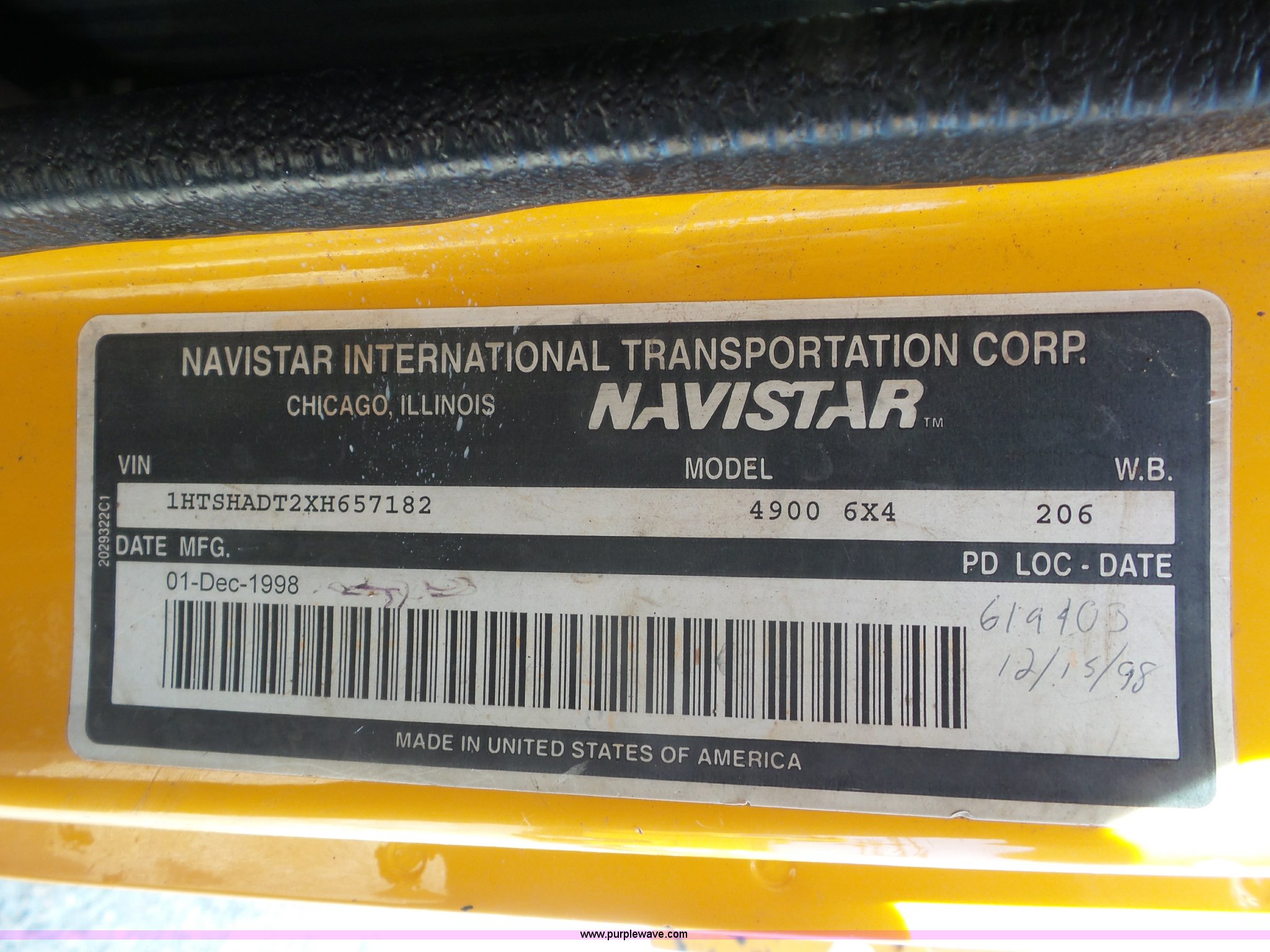 Purple Wave is selling a used Construction Dump Truck in Missouri. This item is a 1999 International 4900 dump truck with the following: 186,394 miles on odometer, 9,145 hours on meter, International DT530 8.7L L6 turbo diesel engine, Allison automatic transmission, Heat, Cruise, AM/FM, Heated mirrors, Air suspension seat, Front mounted PTO, 16'L x 8'W steel dump bed, 3' side height, Rollover tarp, Air operated end gate, Single ram hoist, Spring over walking beam suspension, Air brakes, 206" wheelbase, 315/80R22.5 front tires, 11R22.5 rear tires, Rust, Walking beam bushings need replaced, MODOT ID 6036