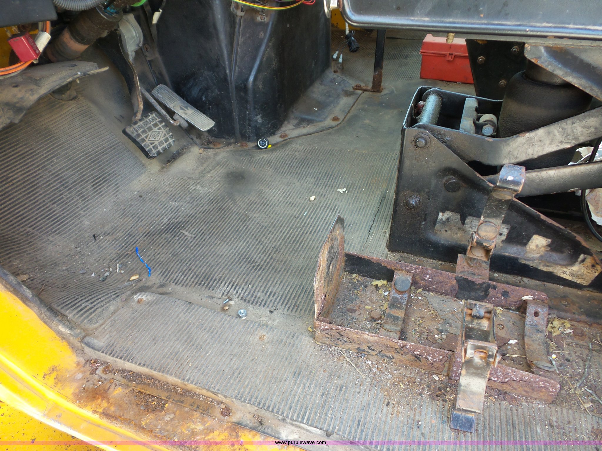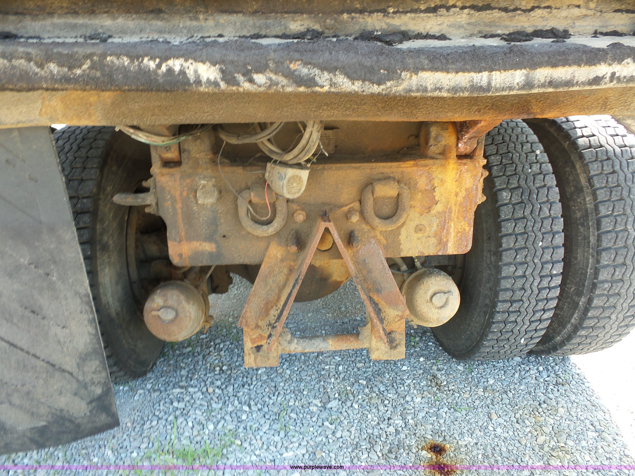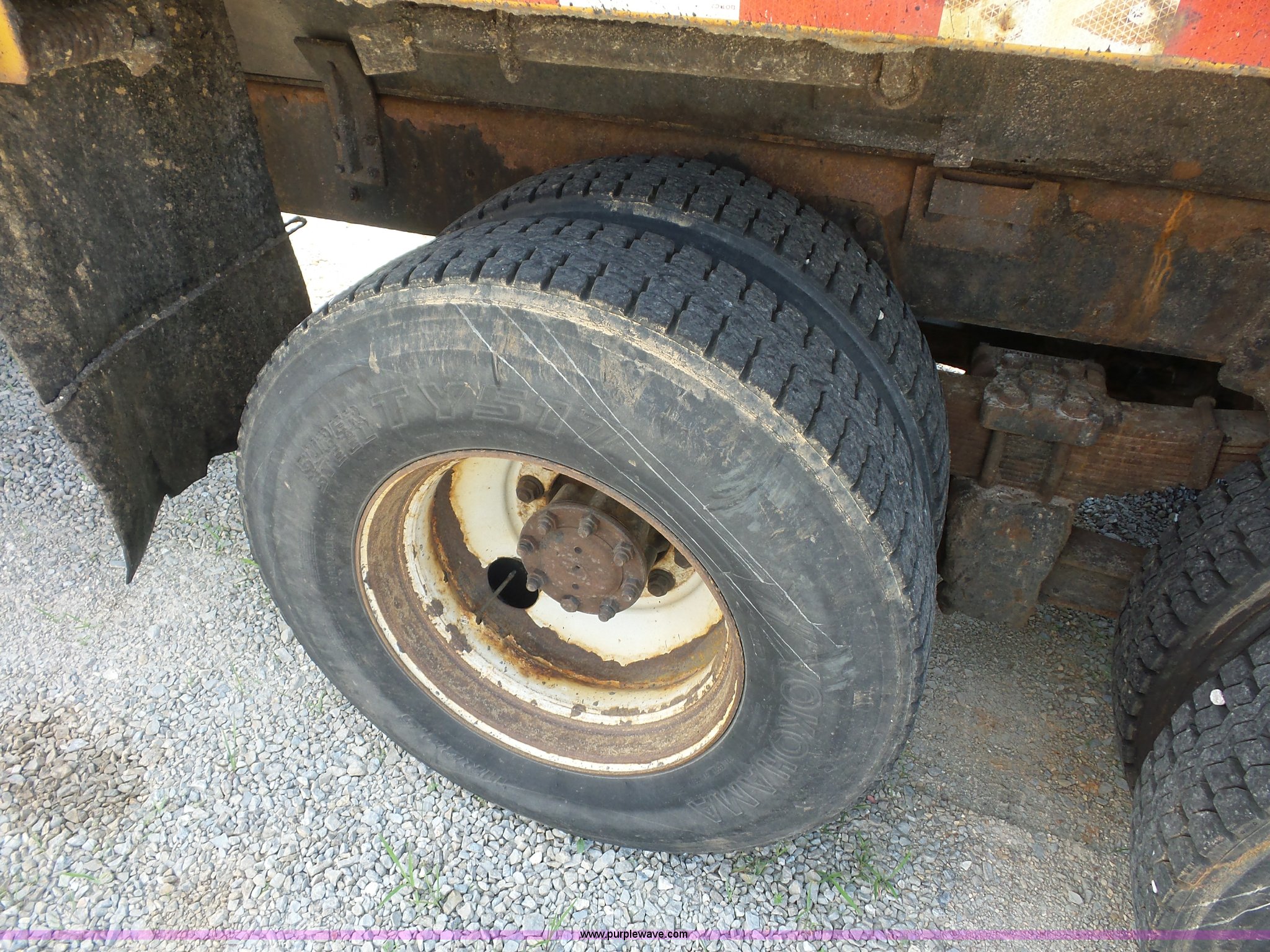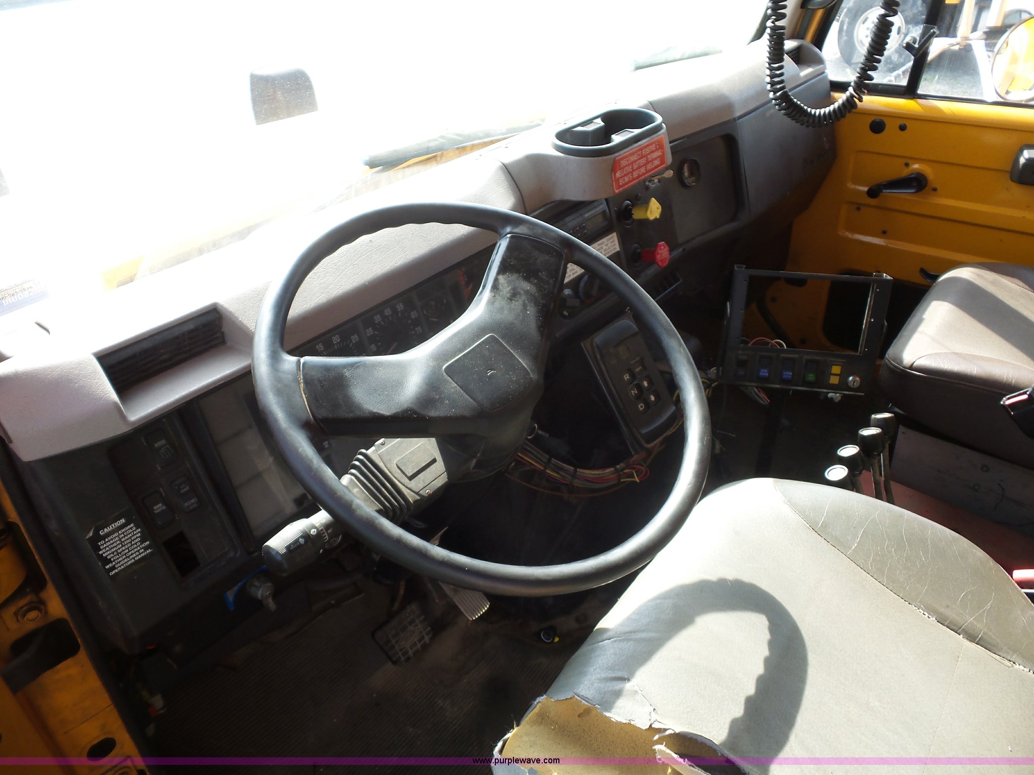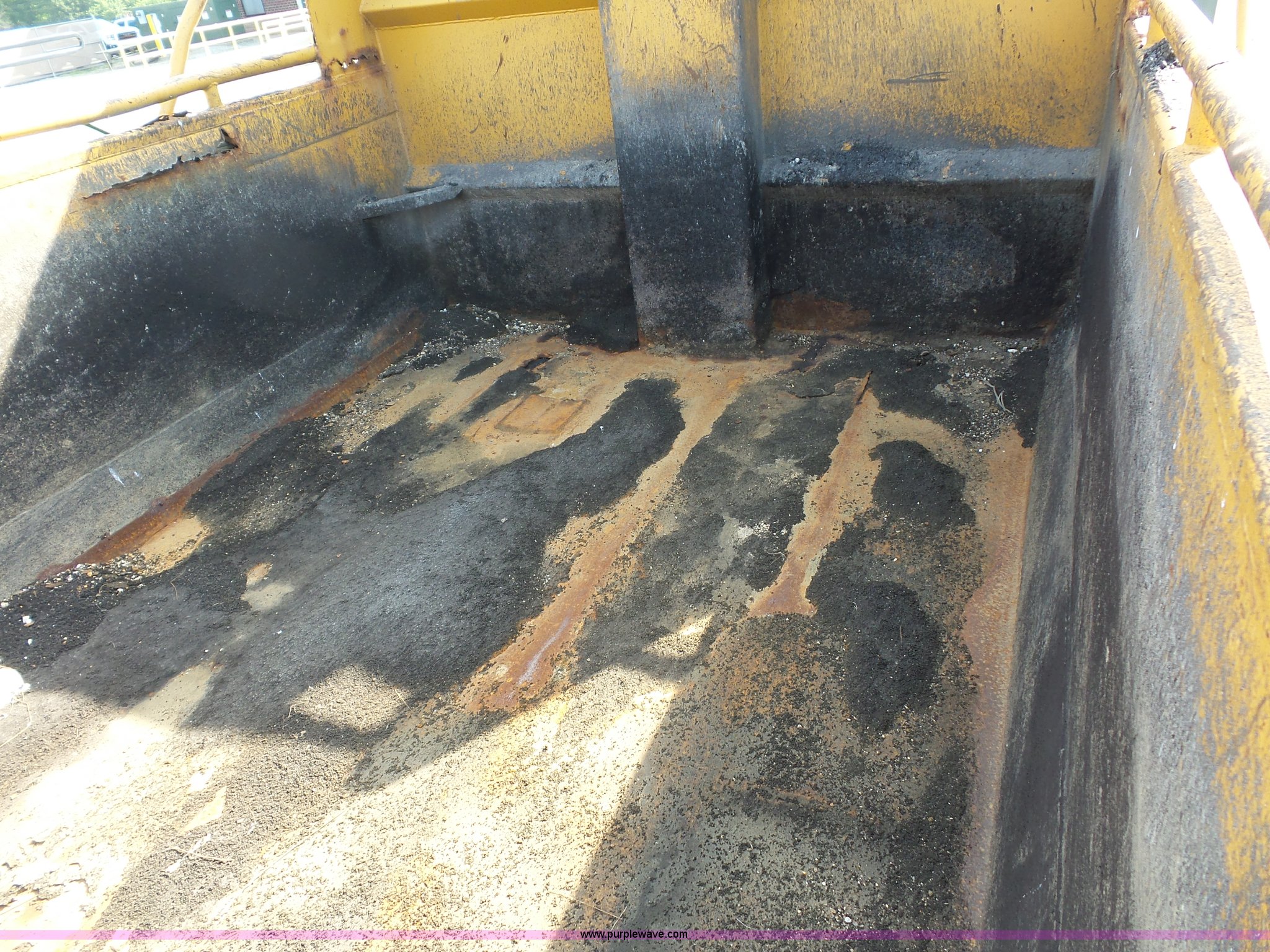 Purple Wave is selling a used Construction Dump Truck in Missouri. This item is a 1999 International 4900 dump truck with the following: 186,394 miles on odometer, 9,145 hours on meter, International DT530 8.7L L6 turbo diesel engine, Allison automatic transmission, Heat, Cruise, AM/FM, Heated mirrors, Air suspension seat, Front mounted PTO, 16'L x 8'W steel dump bed, 3' side height, Rollover tarp, Air operated end gate, Single ram hoist, Spring over walking beam suspension, Air brakes, 206" wheelbase, 315/80R22.5 front tires, 11R22.5 rear tires, Rust, Walking beam bushings need replaced, MODOT ID 6036