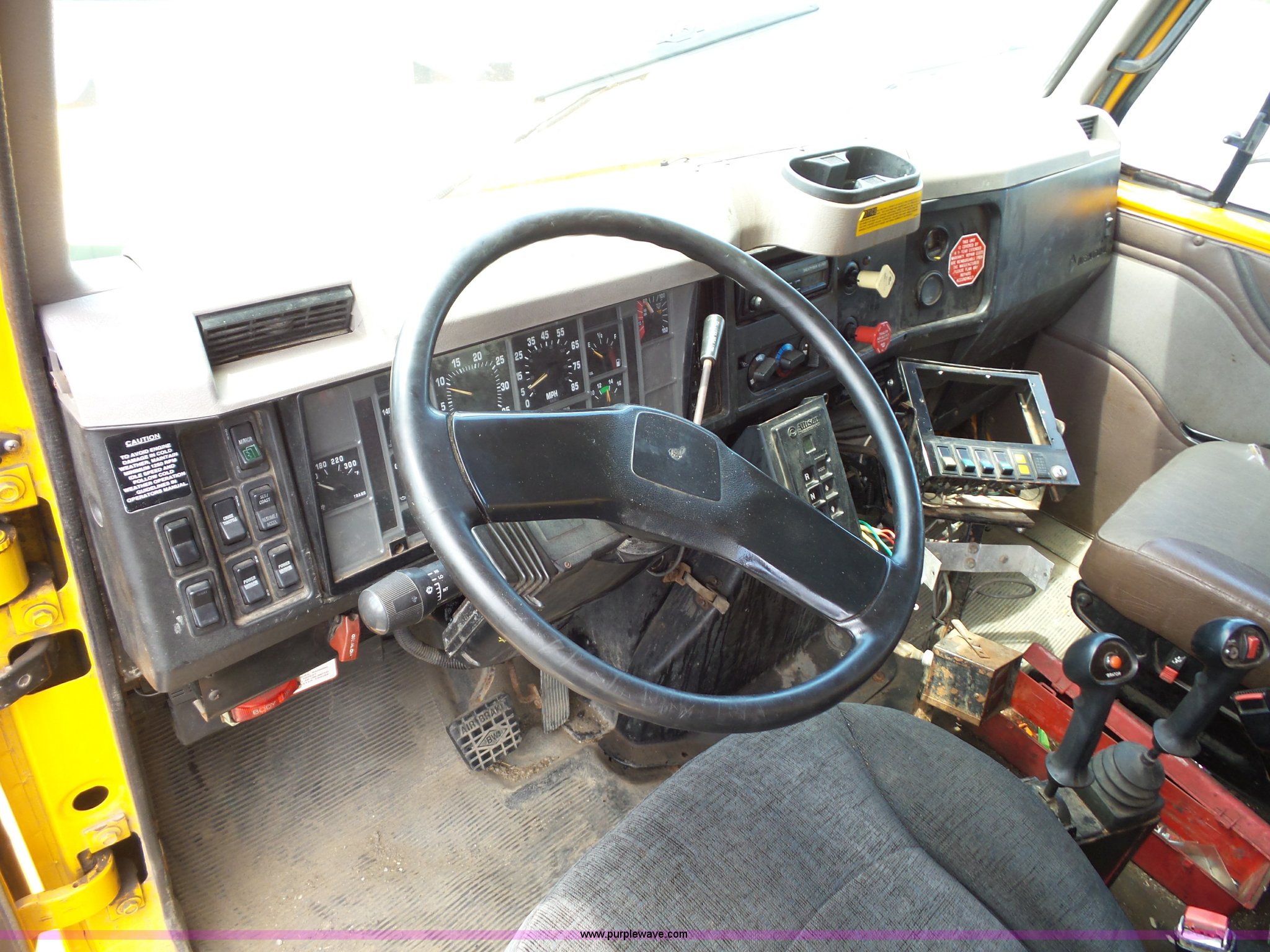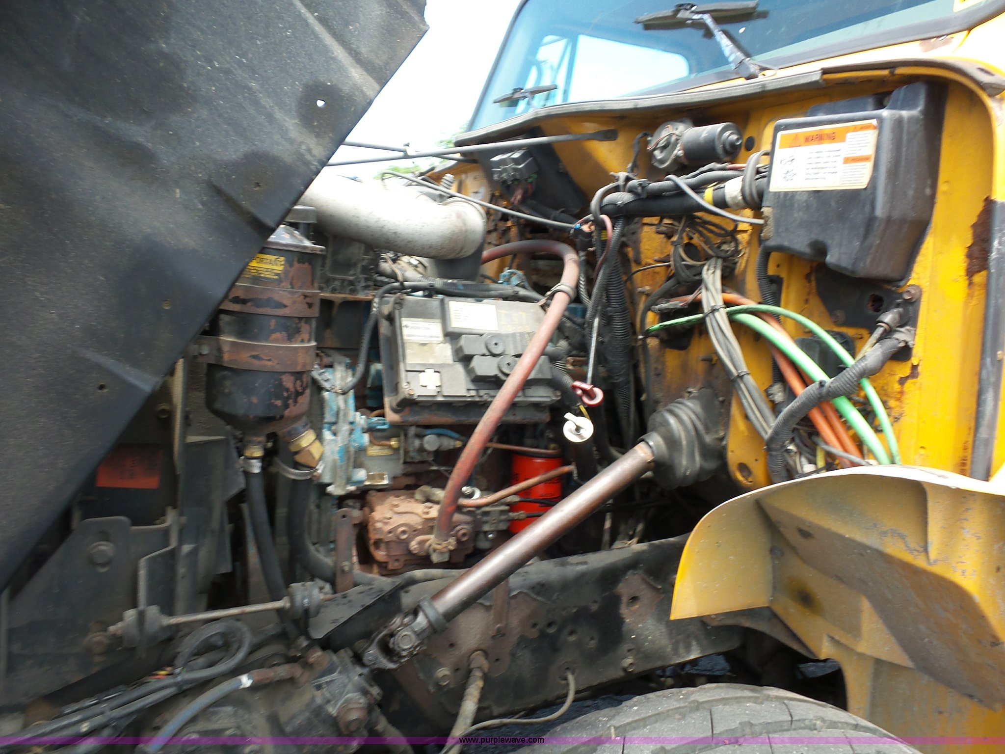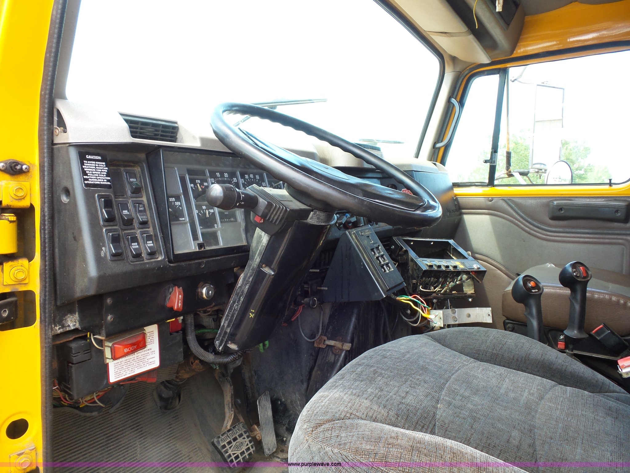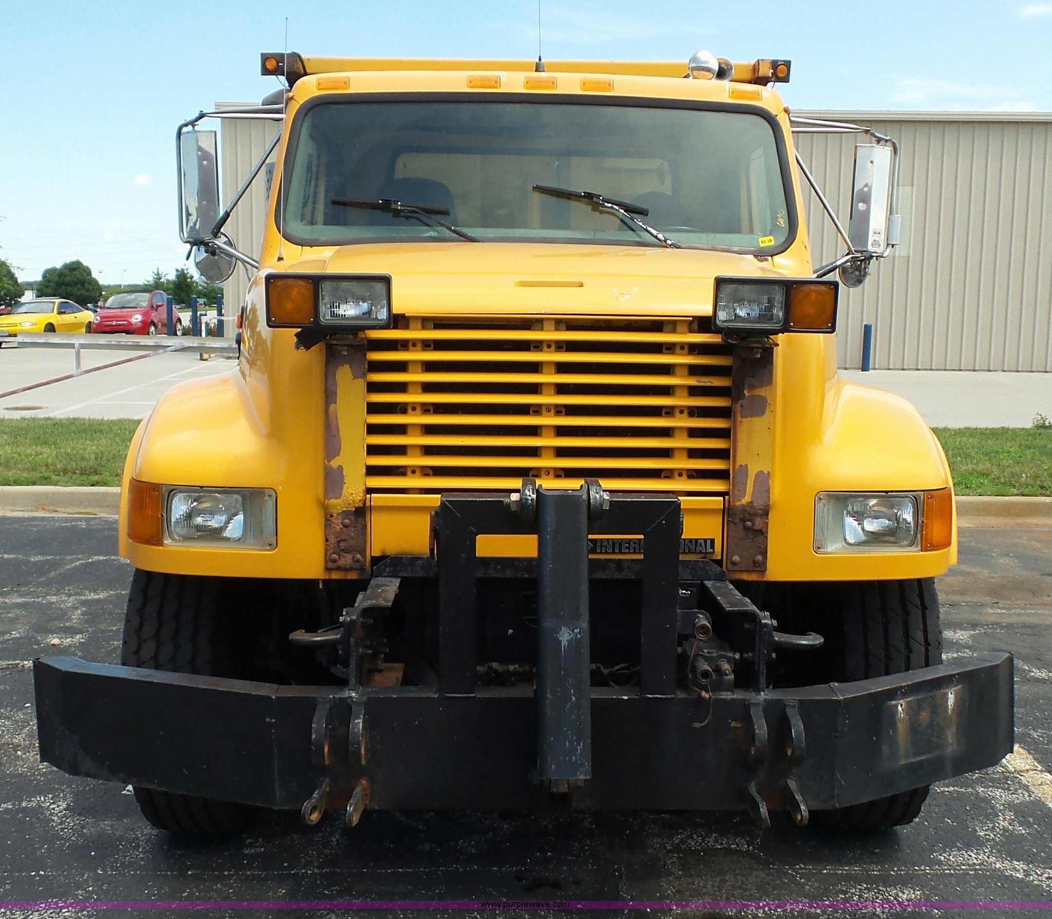 Purple Wave is selling a used Construction Dump Truck in Missouri. This item is a 2002 International 4900 dump truck with the following: 156,615 miles on odometer, 13,215 hours on meter, International DT466 7.6L L6 turbo diesel engine, Automatic transmission, Heat, Cruise, AM/FM, Heated mirrors, Air suspension seat, PTO, Steel dump bed, 10'L x 8'W, 24" side height, Single ram hoist, Stainless steel spreader, Snow plow, 15'W, 170" wheelbase, Spring suspension, Air brakes, 315/80R22.5 front tires, 11R22.5 rear tires, Frame rails broken, Fuel tank leaks, Floor boards rusted, Vehicle must be towed, MODOT ID 6890