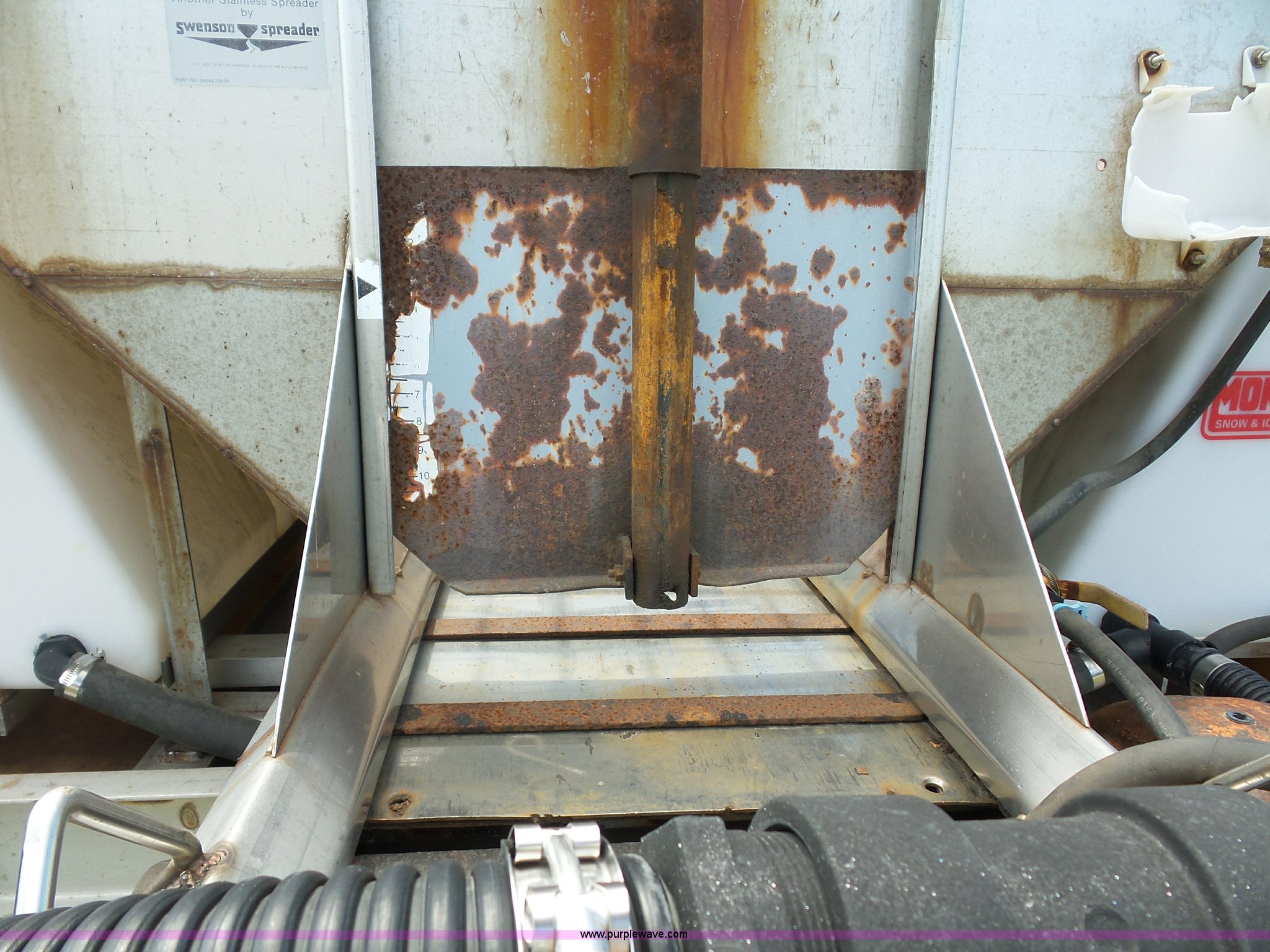 2002 International 4900 dump truck. 156,615 miles on odometer, 13,215 hours on meter, International DT466 7.6L L6 turbo diesel engine, Automatic transmission, Heat, Cruise, AM/FM, Heated mirrors, Air suspension seat, PTO, Steel dump bed 10'L x 8'W, 24" side height , Single ram hoist, Stainless steel spreader, Snow plow 15'W, 170" wheelbase, Spring suspension, Air brakes, 315/80R22.5 front tires, 11R22.5 rear tires, Frame rails broken, Fuel tank leaks, Floor boards rusted, Vehicle must be towed, MODOT ID 6890. Missouri title. 1HTSDAAR42H523951. Missouri Department of Transportation (MODOT). 600 NE Colbern Road. Lee's Summit, MO 64086