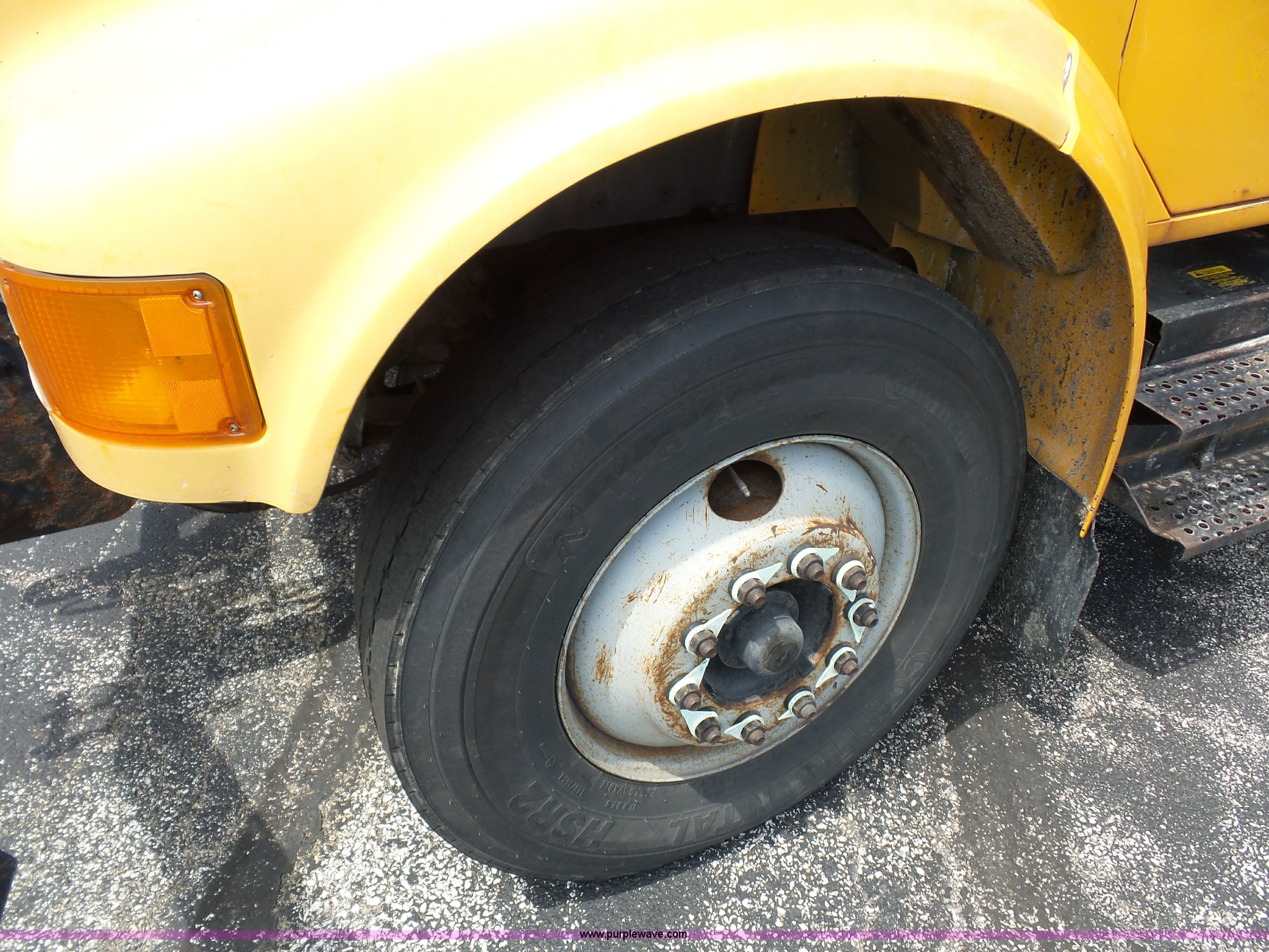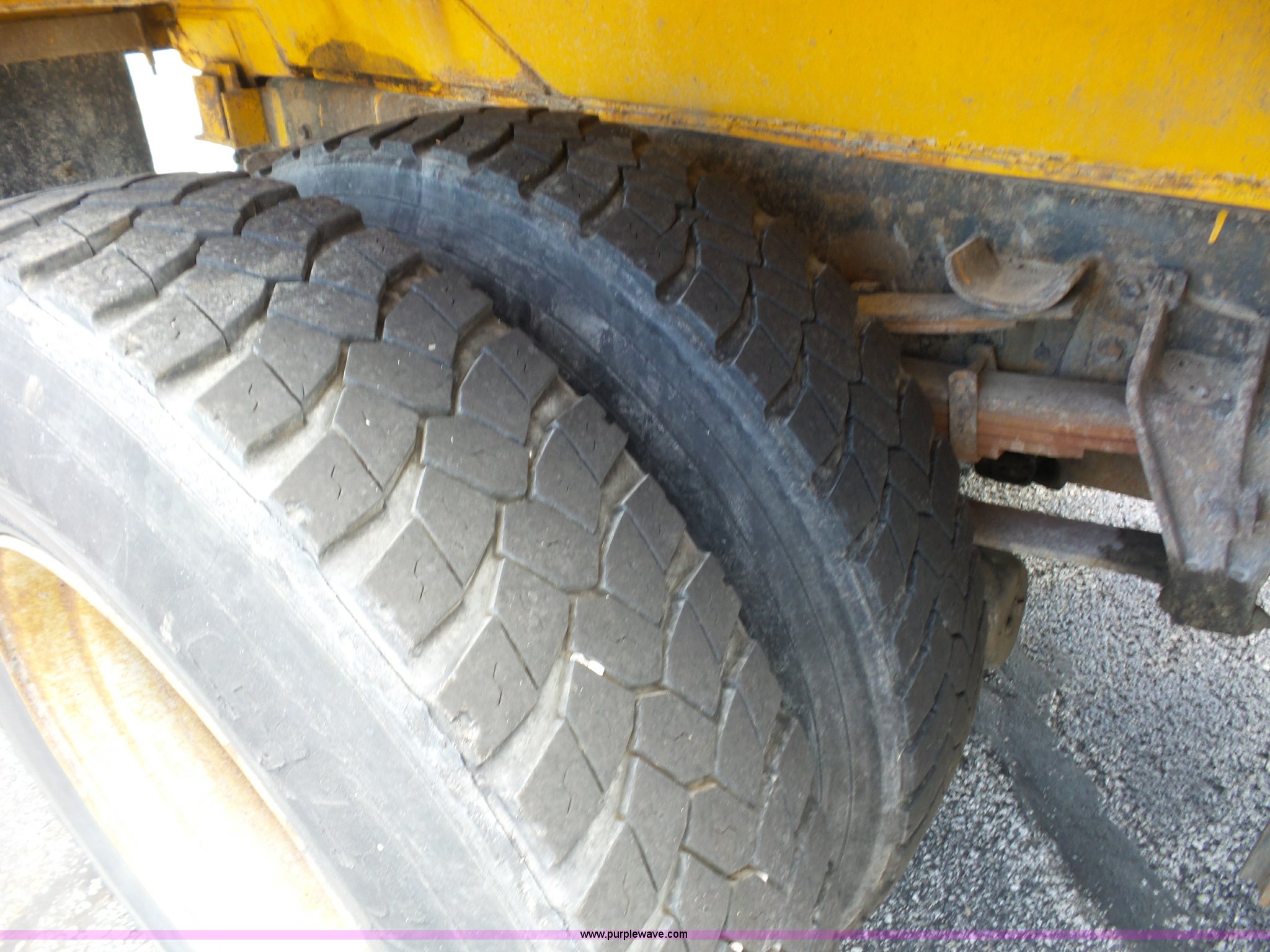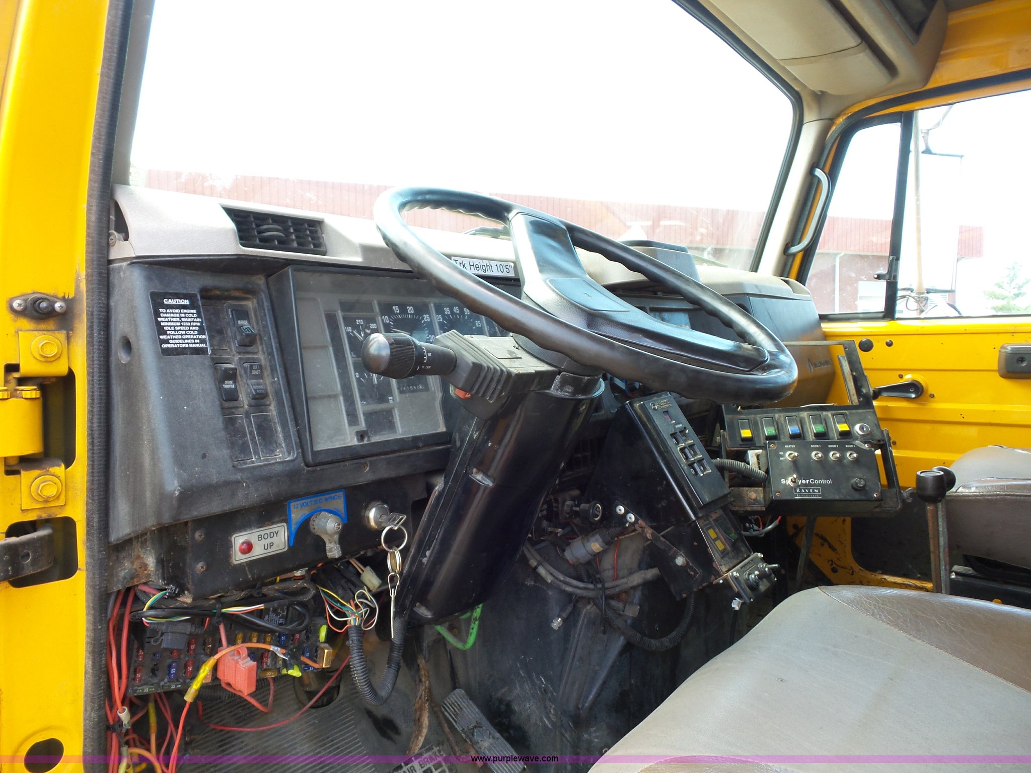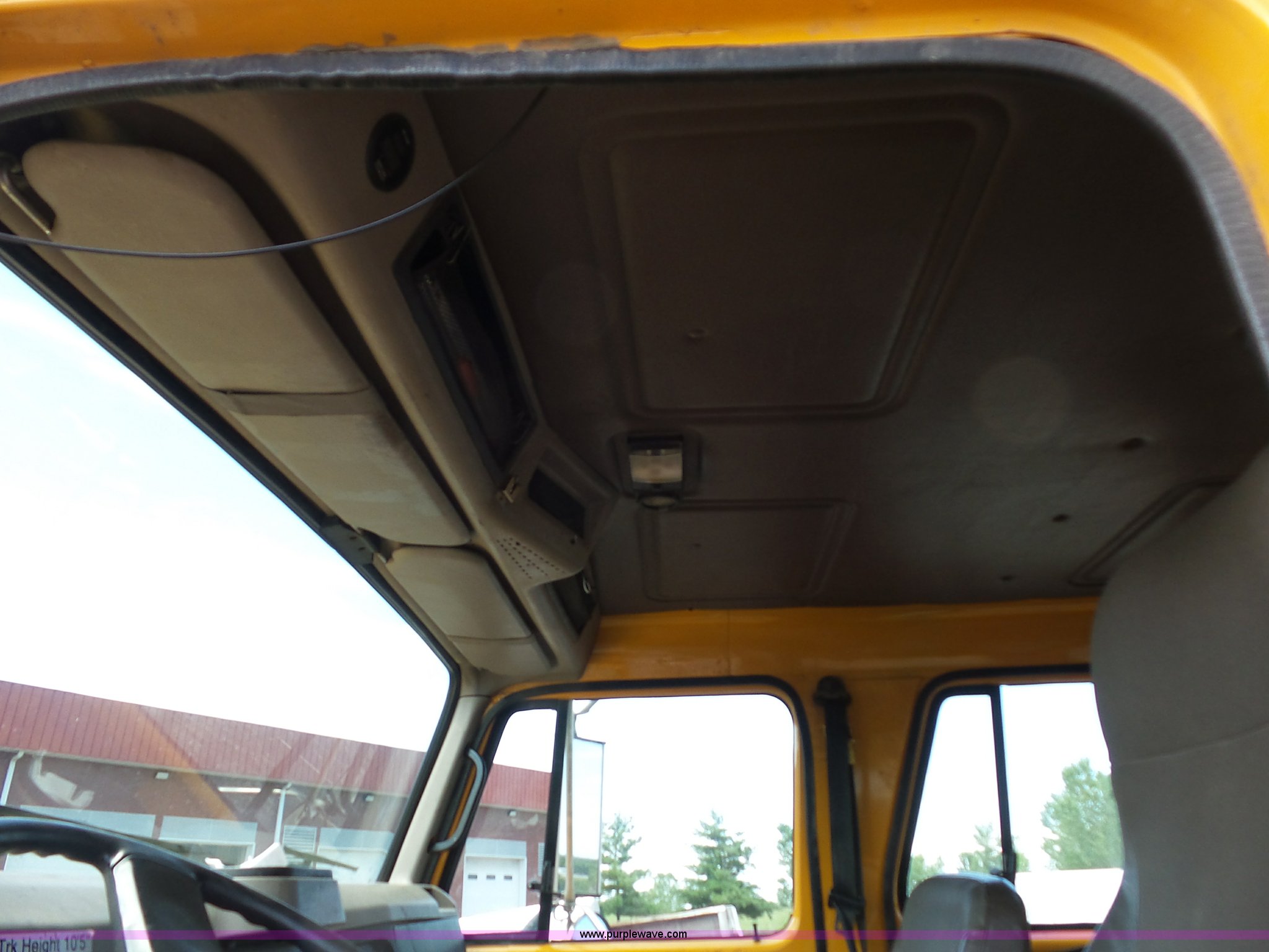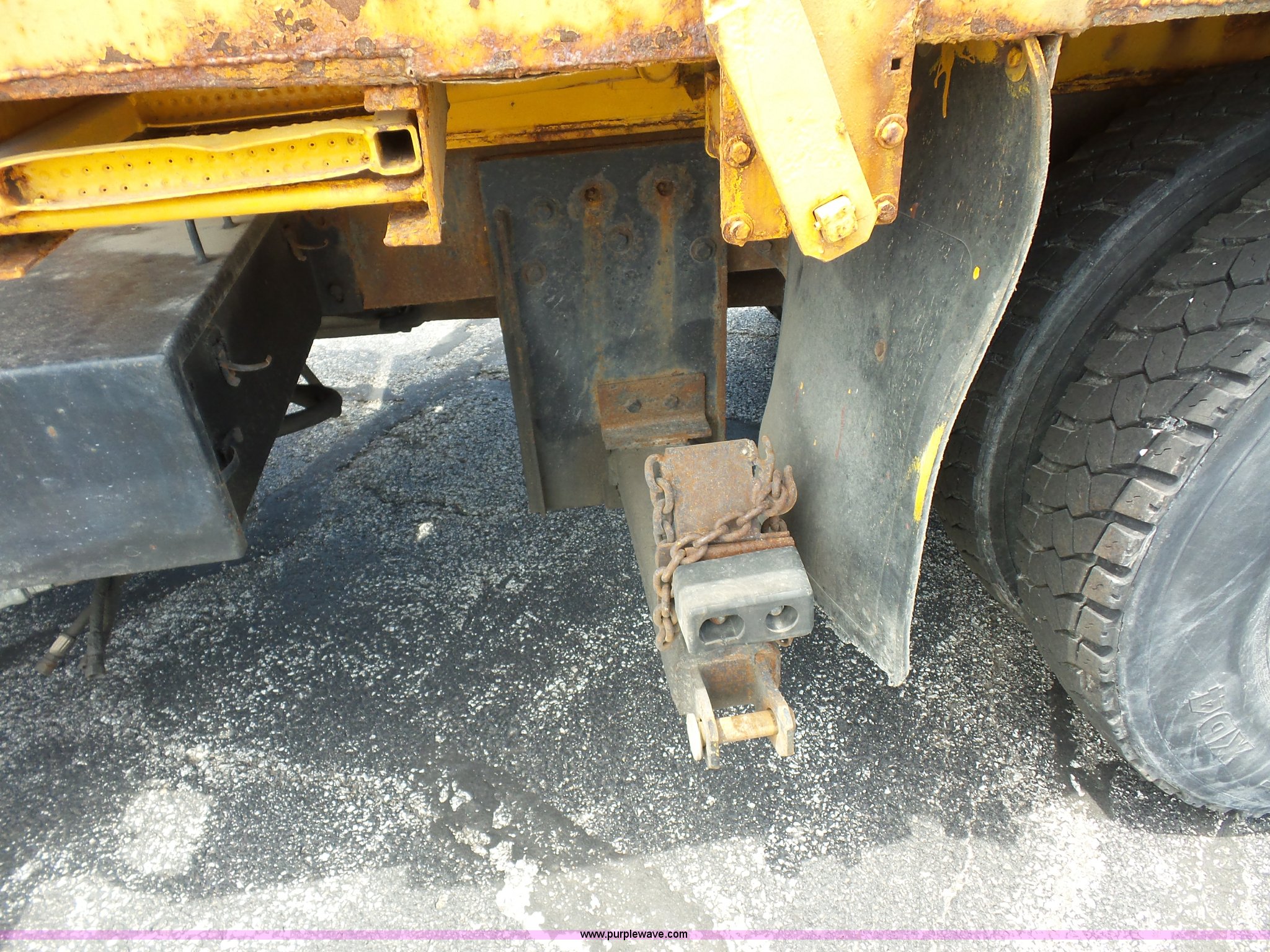 Purple Wave is selling a used Construction Dump Truck in Missouri. This item is a 2001 International 4900 dump truck with the following: 168,866 miles on odometer, 11,550 hours on meter, International DT466 7.6L L6 turbo diesel engine, Automatic transmission, Heat, Cruise, AM/FM, Heated mirrors, Air suspension seat, PTO, Steel dump bed, 10'L x 8'W, 24" side height, Single ram hoist, Rollover tarp, Flink stainless steel spreader, Four door, Snow plow 12'W, Wing plow, 8'W, 206" wheelbase, Spring suspension, Air brakes, 11R22.5 tires, Power steering leak, Cab supports rusted, Carrier bearings and pinon seal bad, Bed rusted, Tie rods bent, MODOT ID 6378