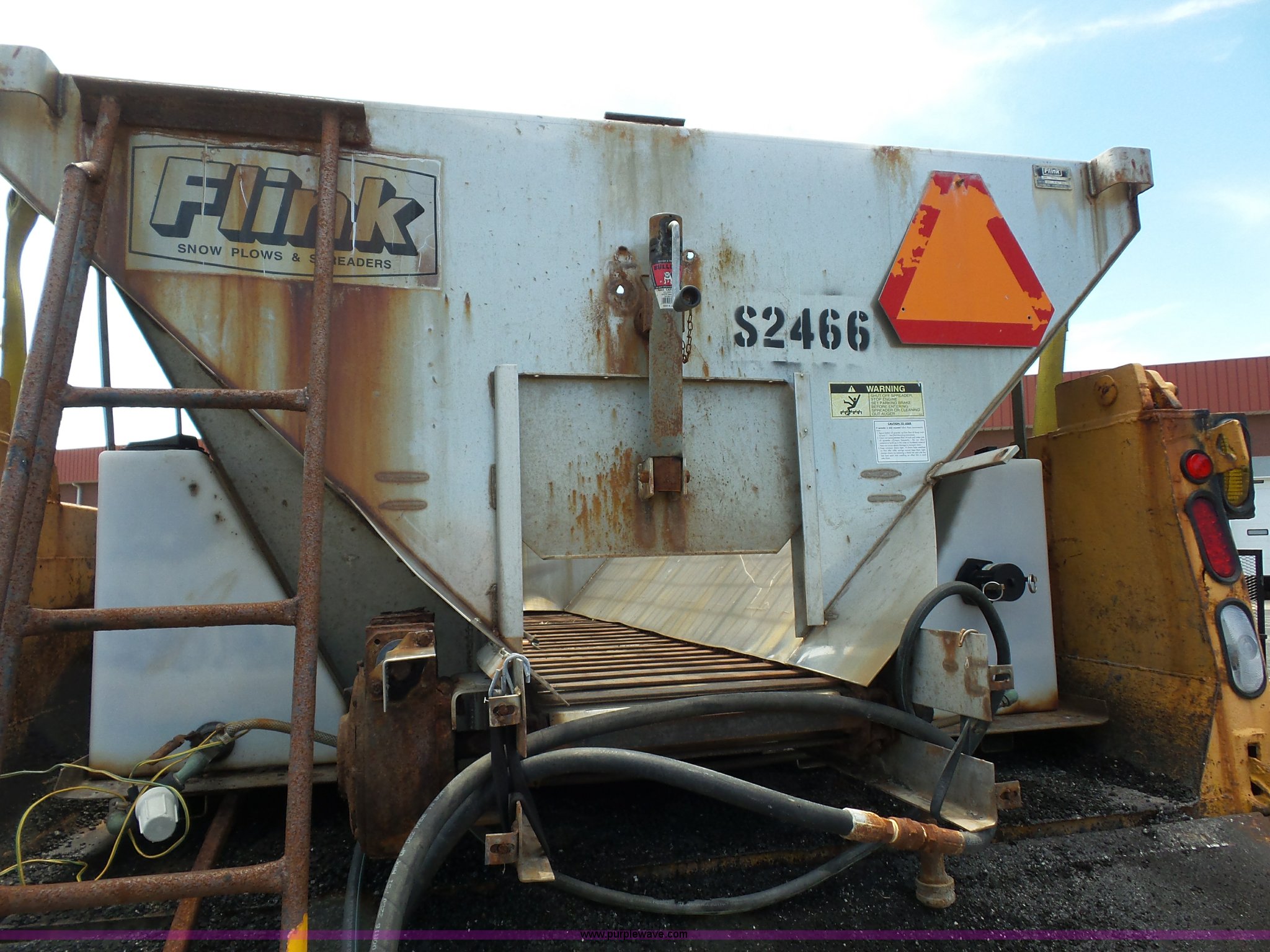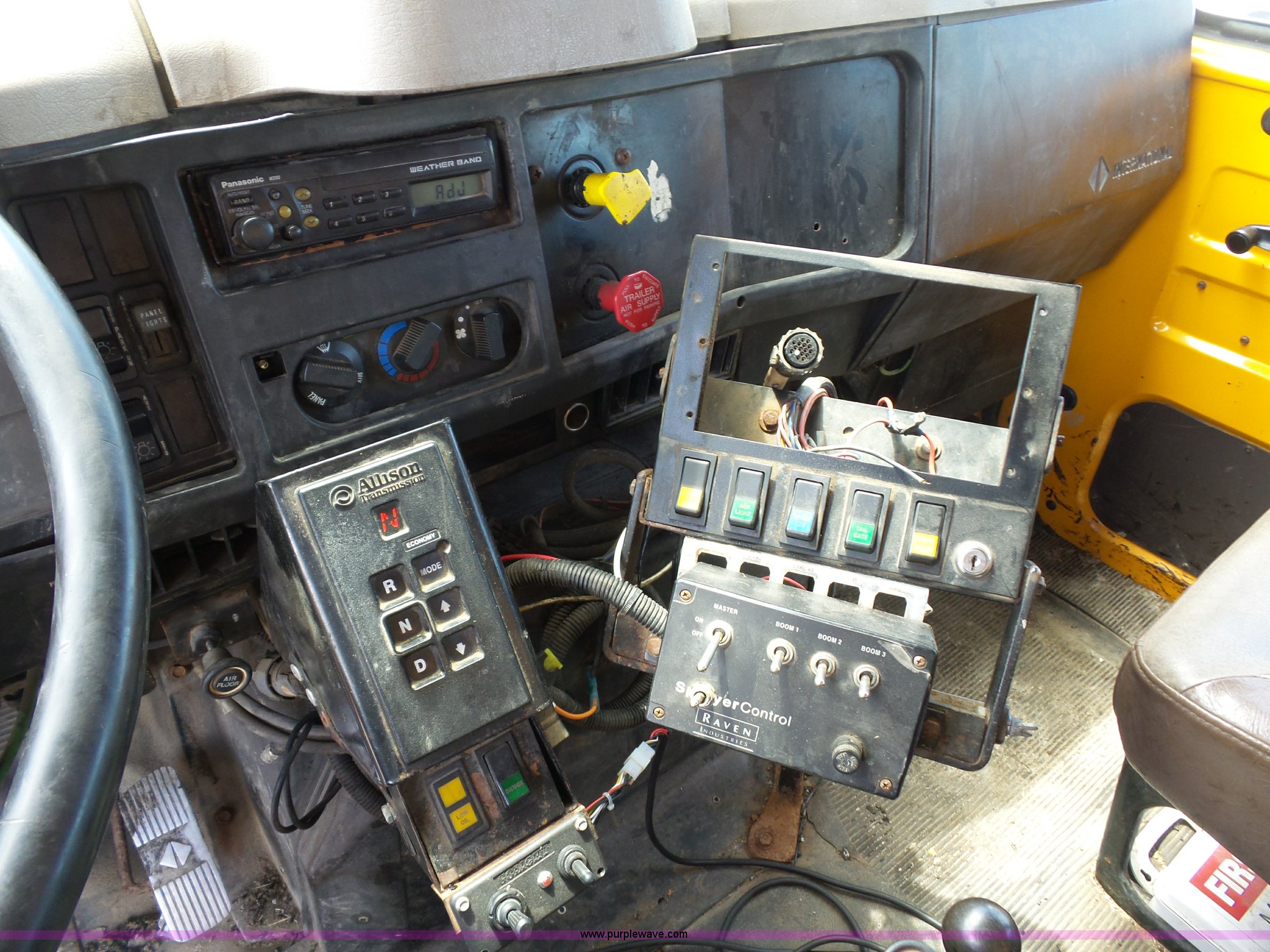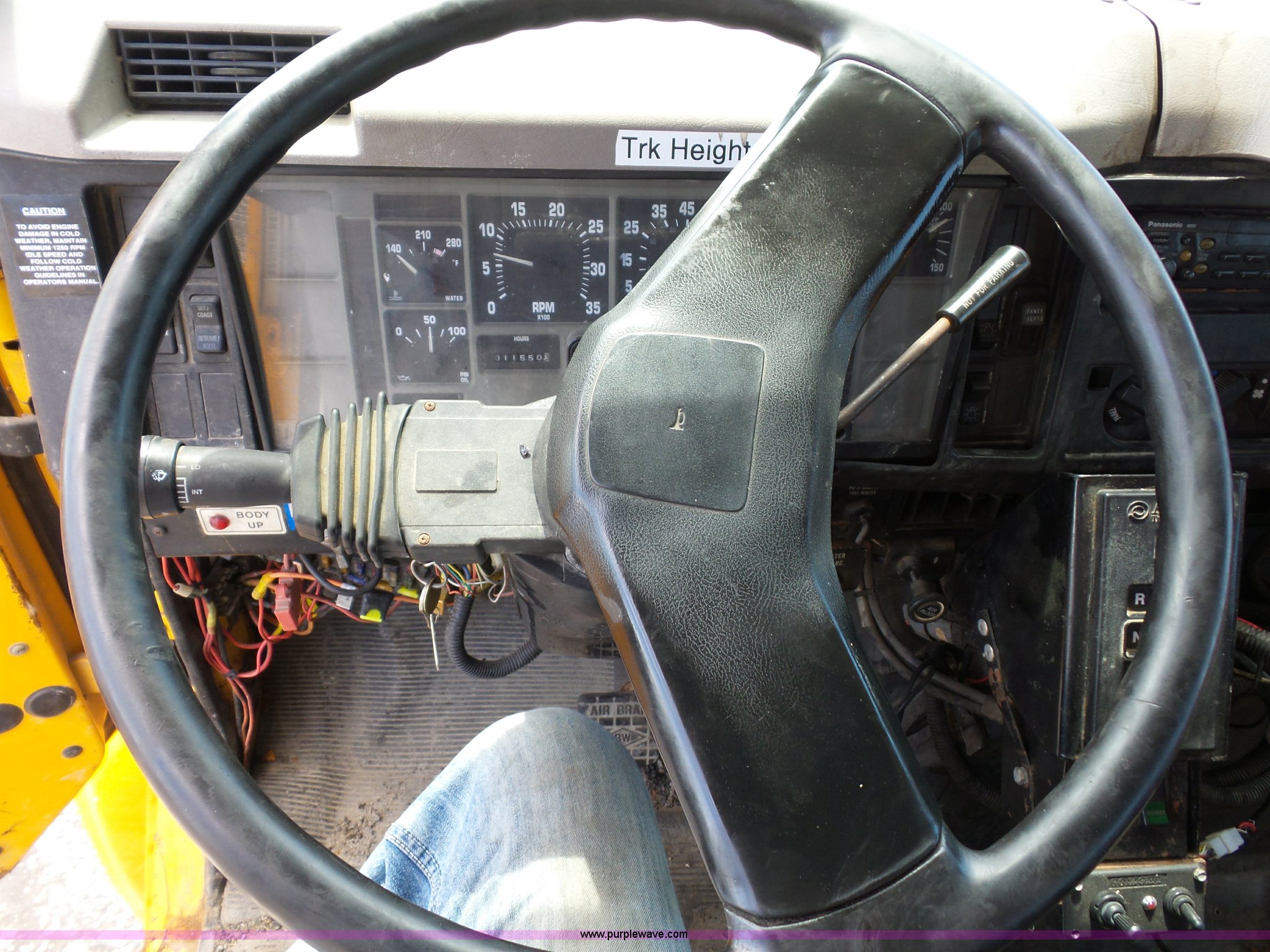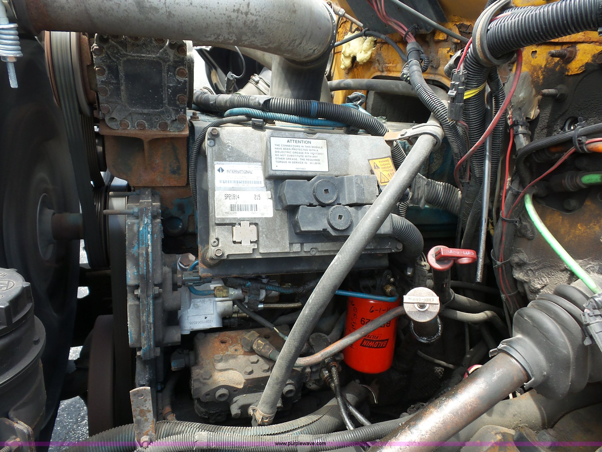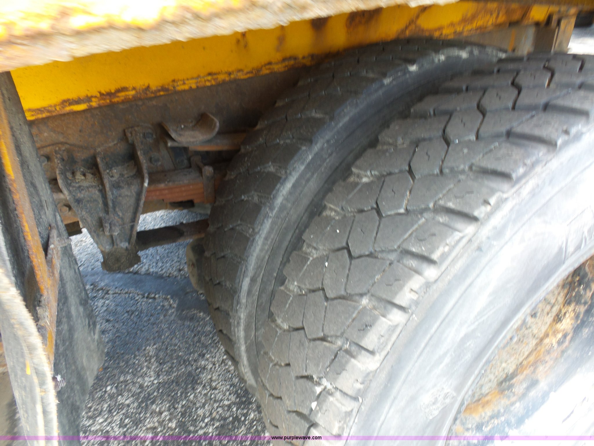 Purple Wave is selling a used Construction Dump Truck in Missouri. This item is a 2001 International 4900 dump truck with the following: 168,866 miles on odometer, 11,550 hours on meter, International DT466 7.6L L6 turbo diesel engine, Automatic transmission, Heat, Cruise, AM/FM, Heated mirrors, Air suspension seat, PTO, Steel dump bed, 10'L x 8'W, 24" side height, Single ram hoist, Rollover tarp, Flink stainless steel spreader, Four door, Snow plow 12'W, Wing plow, 8'W, 206" wheelbase, Spring suspension, Air brakes, 11R22.5 tires, Power steering leak, Cab supports rusted, Carrier bearings and pinon seal bad, Bed rusted, Tie rods bent, MODOT ID 6378