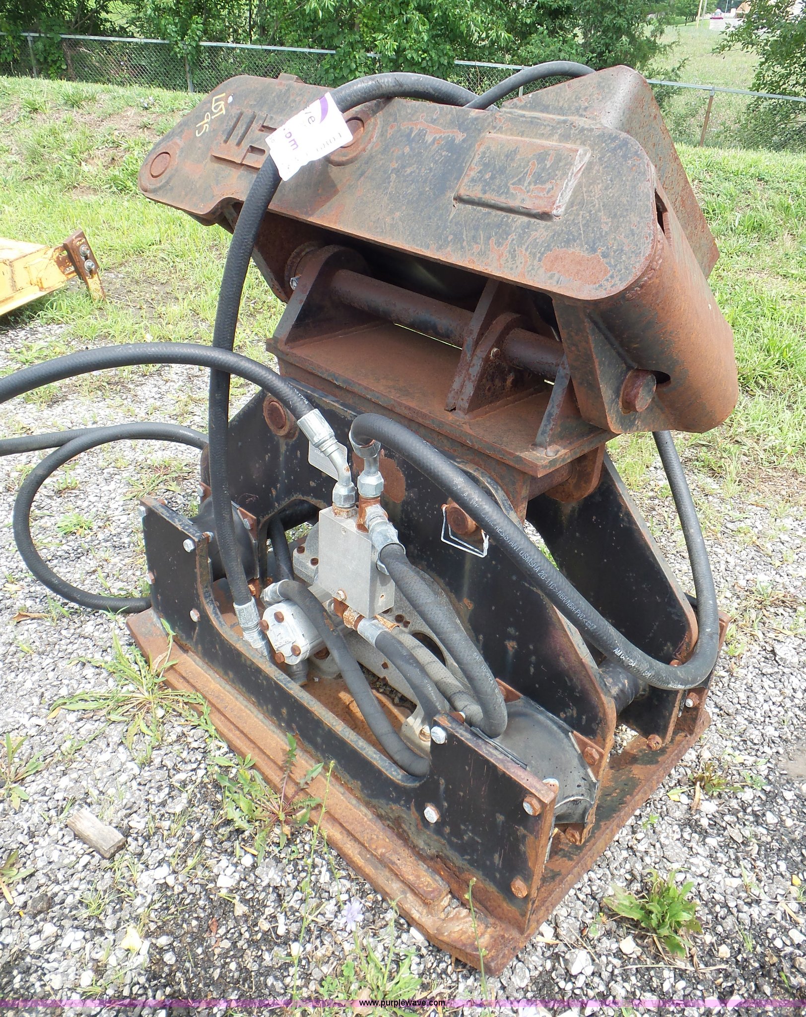 Purple Wave is selling a used Excavator Attach. in Missouri. This item is a 2004 Coneqtec Universal DC6500 plate compactor with the following: 3'L x 2'W plate, P20-51 motor, Hydraulic operation, WB hydraulic multi-pin grabber tilting coupler, 1 3/4" diameter pin, 16"L pins, 15" between pins, Operational when removed from service three years ago, Serial 65107, MODOT ID 95
