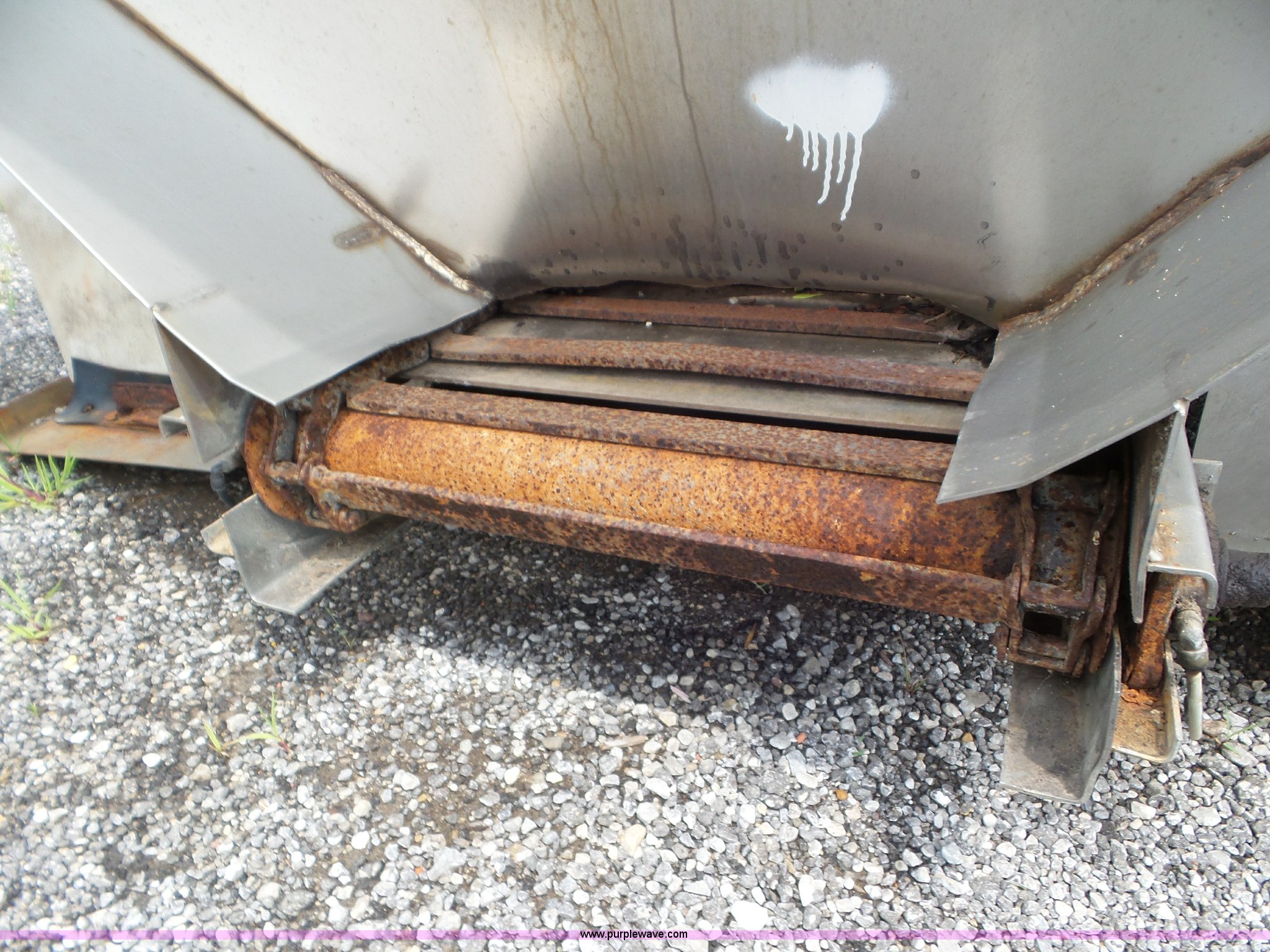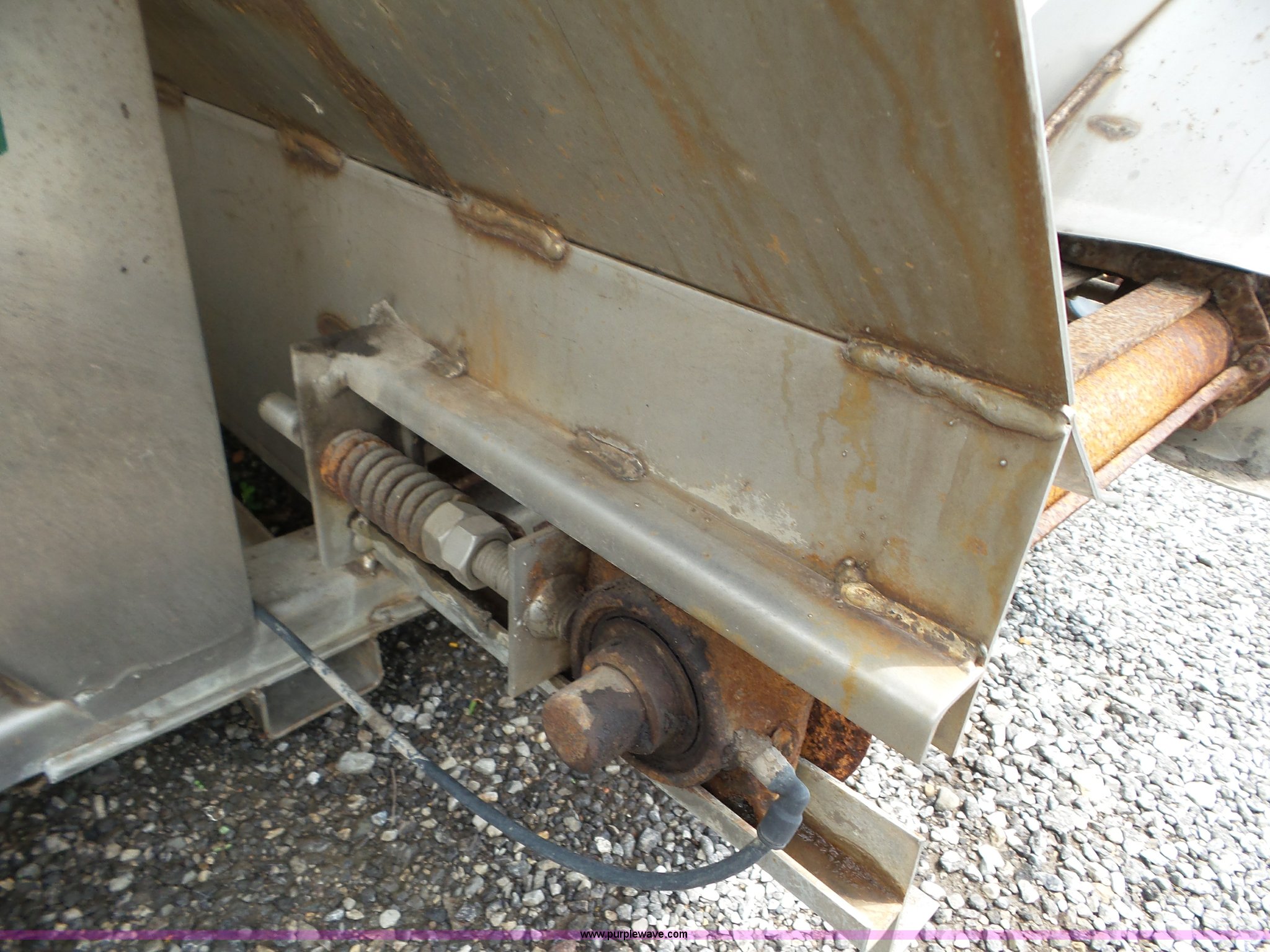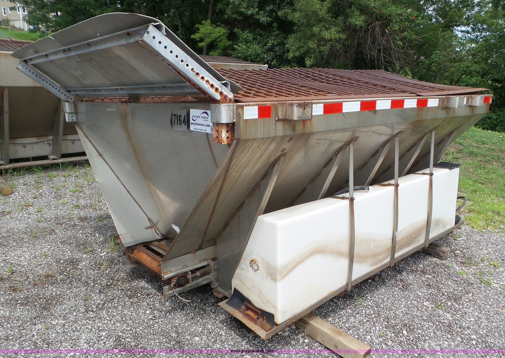 Purple Wave is selling a used Truck Part and Attach. in Missouri. This item is a Monroe stainless steel spreader with the following: 9'L x 78"W, (2) 100 gallon poly tanks, Some parts missing, MODOT ID 40