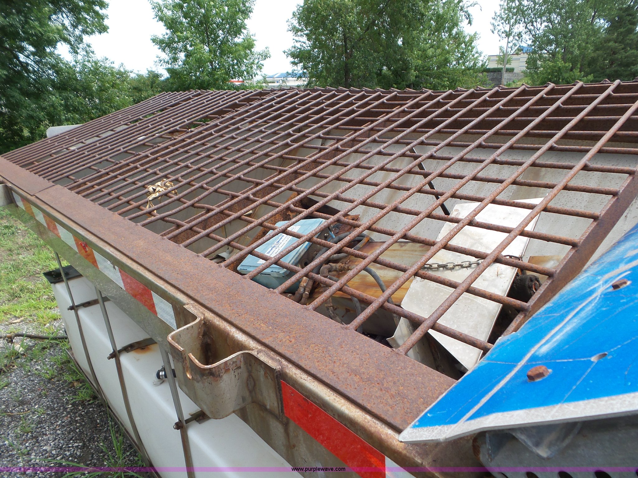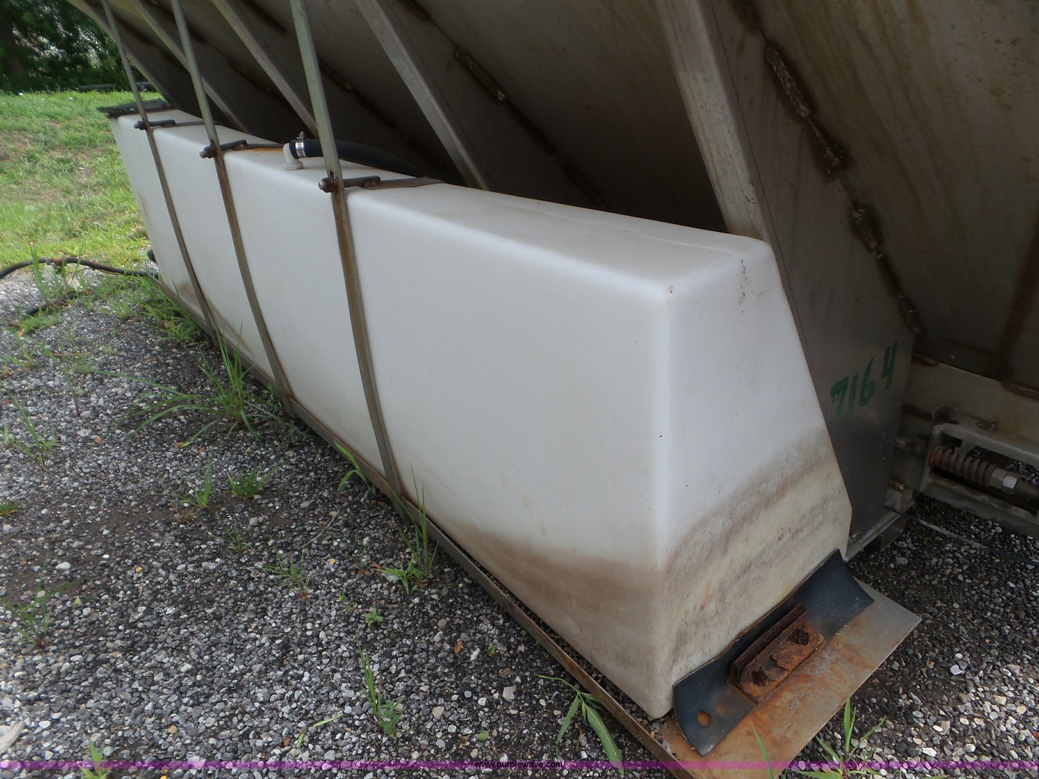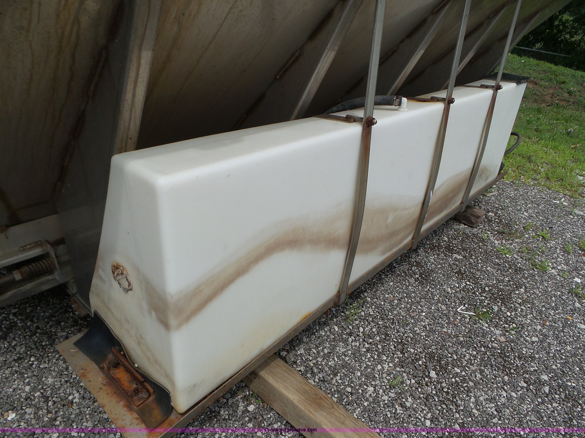 Purple Wave is selling a used Truck Part and Attach. in Missouri. This item is a Monroe stainless steel spreader with the following: 9'L x 78"W, (2) 100 gallon poly tanks, Some parts missing, MODOT ID 40