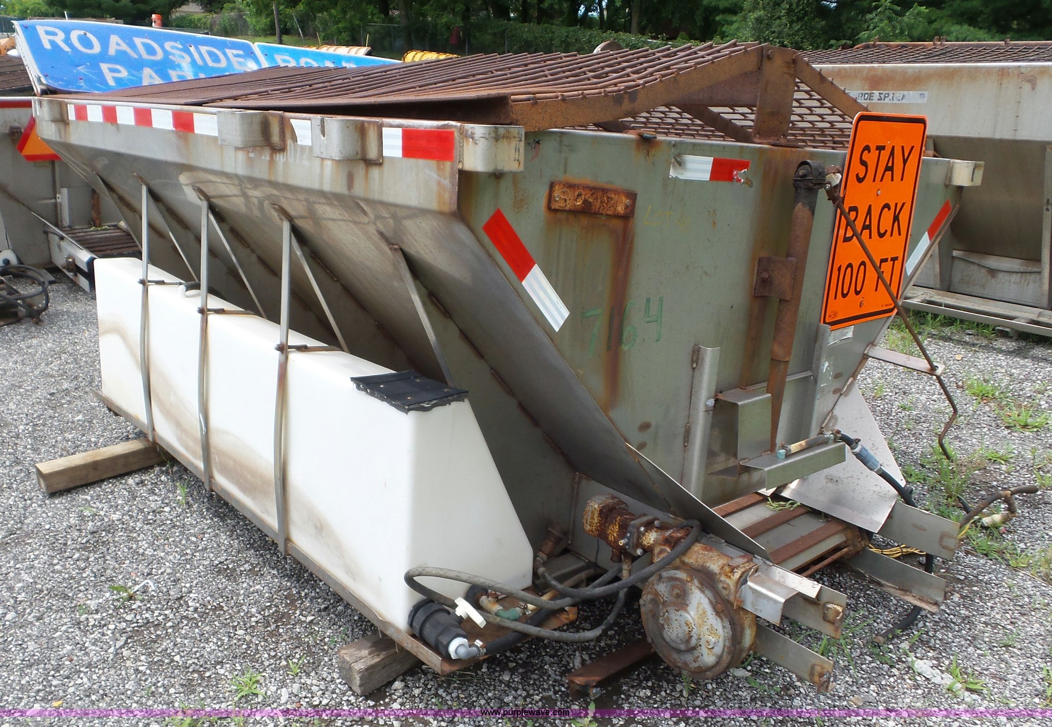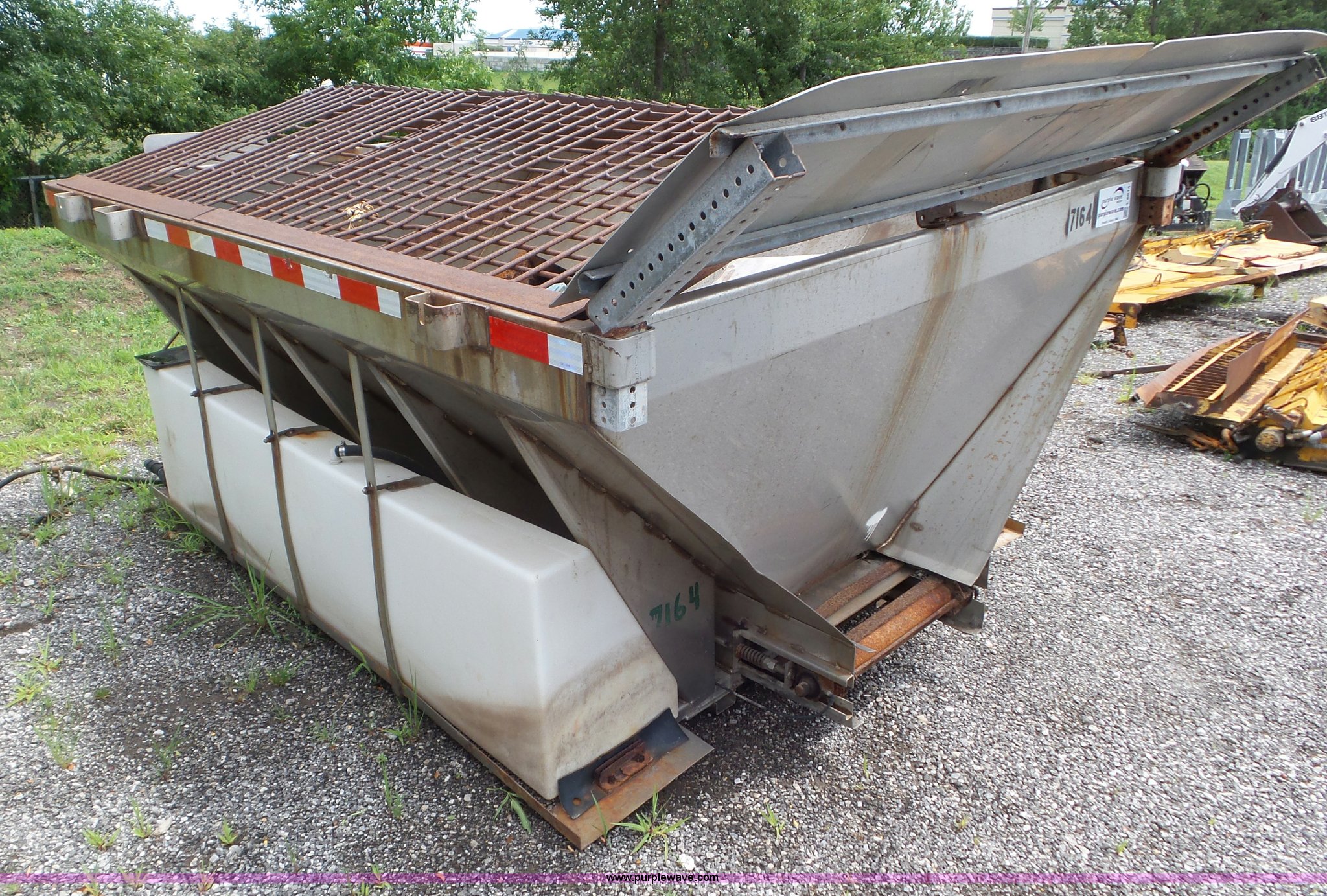 Monroe stainless steel spreader. 9'L x 78"W, (2) 100 gallon poly tanks, Some parts missing, MODOT ID 40. Missouri Department of Transportation (MODOT). 3602 N Belt Hwy. St. Joseph, MO 64506