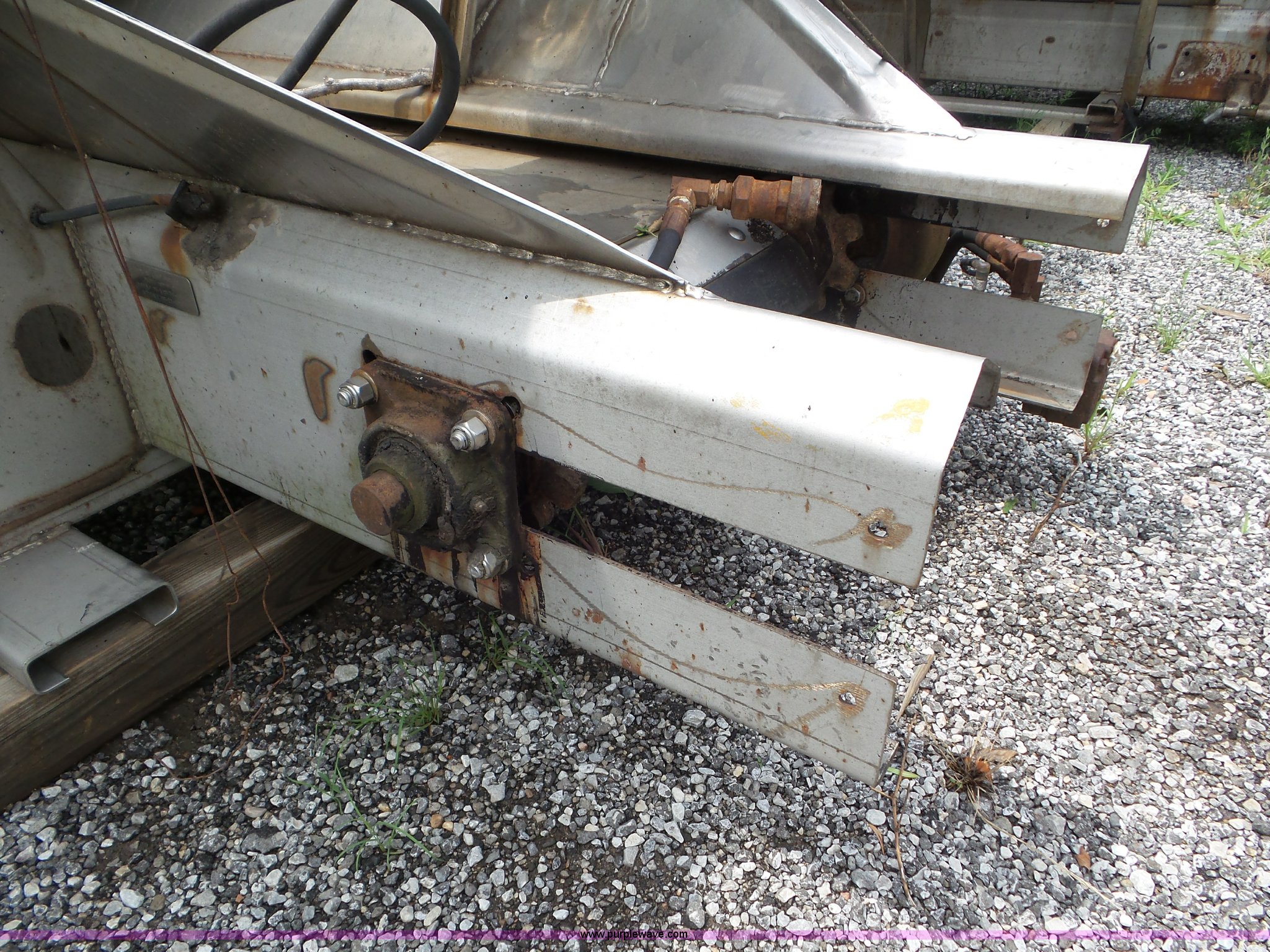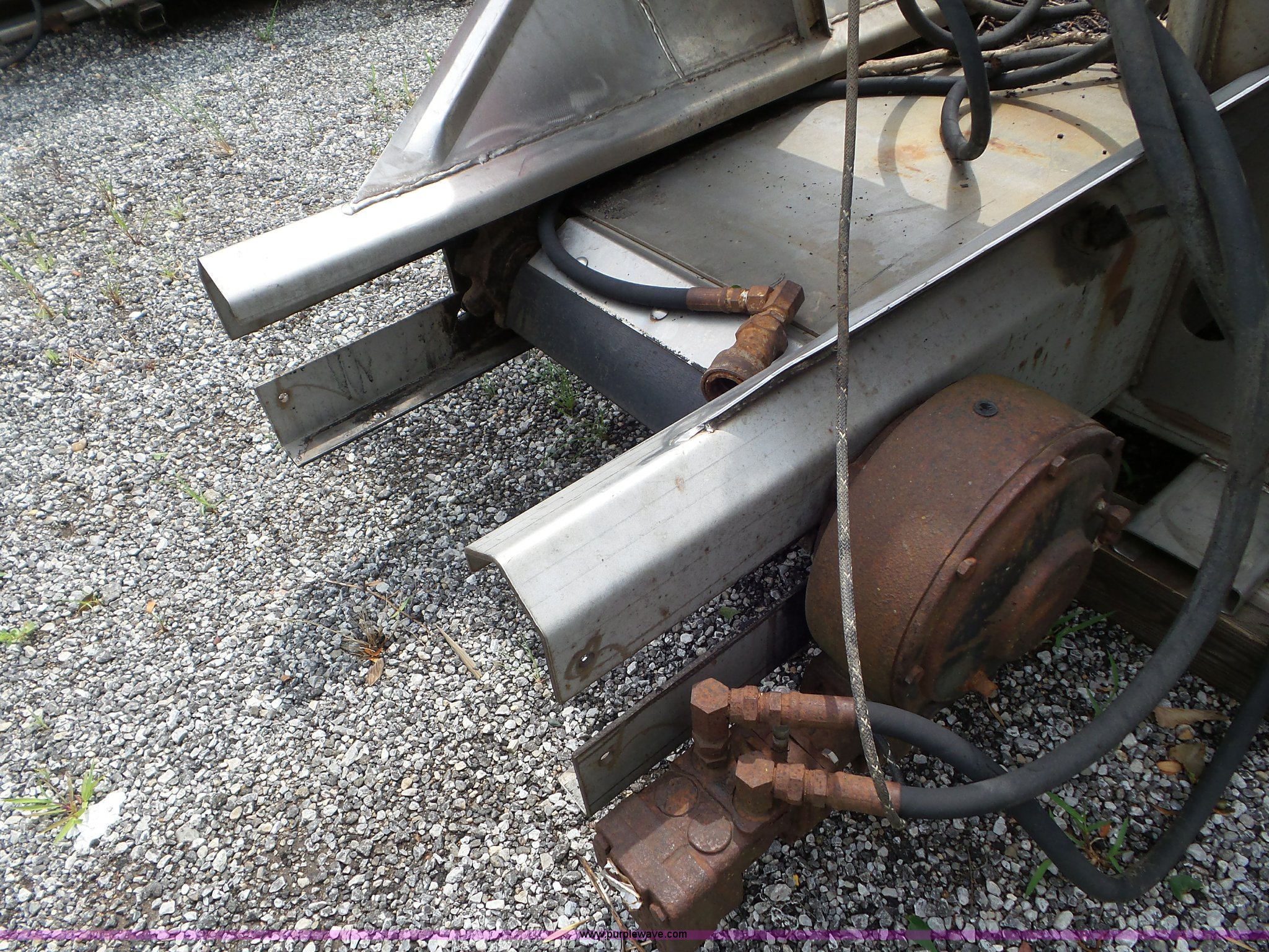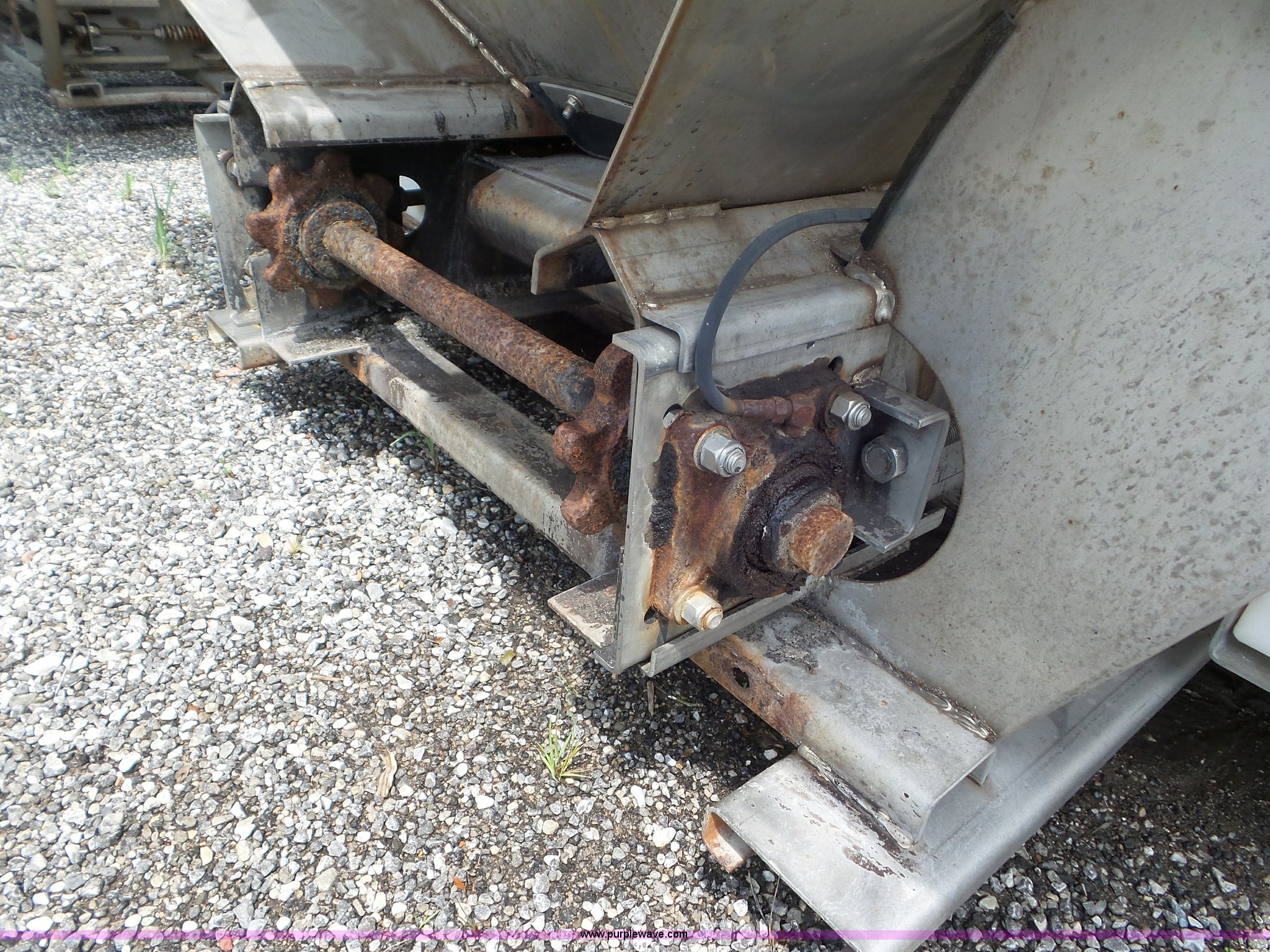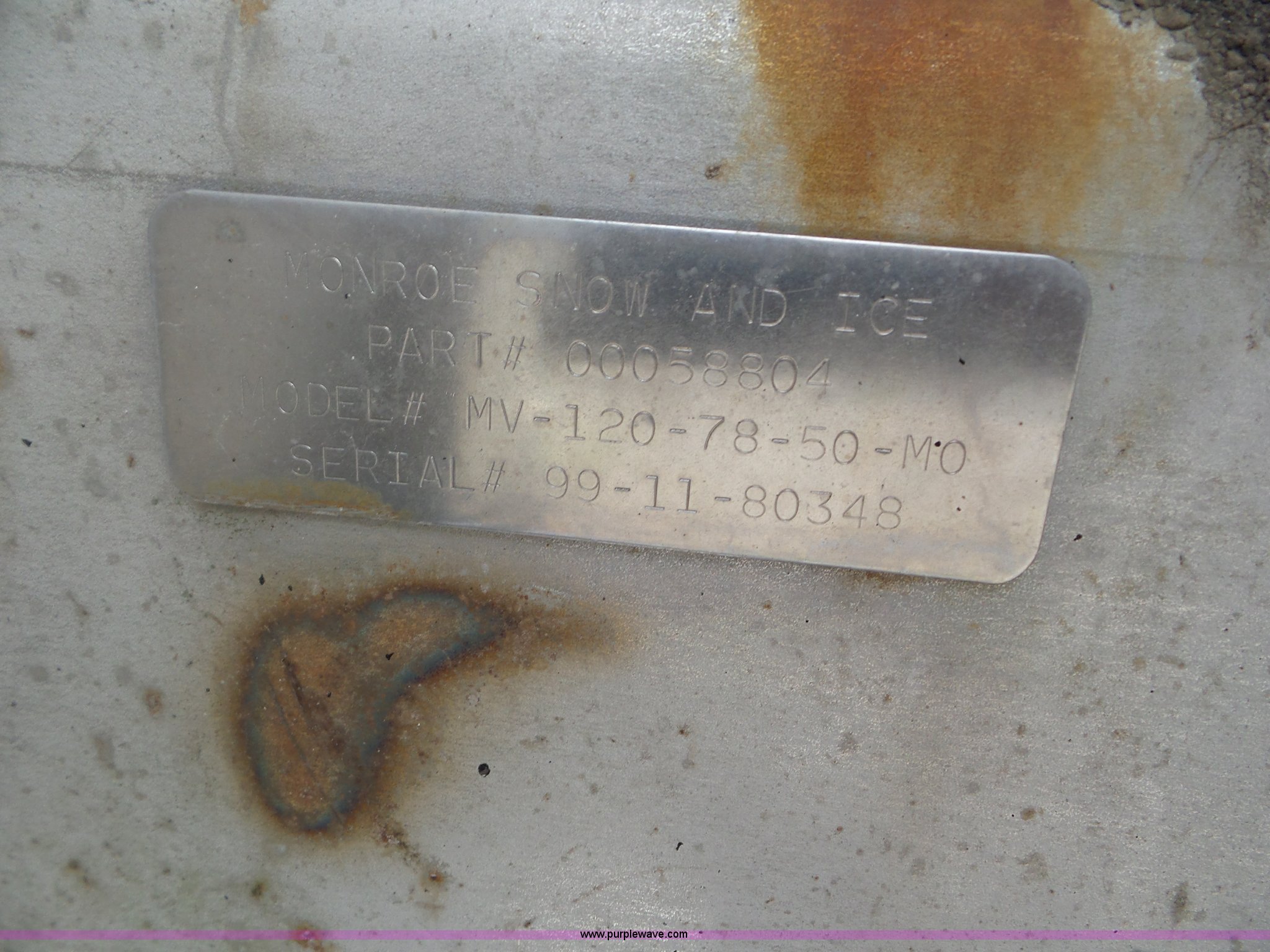 Purple Wave is selling a used Truck Part and Attach. in Missouri. This item is a Monroe stainless steel spreader with the following: 9'L x 78"W, (2) 100 gallon poly tanks, Chain and spinner wheel missing, MODOT ID 108