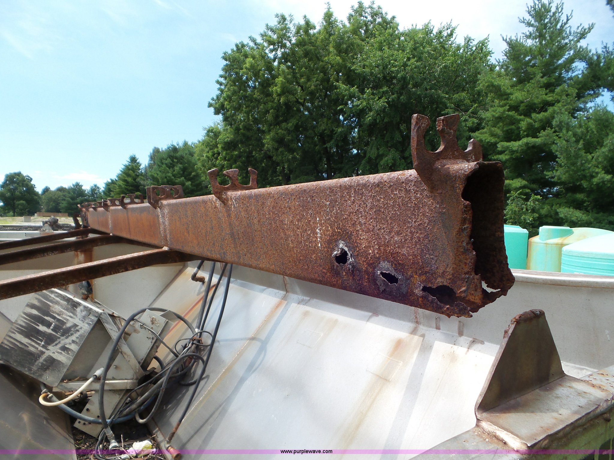 Purple Wave is selling a used Truck Part and Attach. in Missouri. This item is a Swenson stainless steel spreader with the following: 13'L x 78"W, 20" conveyor chain, Single metal spinner, Some parts missing, MODOT ID 42
