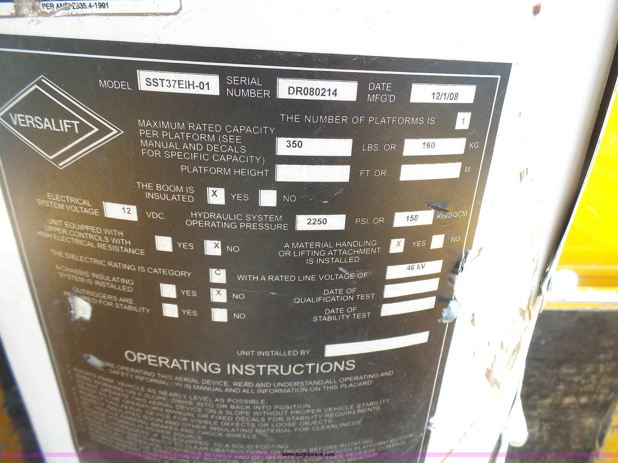 Purple Wave is selling a used Bucket Truck in Missouri. This item is a 2009 Ford F550 Super Duty bucket truck with the following: 203,100 miles on odometer, 6.8L V10 gas engine, Automatic transmission, Single axle, AC and heat, AM/FM/CD, Trailer brake controller, Front tow hooks, Knapheide 7108D54RJ service bed, 9'L, Shelving, Slideout drawers, Utility rack, Street sign, Receiver hitch, Trailer wiring, 2008 Versalift JST371H01 boom, 37' maximumm boom length, 350 lbs maximum lift capacity, Man basket, Ground and platform controls, Boom rotation, Telescopic, articulated, insulated boom, Hydraulic outriggers, 6" vice, Single fuel tank, 165" wheelbase, Spring suspension, Hydraulic brakes, 225/70R19.5 tires, GVWR 17,950 lbs, Non-operational engine, Oil drained, Drive shaft removed, Vehicle must be towed or hauled, MODOT ID G9445