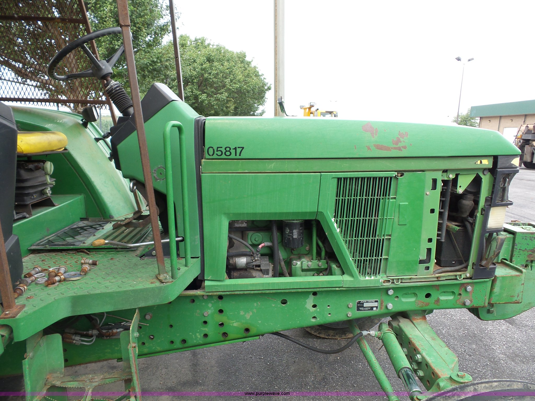 Purple Wave is selling a used Tractor in Missouri. This item is a John Deere 2410 tractor with the following: 409 hours on meter, John Deere four cylinder diesel engine, Manual transmission, 12F-4R gears, Tilt steering wheel, Suspension seat, Shade, Seven pin outlet, 540 PTO, (3) rear hydraulic remote sets, (5) suitcase weights, 11.00-16SL front tires, 480/70R28 rear tires, Engine knocks, Possible engine issues, looses coolant, Hydraulic oil leak, PTO solenoid missing, Serial L06420H302722, MODOT ID 5817