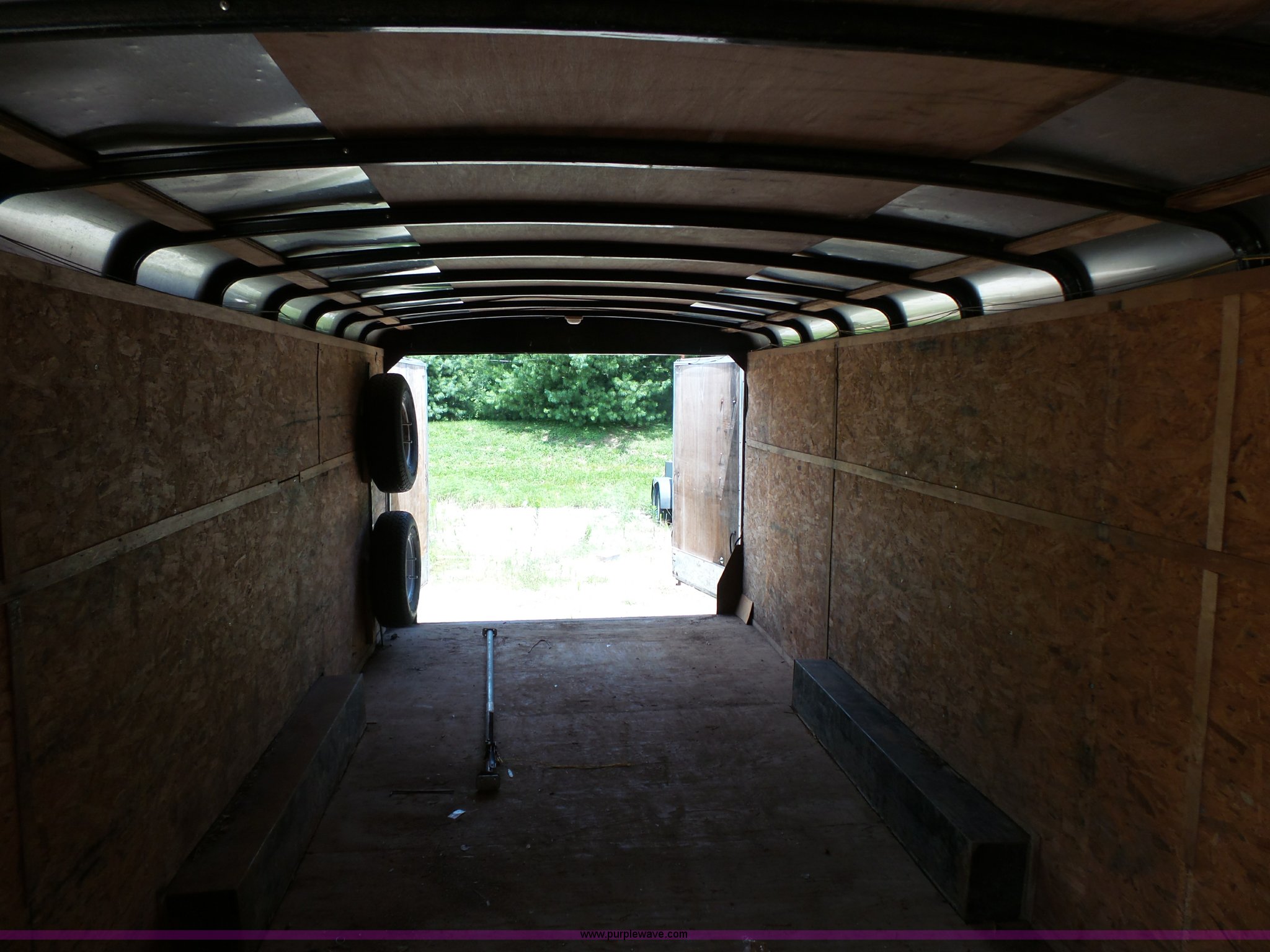 Purple Wave is selling a used Enclosed Cargo Trailer in Indiana. This item is a 1999 Interstate enclosed cargo trailer with the following: 22'L x 8'W, Wood floor, Side door, Swinging rear doors, 2 5/16" ball hitch, 225/75R15 tires, (2) spare tires