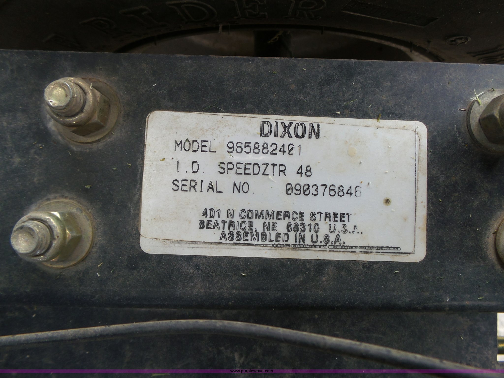 Dixon Speed ZTR48 ZTR lawn mower has sold in Falls City, Nebraska for $1650. Item K8457 sold on August 17th, 2016.