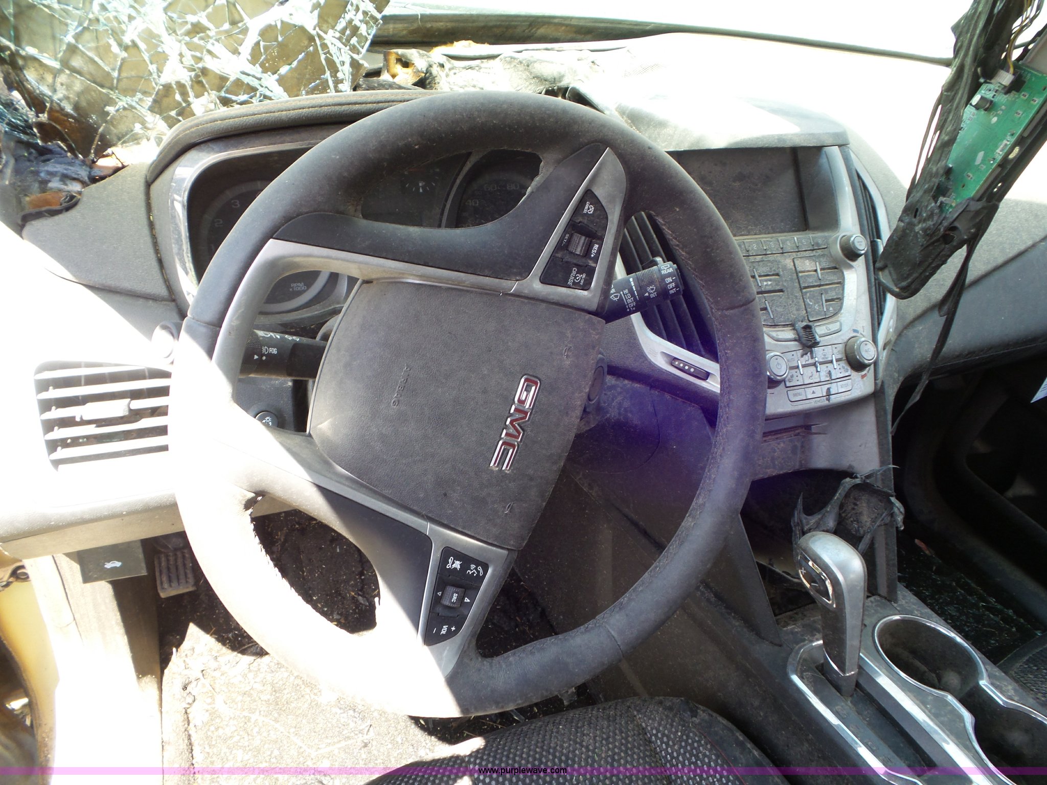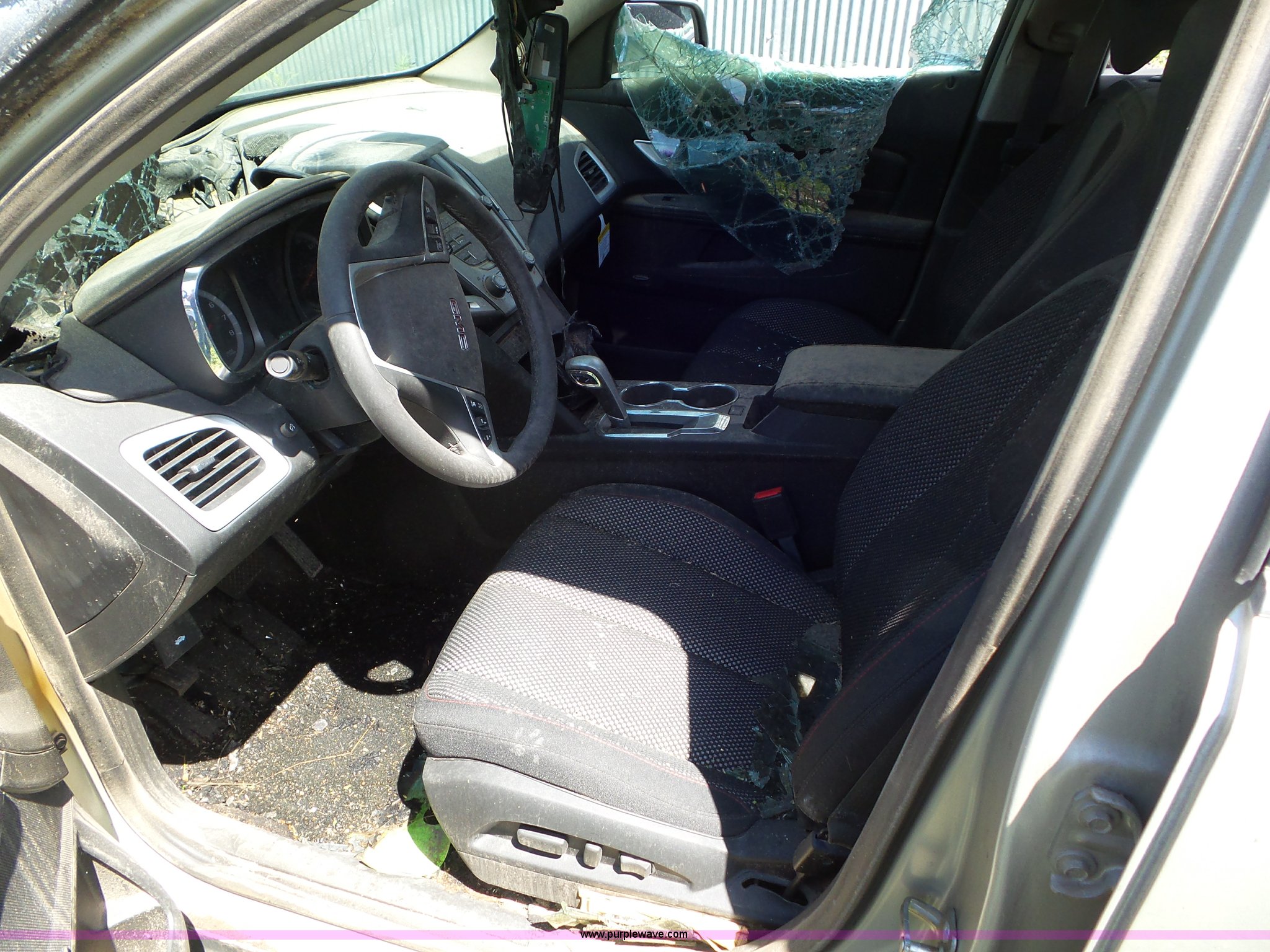 Purple Wave is selling a used Passenger Vehicle in Kansas. This item is a 2015 GMC Terrain SUV with the following: Unknown miles on odometer, 2.4L L4 DOHC 16V FFV gas engine, Automatic transmission, AC and heat, Tilt, Cruise, AM/FM/CD, Power windows, locks, mirrors, and seat, Cloth interior, 225/65R17 tires, No keys, Fire damage, Non-operational unit