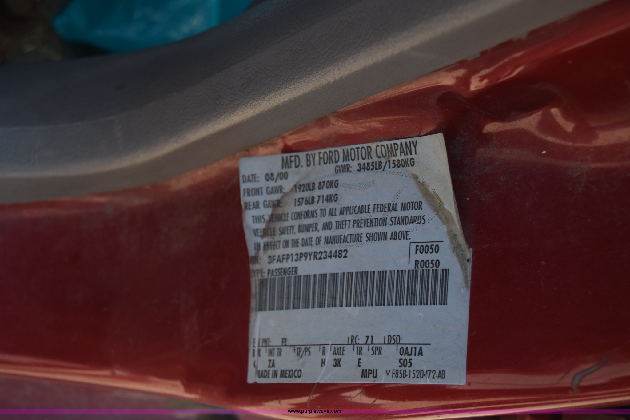 Purple Wave is selling a used Passenger Vehicle in Kansas. This item is a 2000 Ford Escort with the following: 157,206 miles on odometer, 2.0L L4 SOHC 8V gas engine, Automatic transmission, AC and heat, Tilt, AM/FM/cassette, Power windows, locks, and mirrors, Cloth interior, 175/70R14 tires, Paint faded, Case# 16C32582